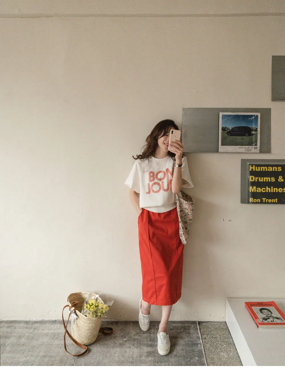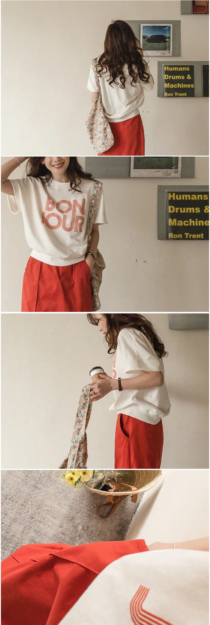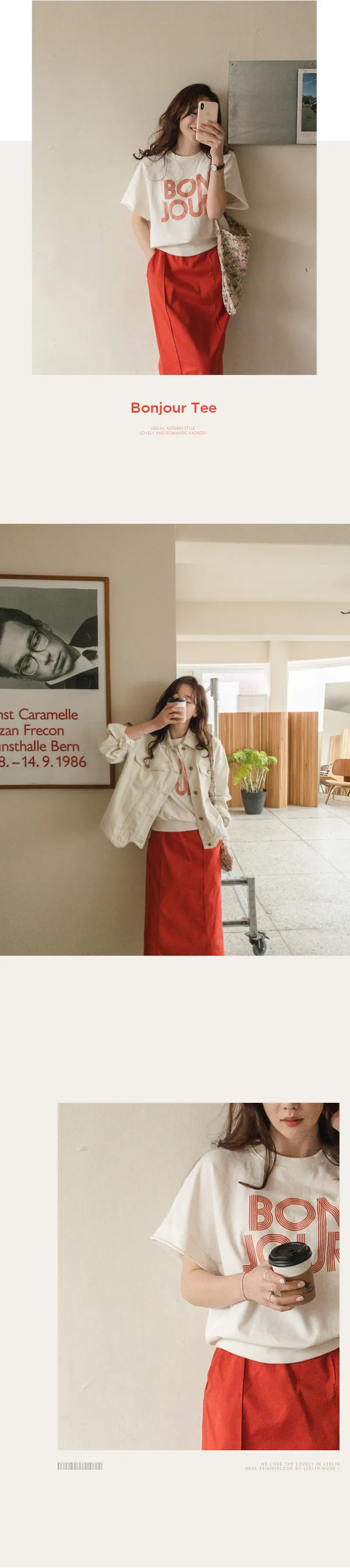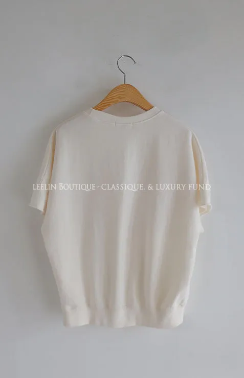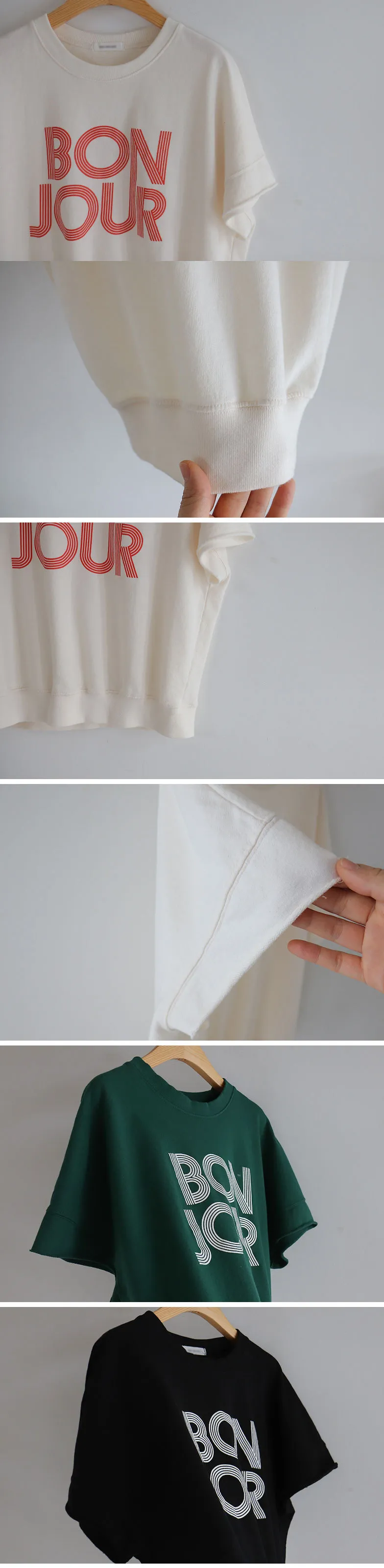 【 Bonjour~字樣很突出】【感覺像T卹,但又像休閒上衣!】【觸感柔軟~】【袖子末端有剪裁細節,很時尚】
