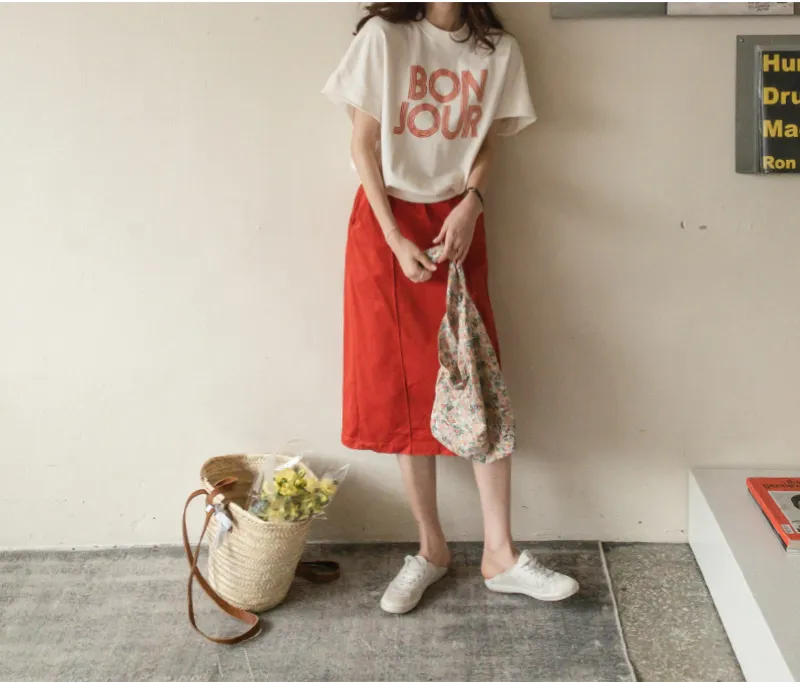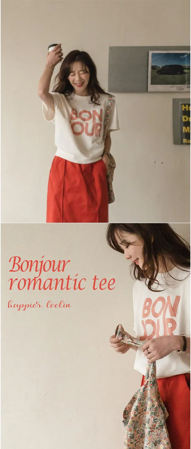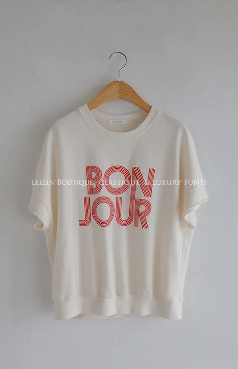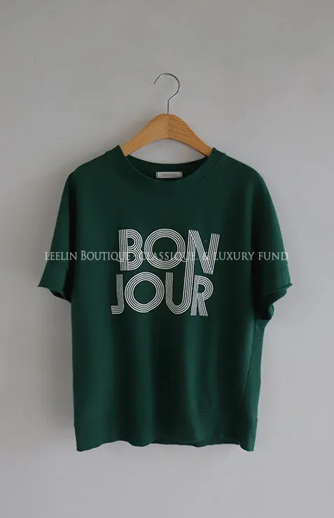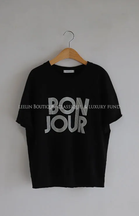 Bonjour字母印花休閒剪裁純棉上衣