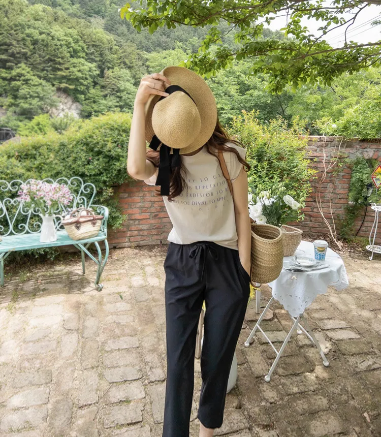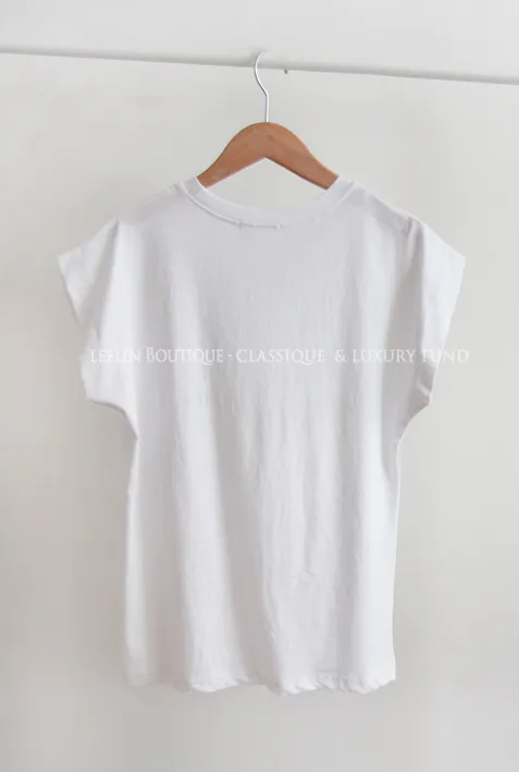 夏日魅力簡潔字母印花蓋袖柔軟上衣