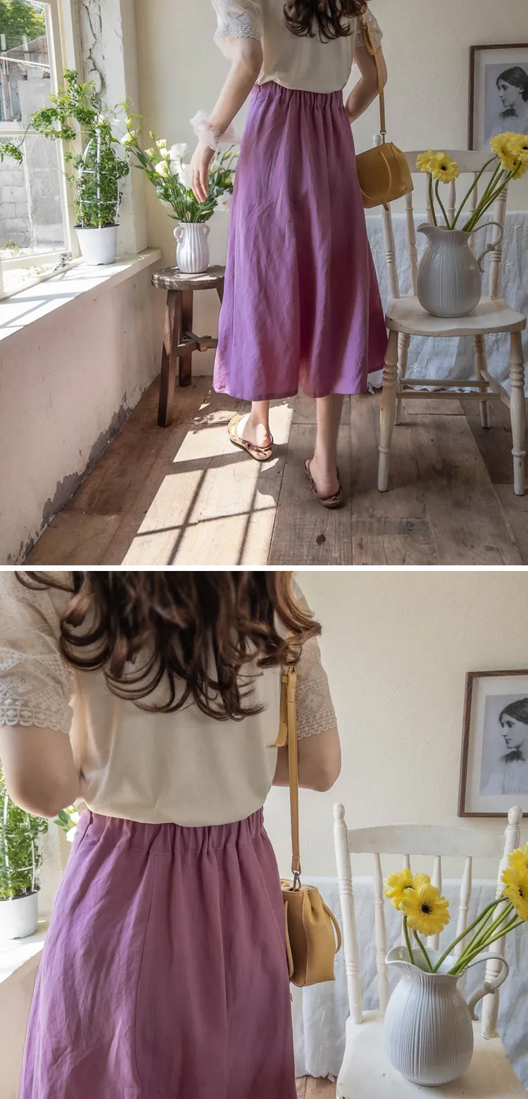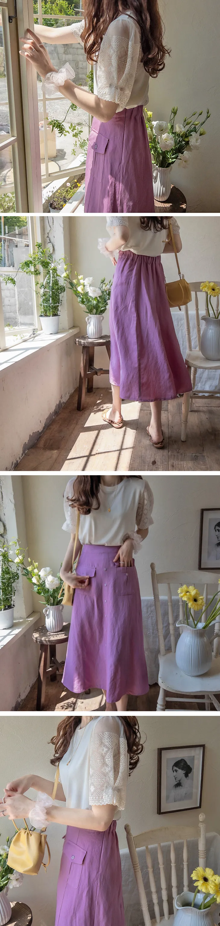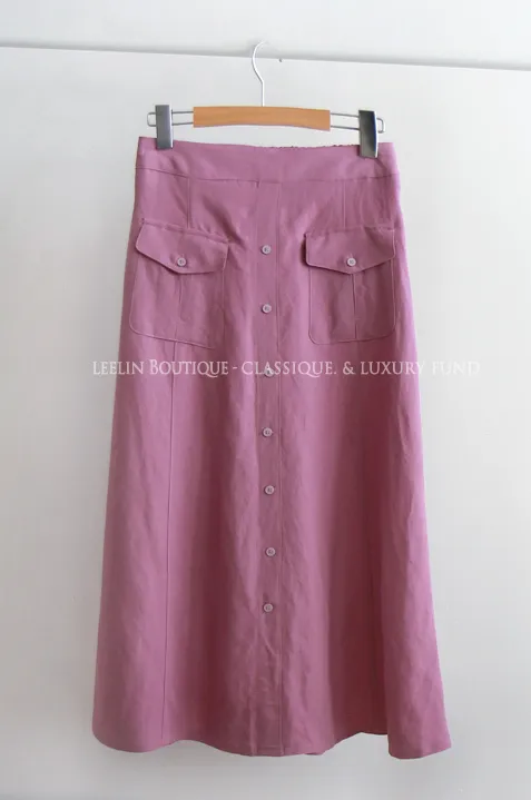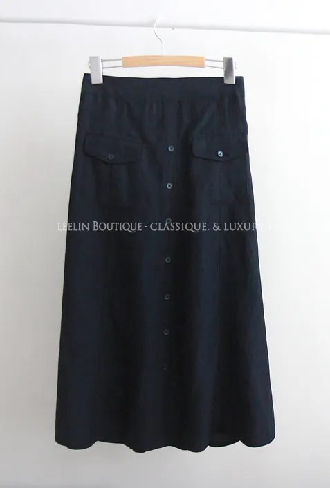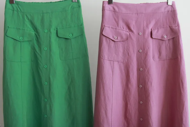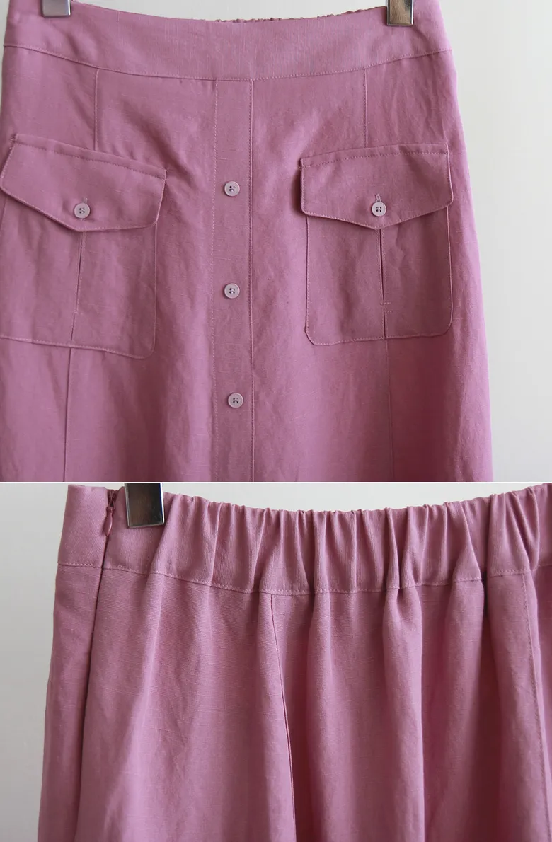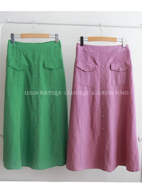 清新色彩口袋排扣造型設計腰部彈性中長裙