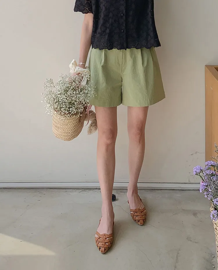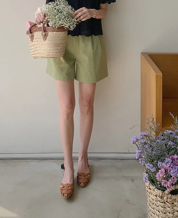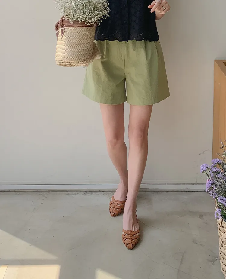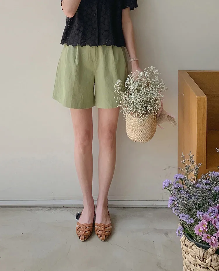 舒適雙針摺半A字廓形修身短褲