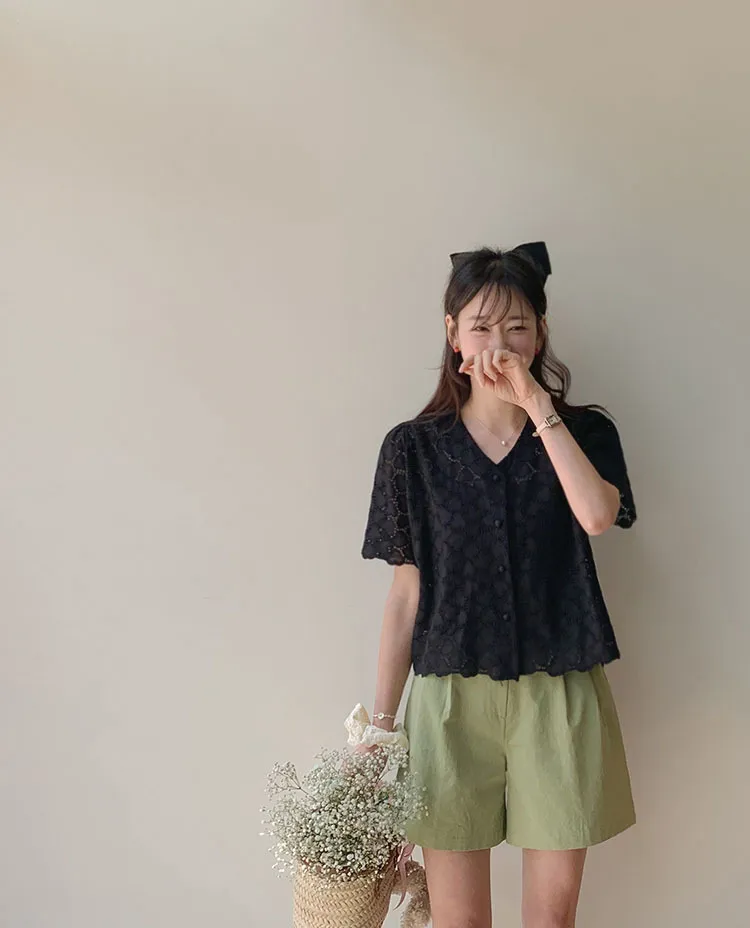 優雅可愛心形鏤空設計排扣上衣外套