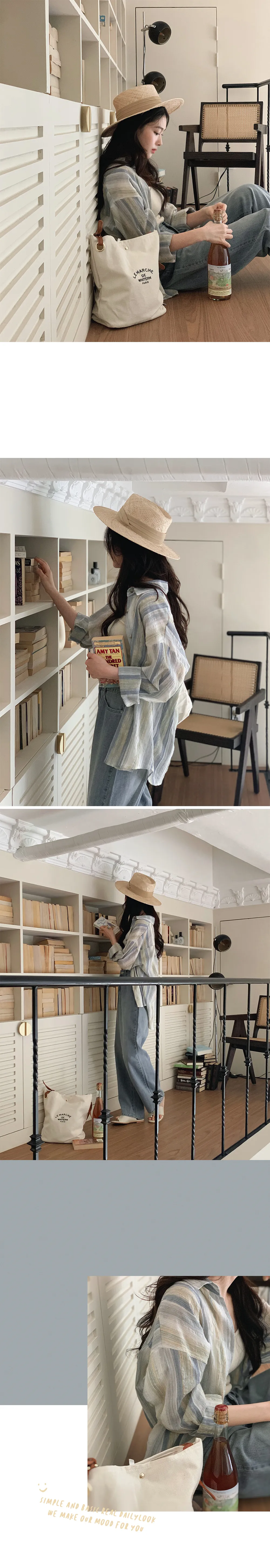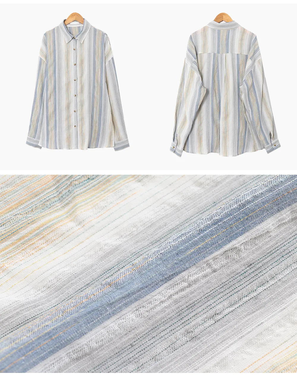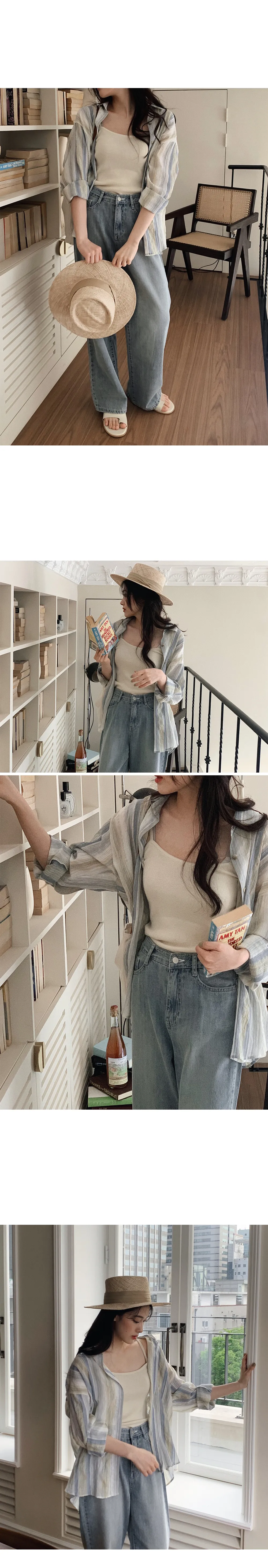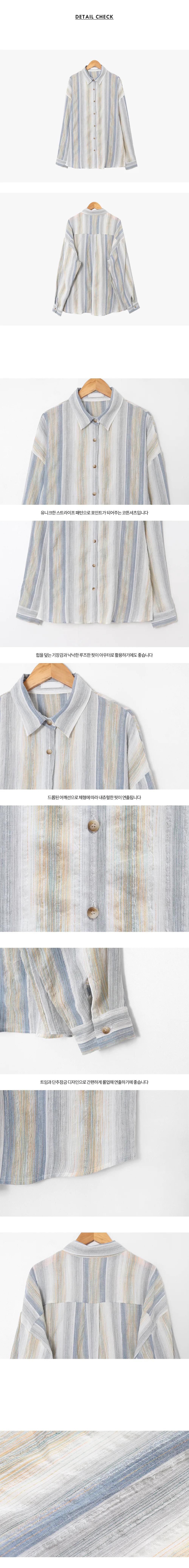 迷人藍綠色調條紋皺摺襯衫