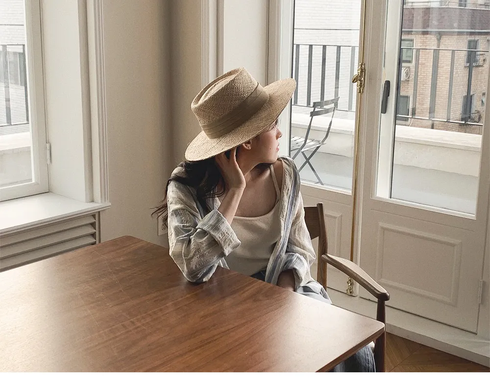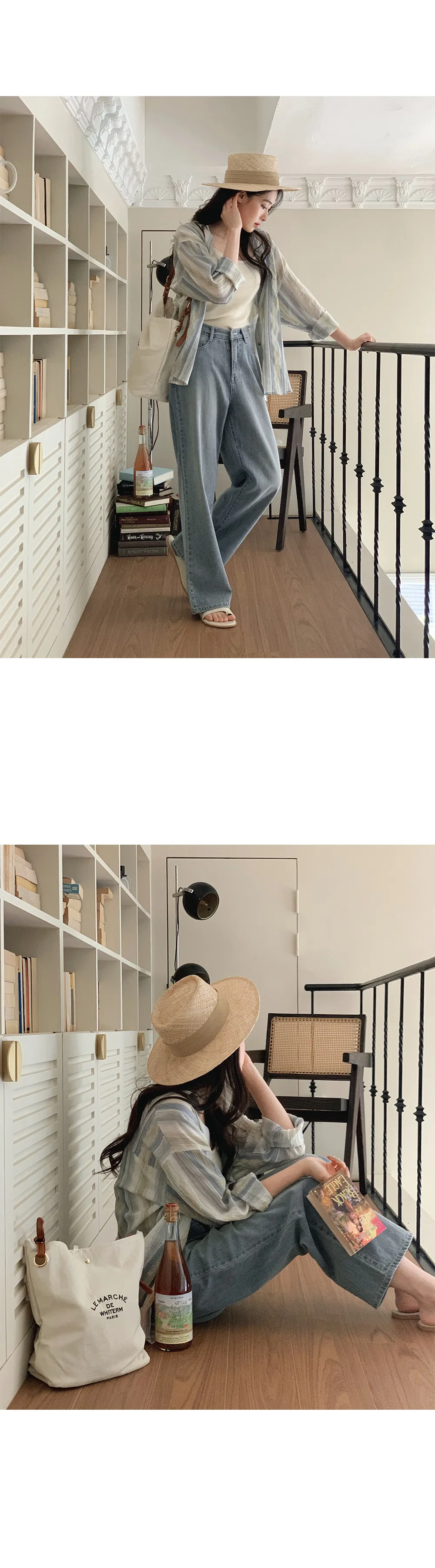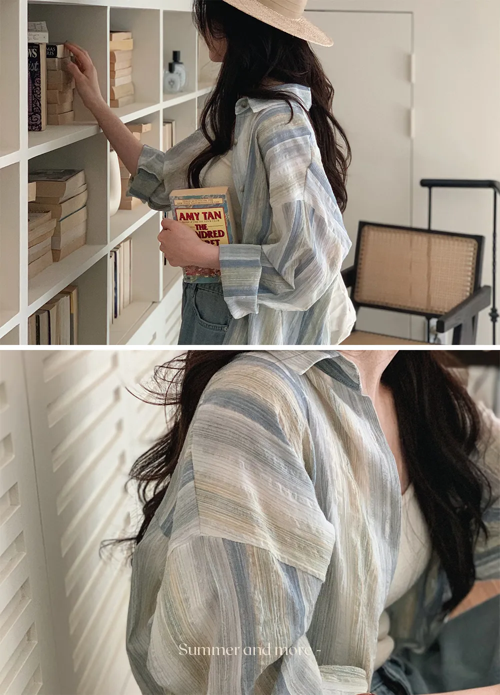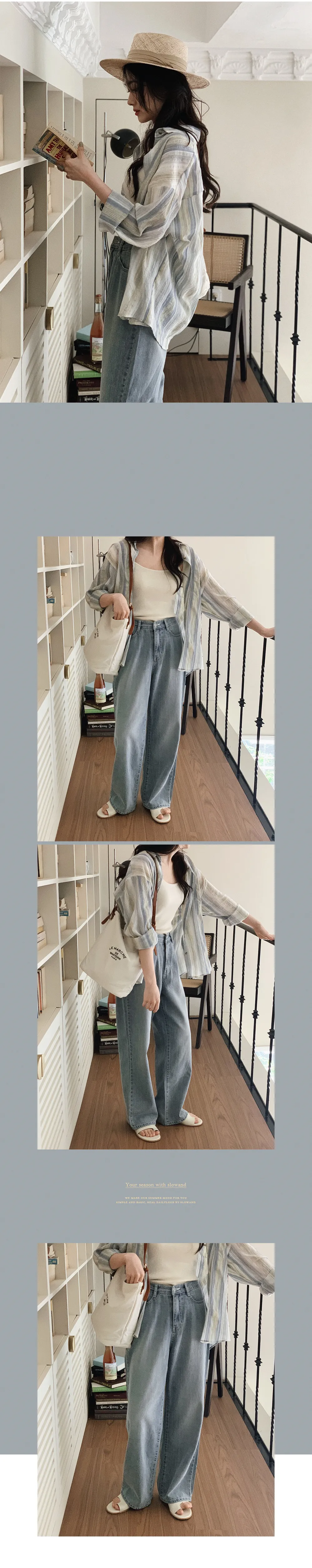 迷人藍綠色調條紋皺摺襯衫