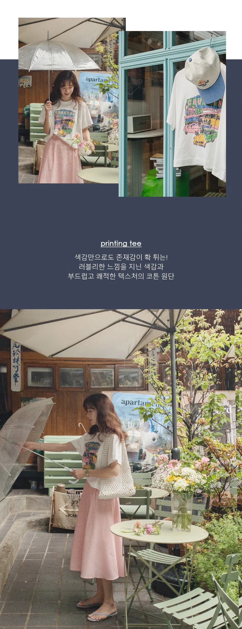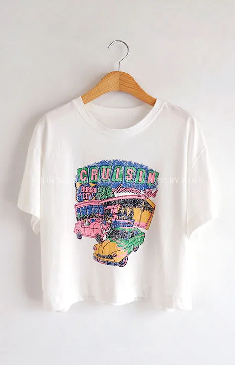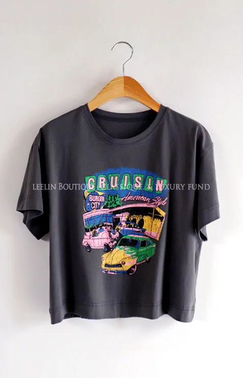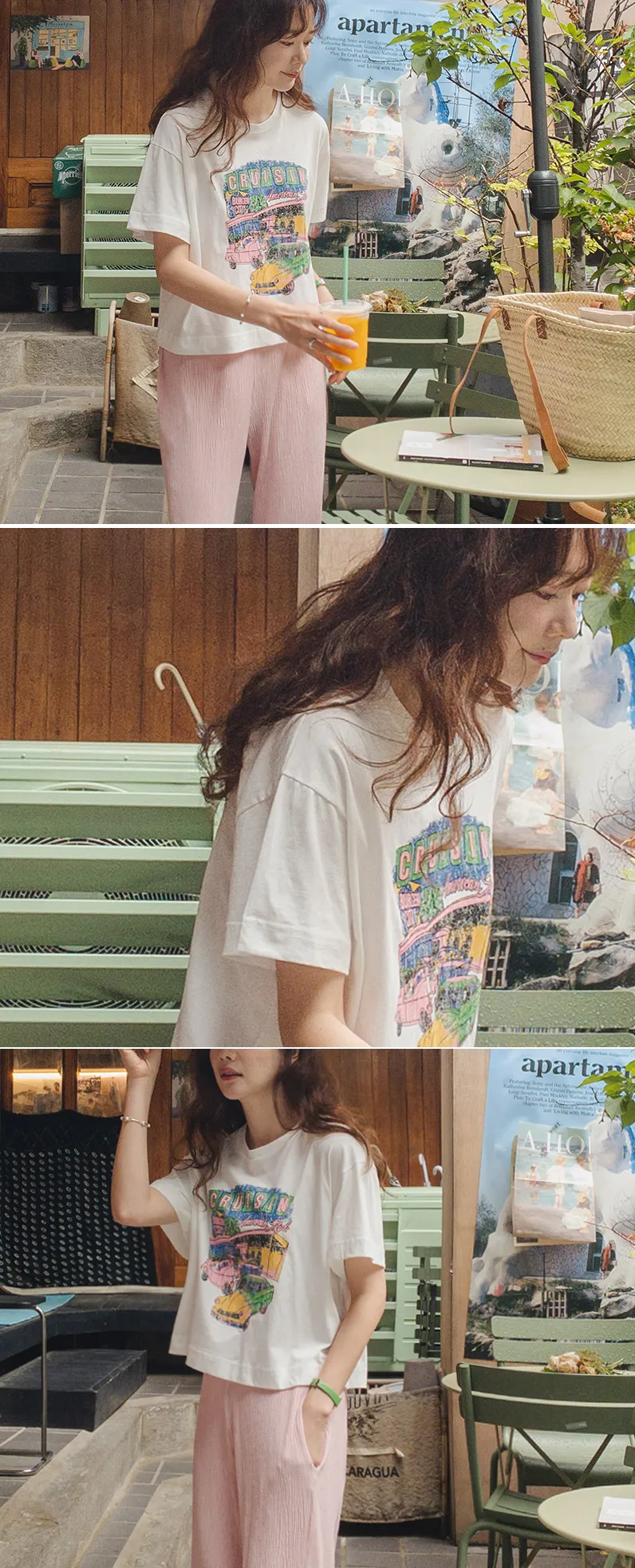 【復古裂紋印花T卹】【棉質布料,質地柔軟舒適】【半短款讓腿看起來更長】