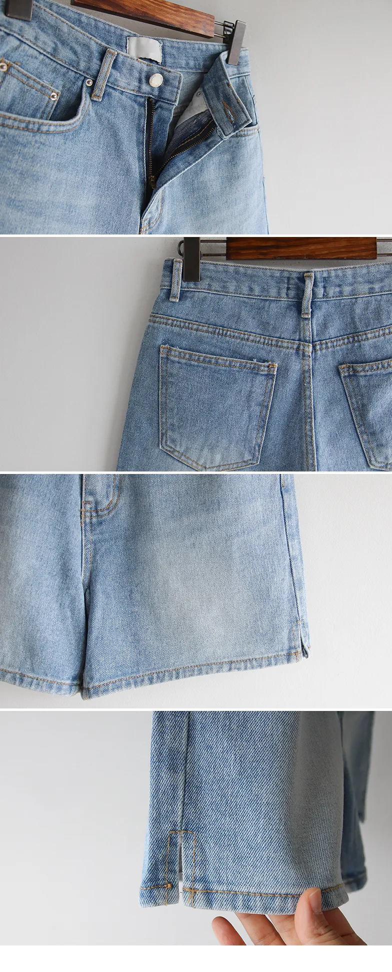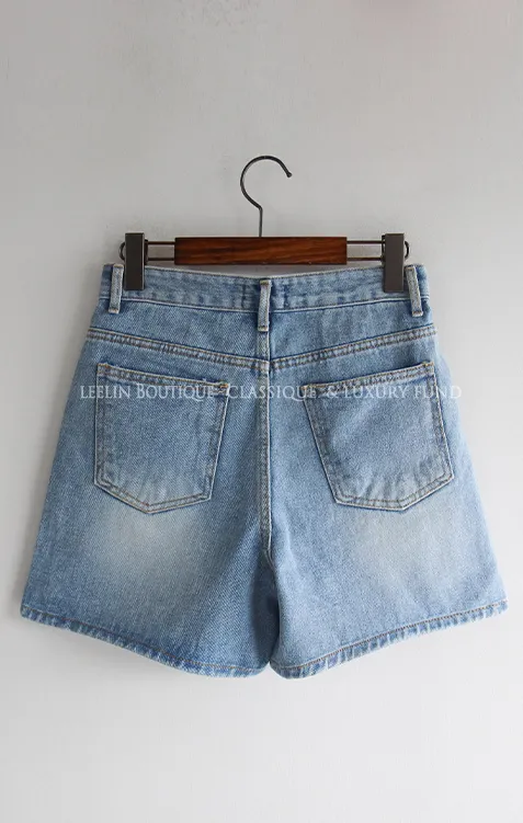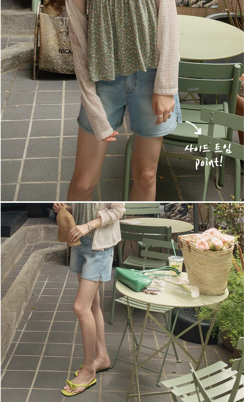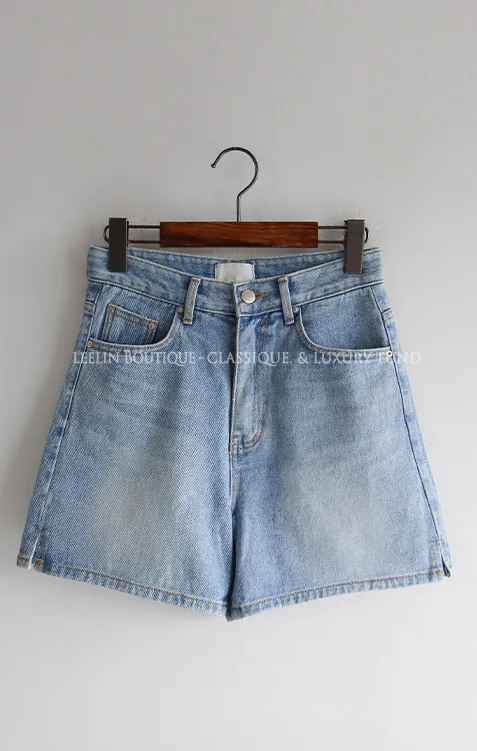 漂亮水洗柔軟舒適小開衩牛仔短褲