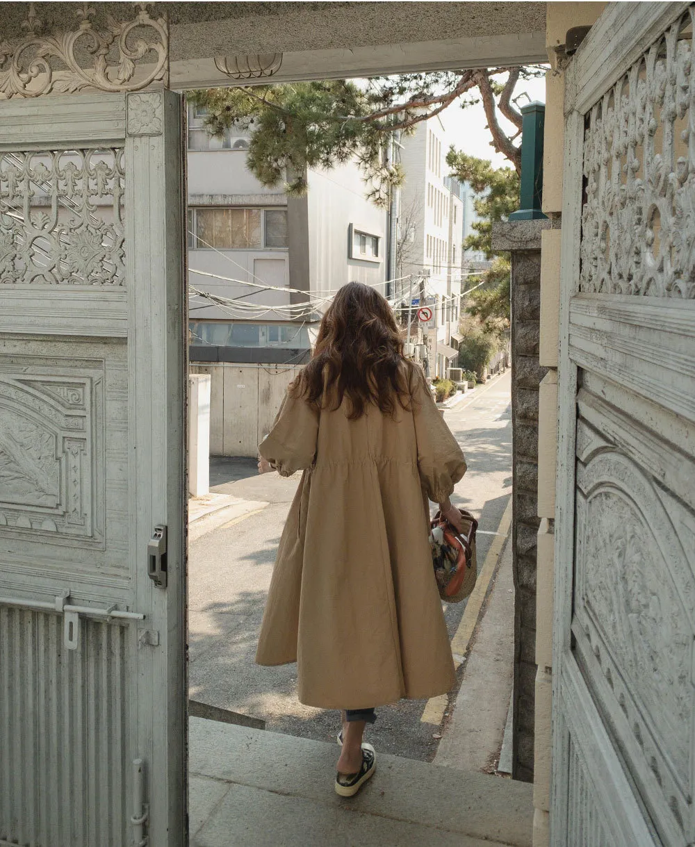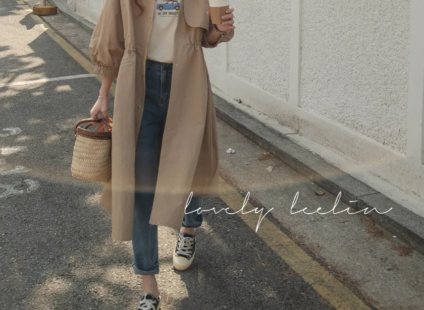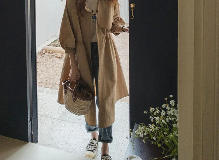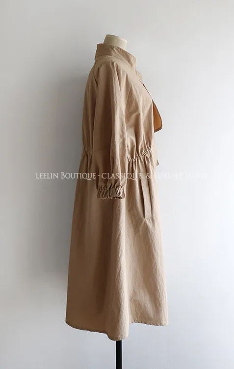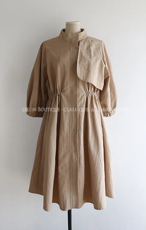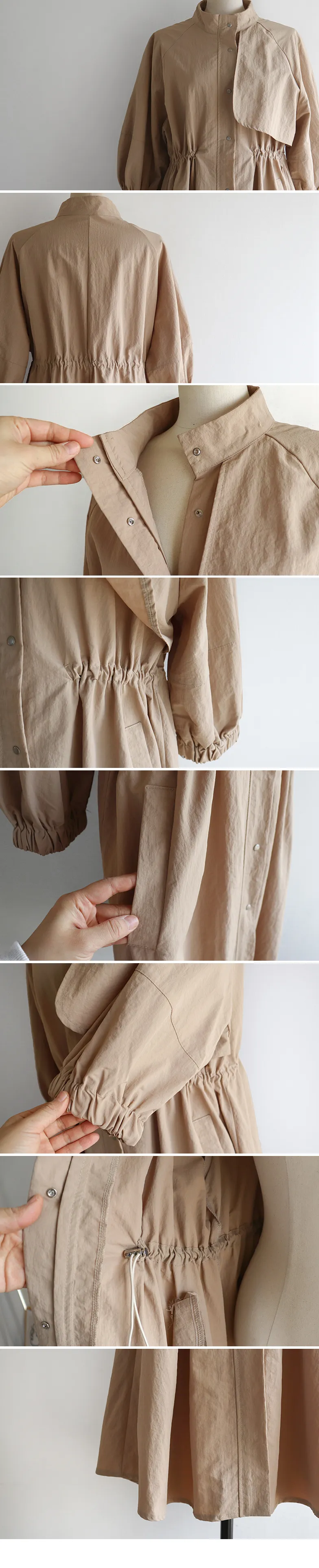 活潑蓬鬆袖口抽繩收腰風衣外套