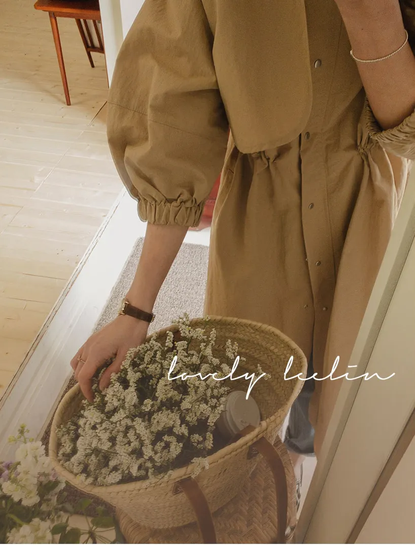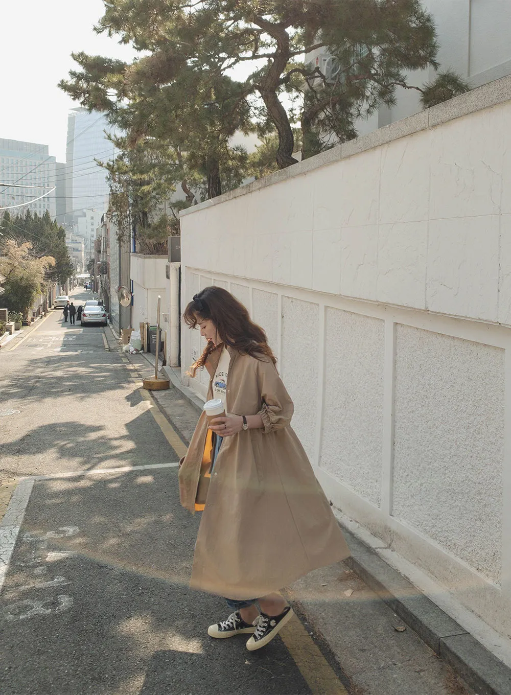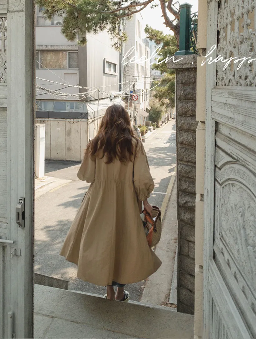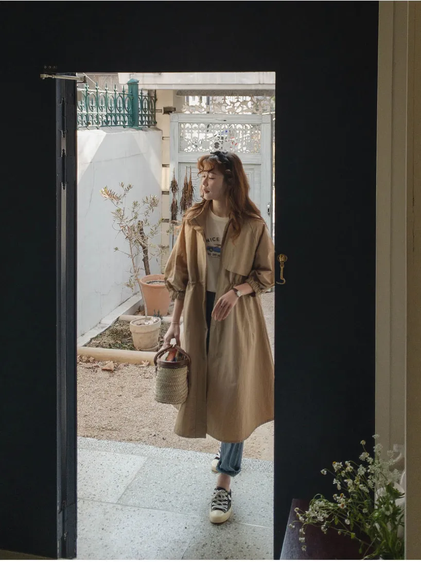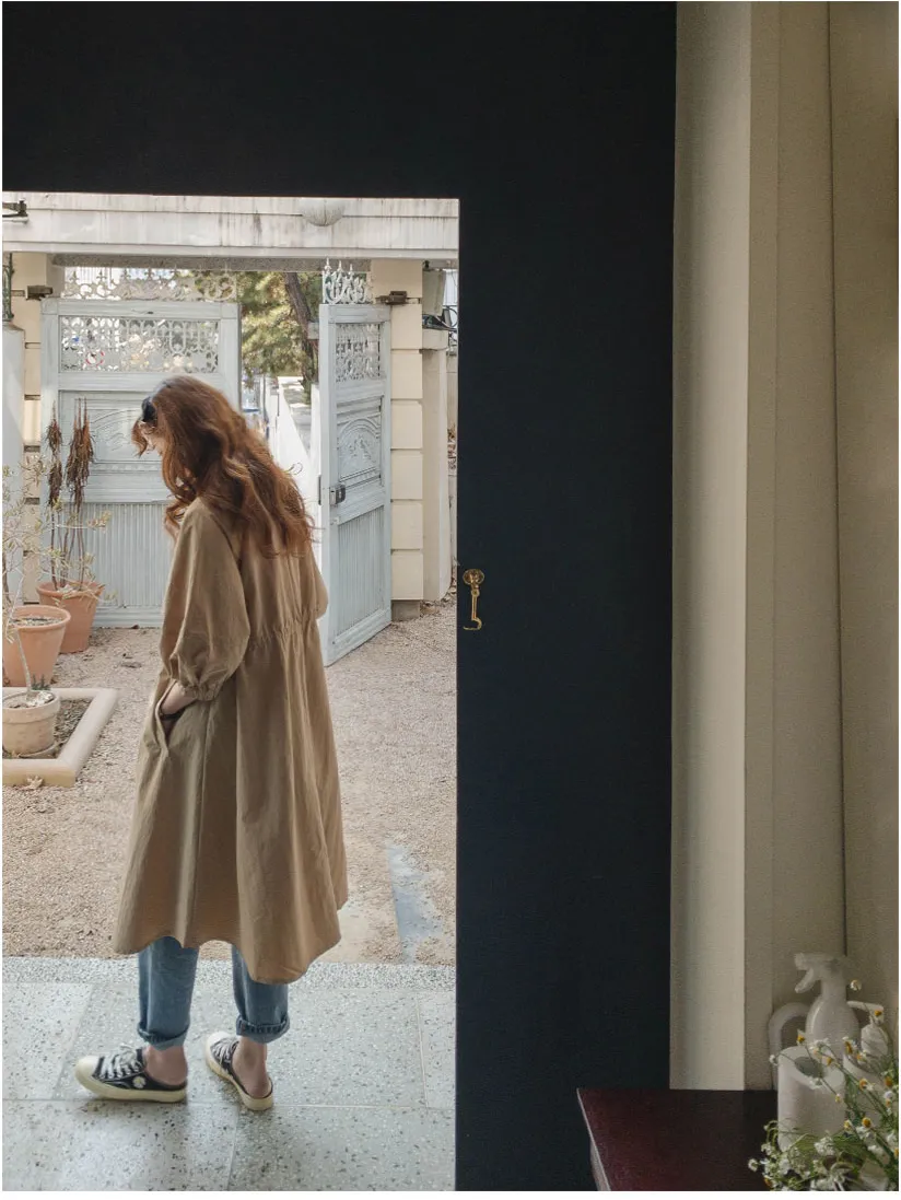 活潑蓬鬆袖口抽繩收腰風衣外套