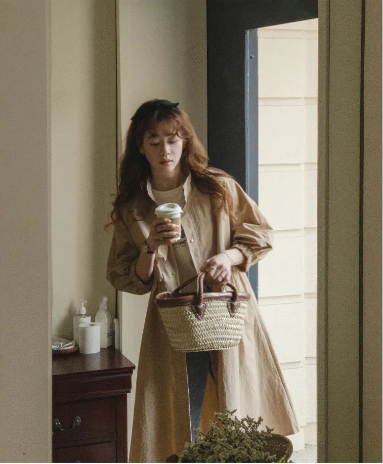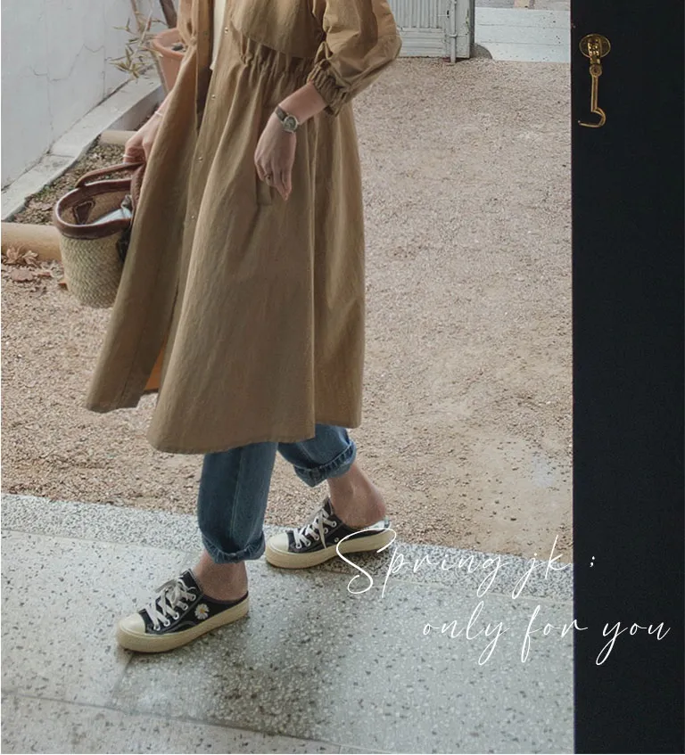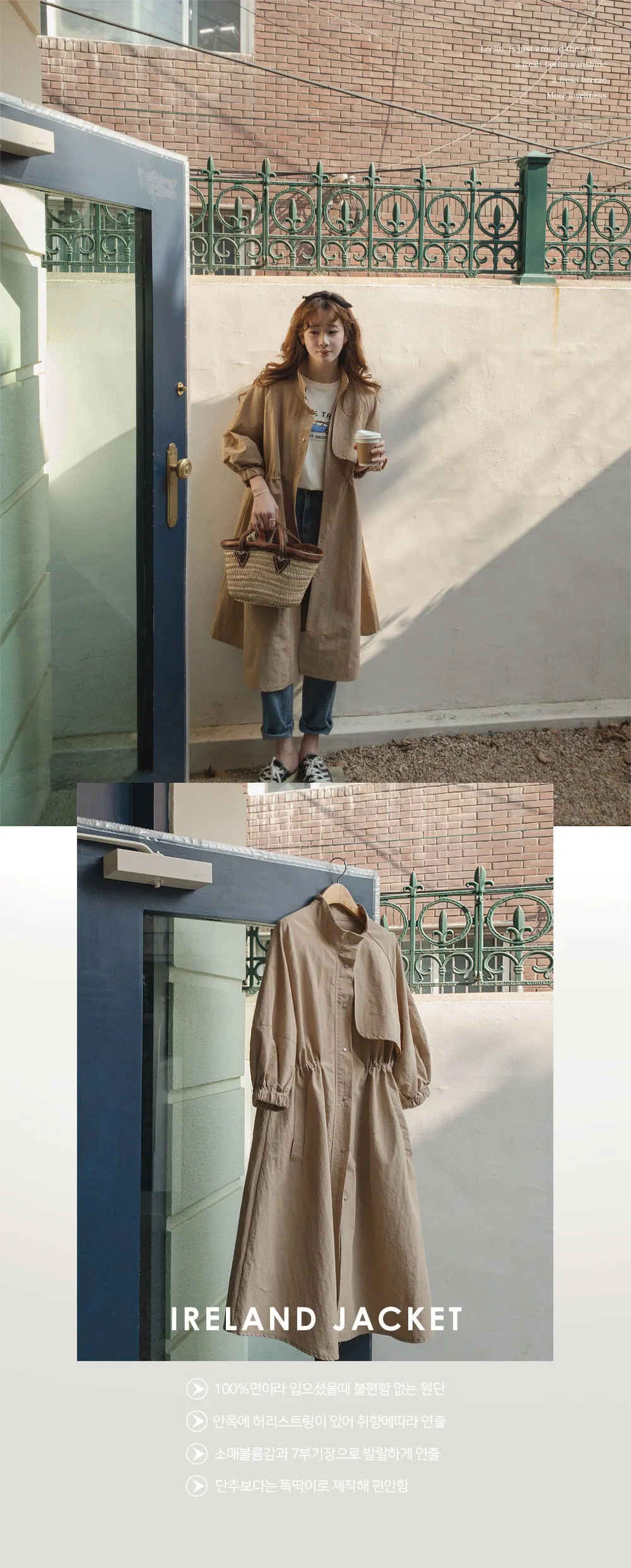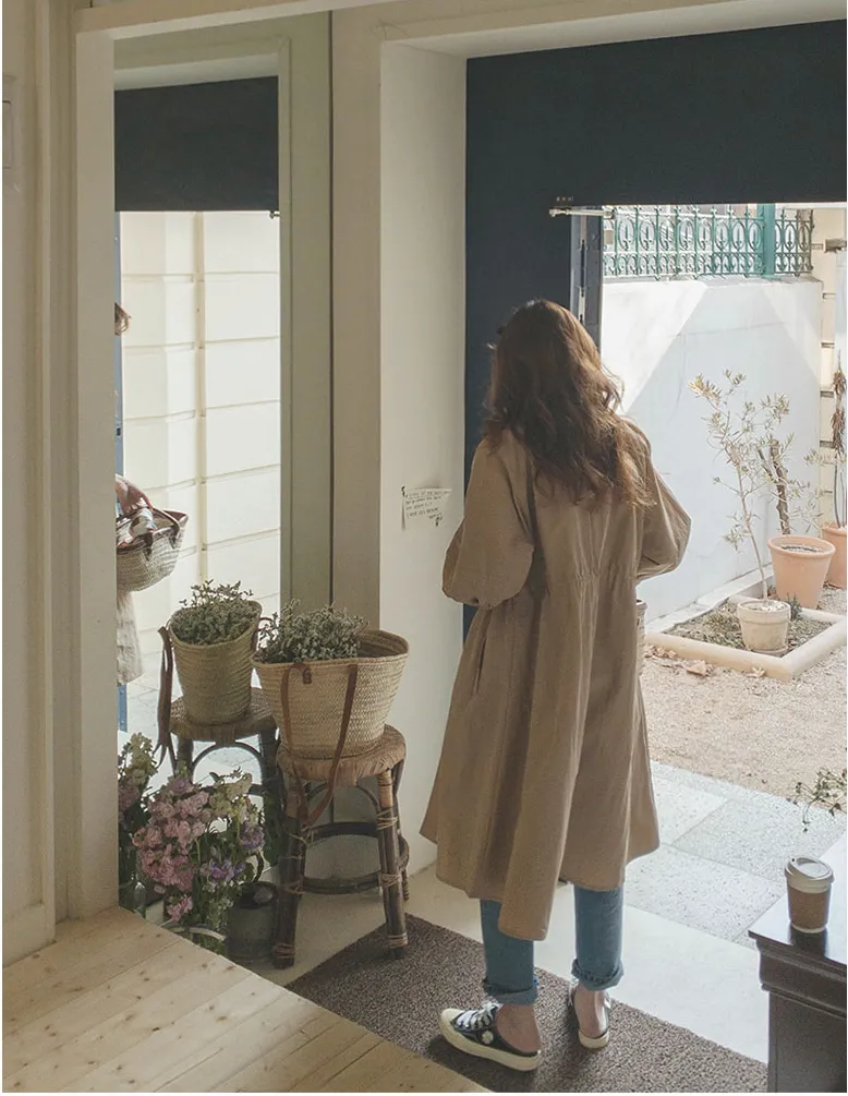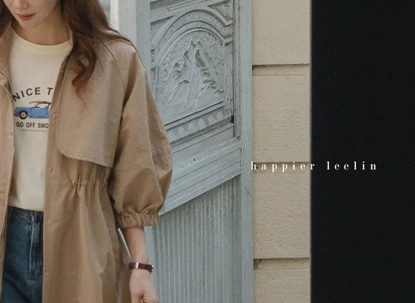 【換季必備單品~穿著舒適風衣外套】【美感合身+3/4袖長帶出活潑感♡][腰圍單品~可以依照自己的喜好用內繩調整!][寬大的寬度可以修飾體型]