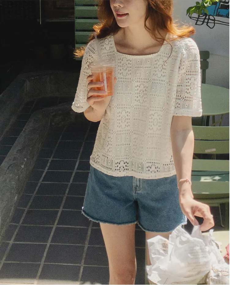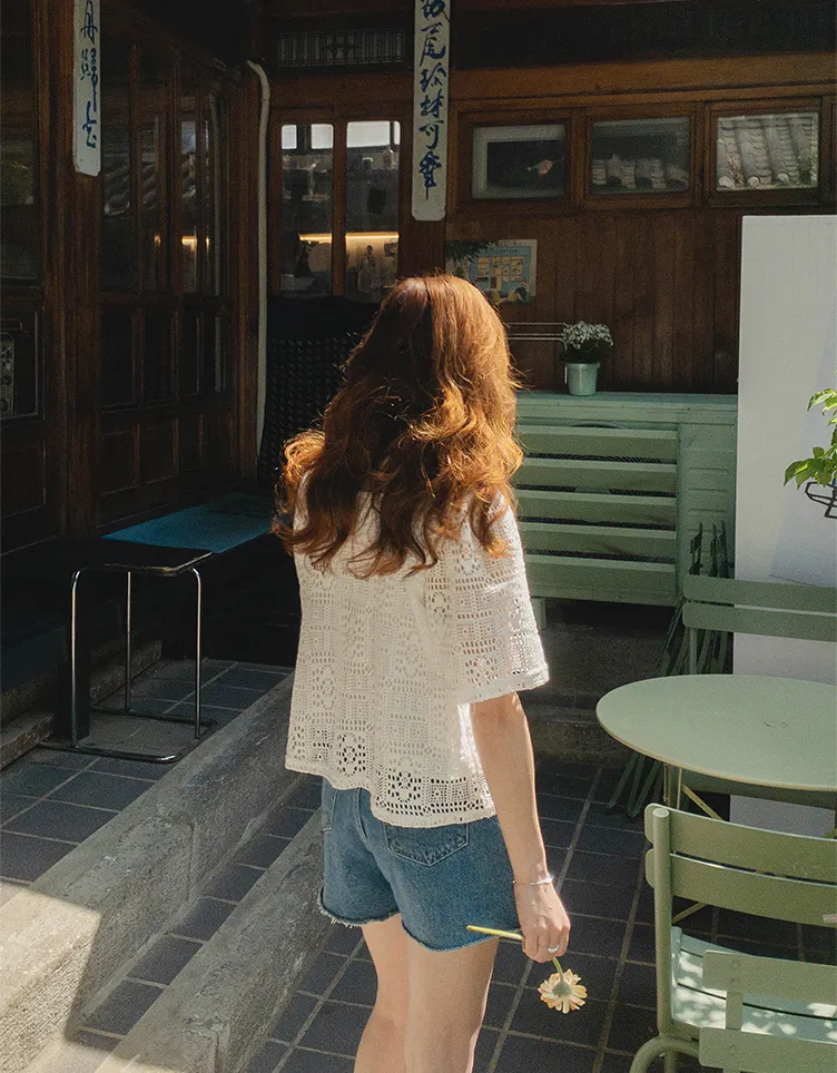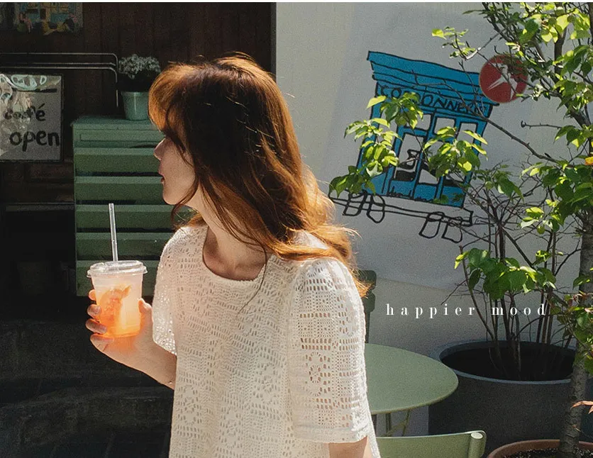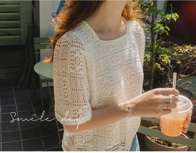 【純真~純粹的鏤空上衣♡】【孔洞編織獨特又奢華】【有內襯,不用擔心會透出來~】 【遮蓋身形A字貼合】