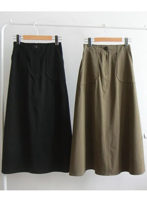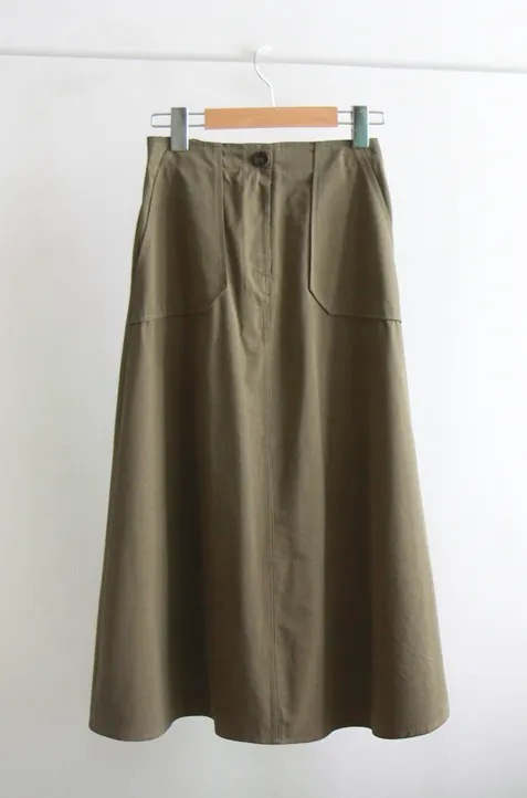 時尚線條腰部彈性口袋設計中長裙