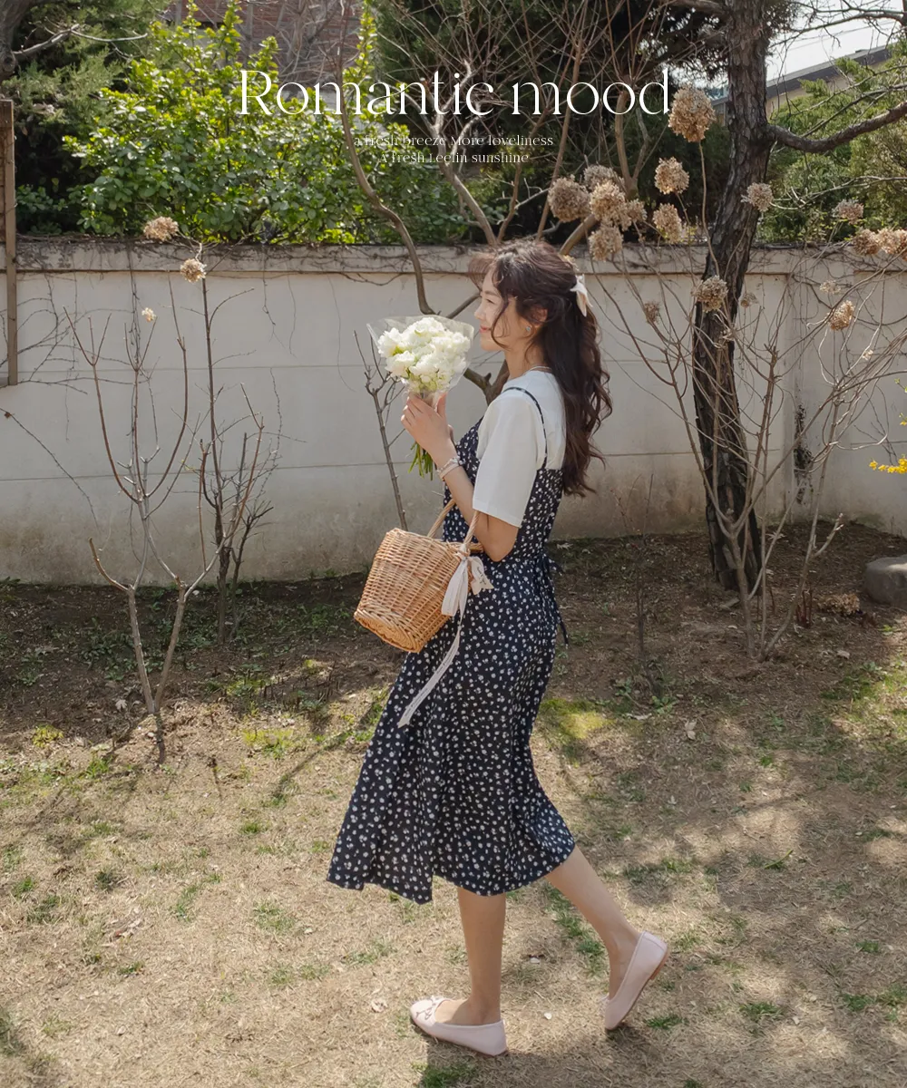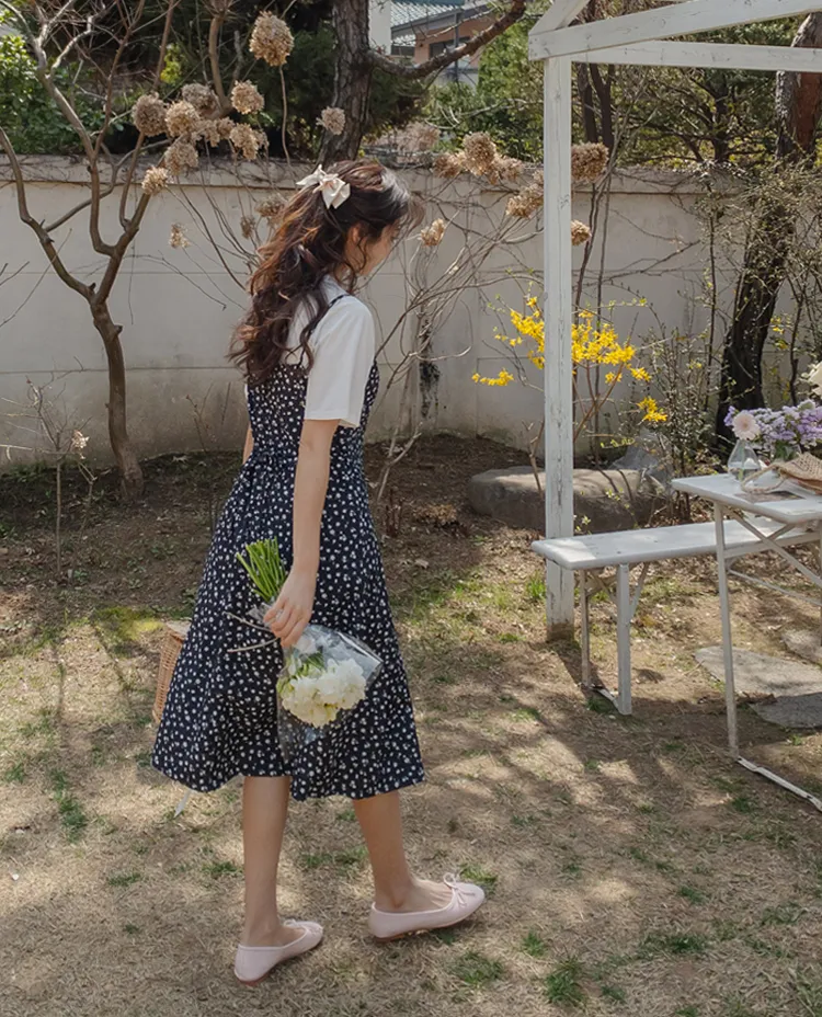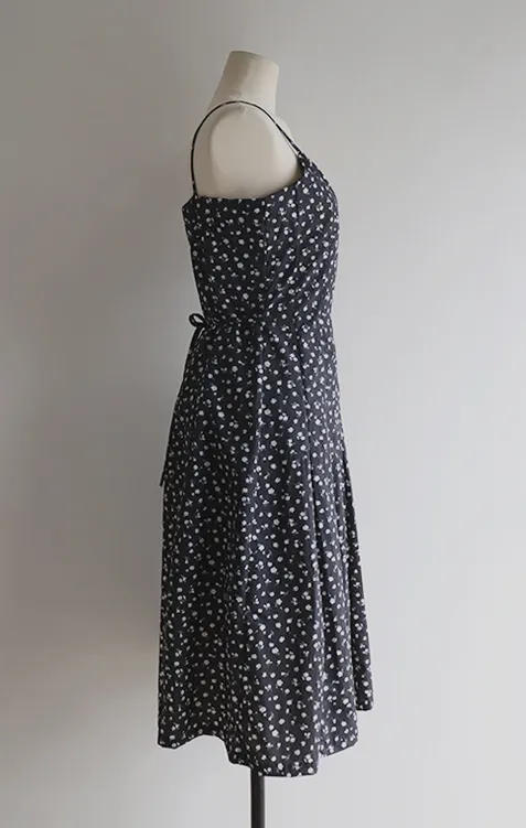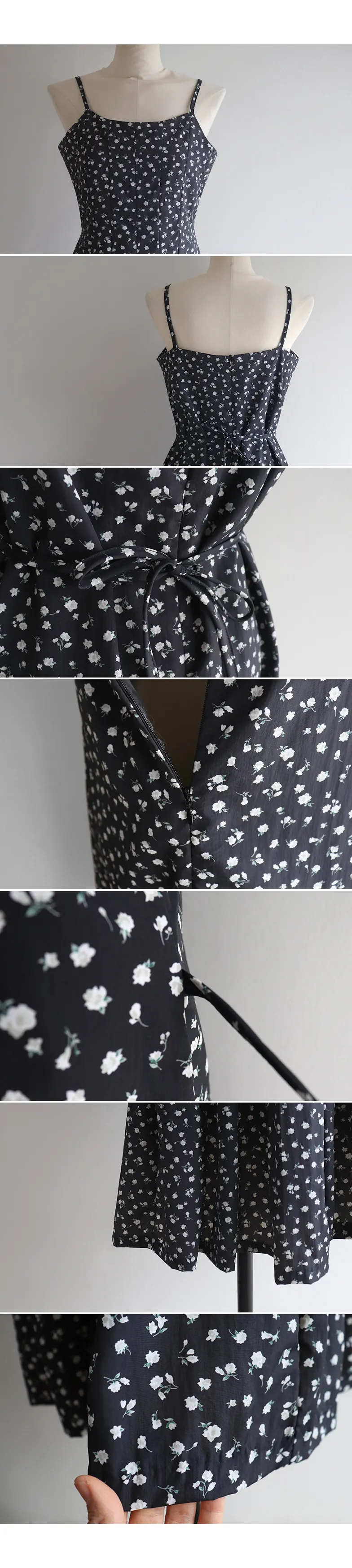 浪漫氣息可愛小花A字輪廓後綁帶連身裙