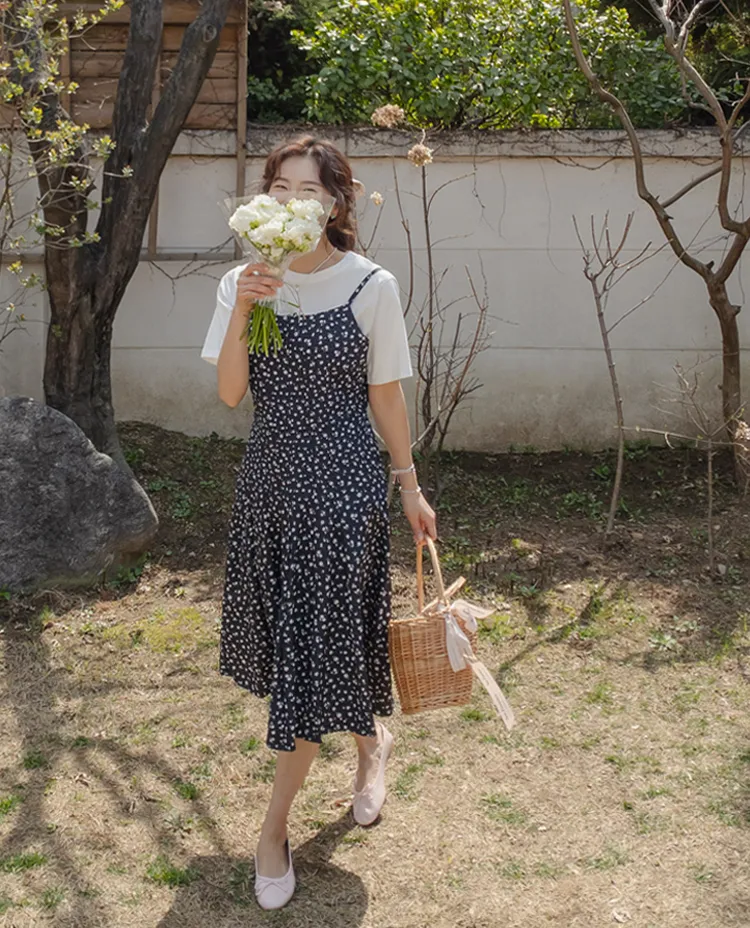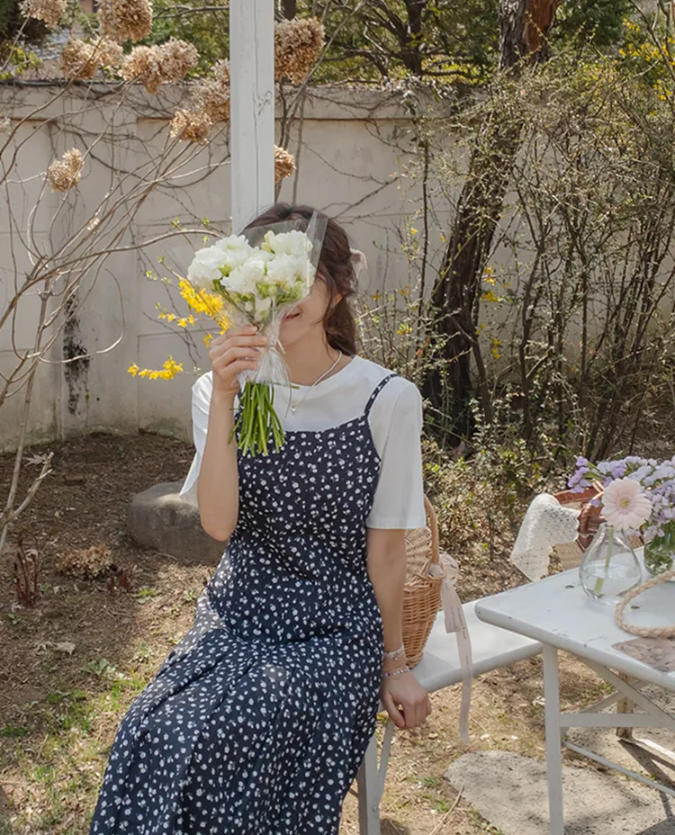 【非常適合外出穿搭小花背心連身裙