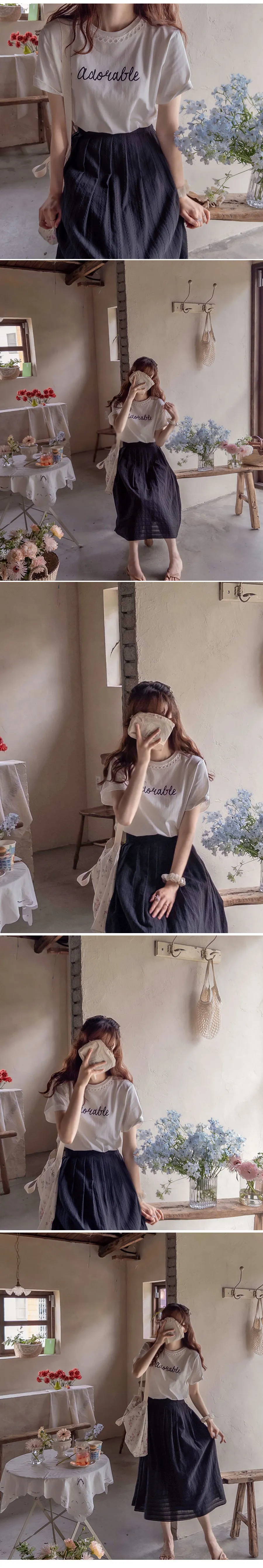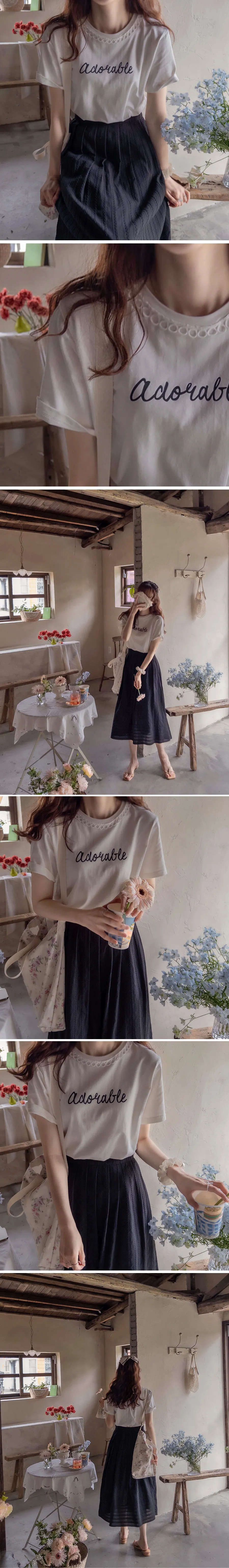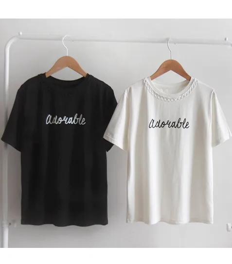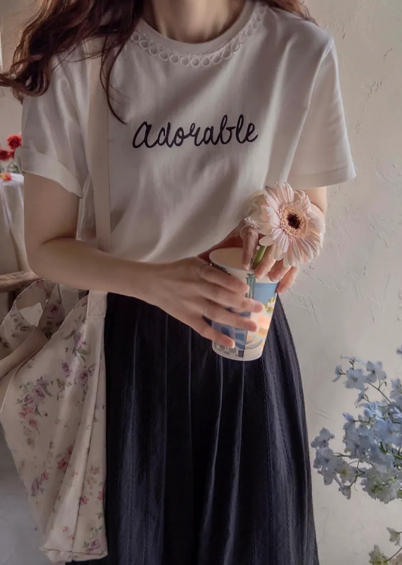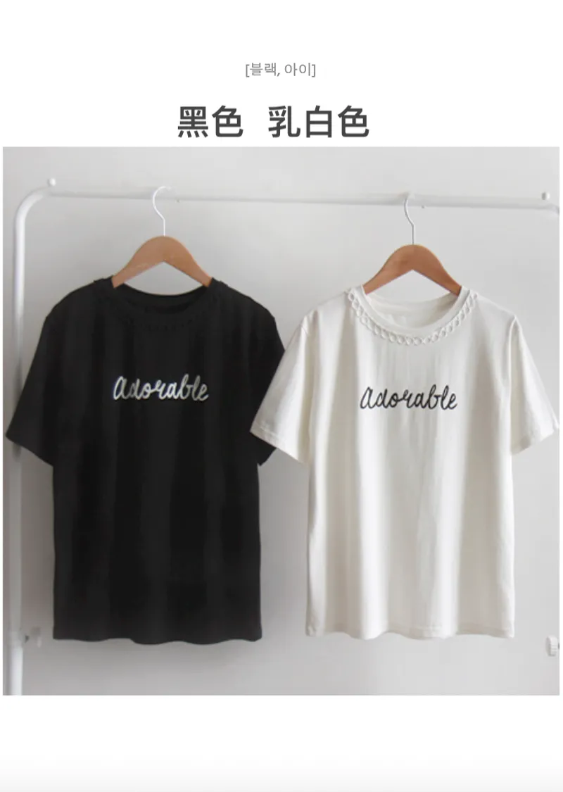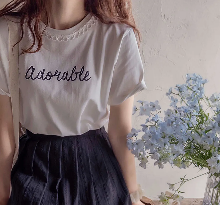 [領口是圓形蕾絲飾邊,作為點綴也很漂亮][字母搭配起來充滿活力][穿著舒適]