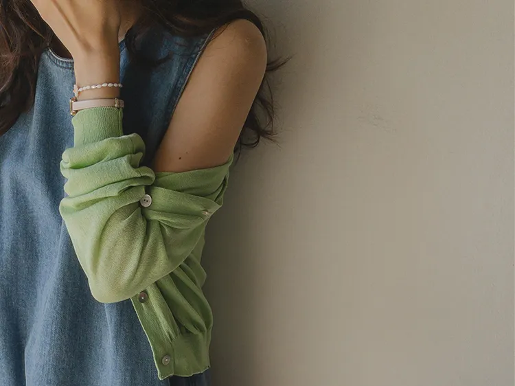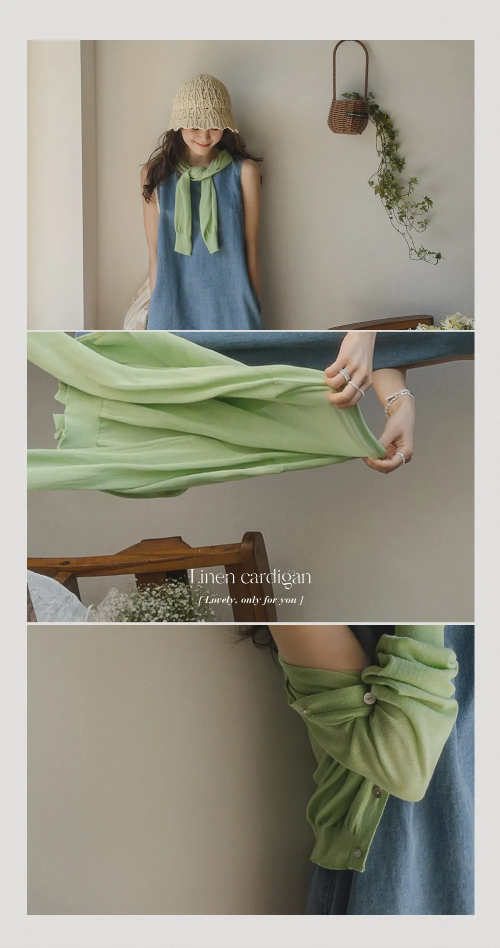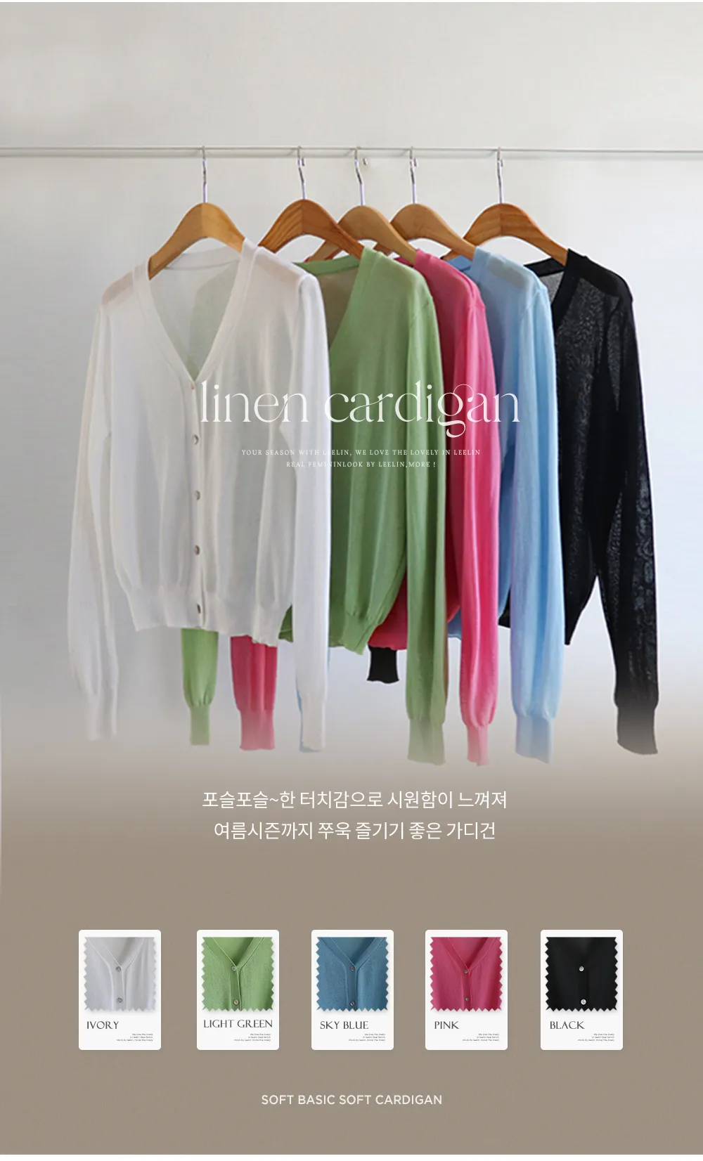 [柔軟的觸感,即使在夏季也可以使用的開衫♡][5種不同的顏色組合][亞麻混紡的細紗穿著舒適][休閒享受的好選擇]