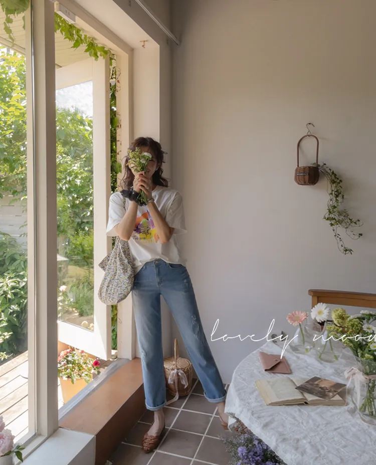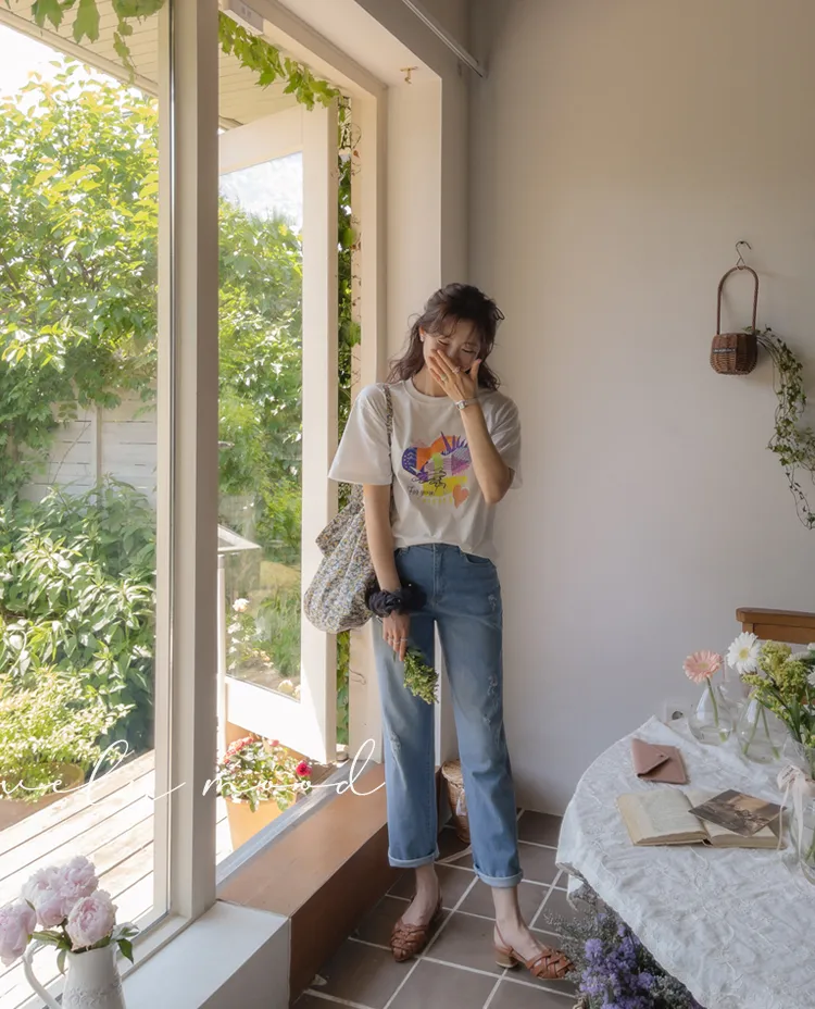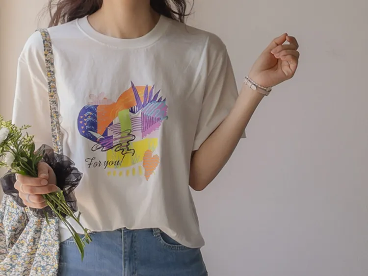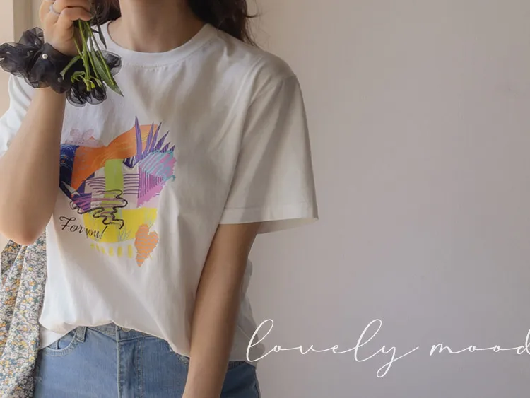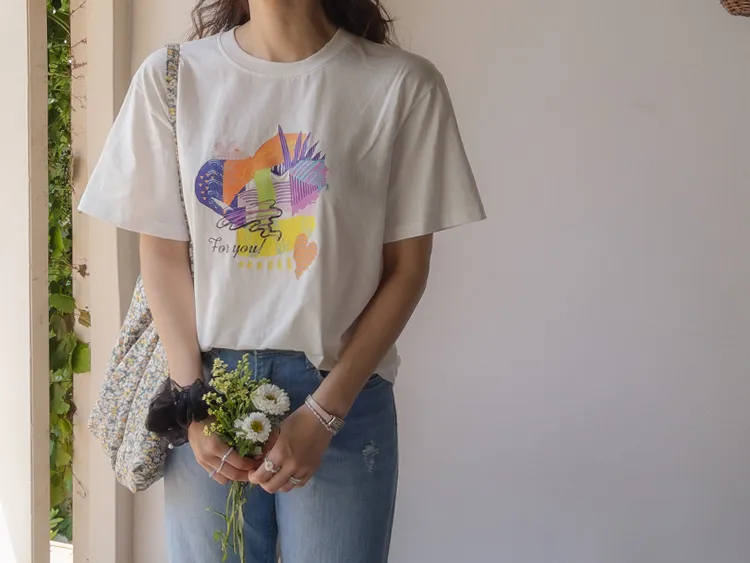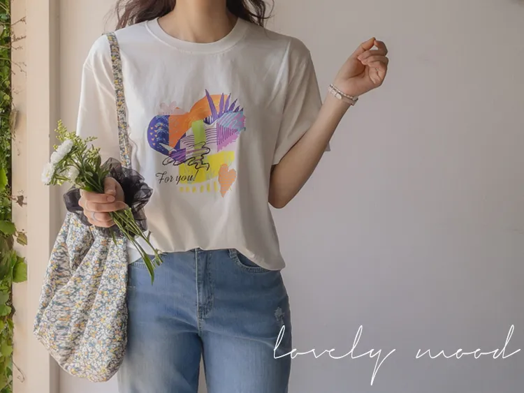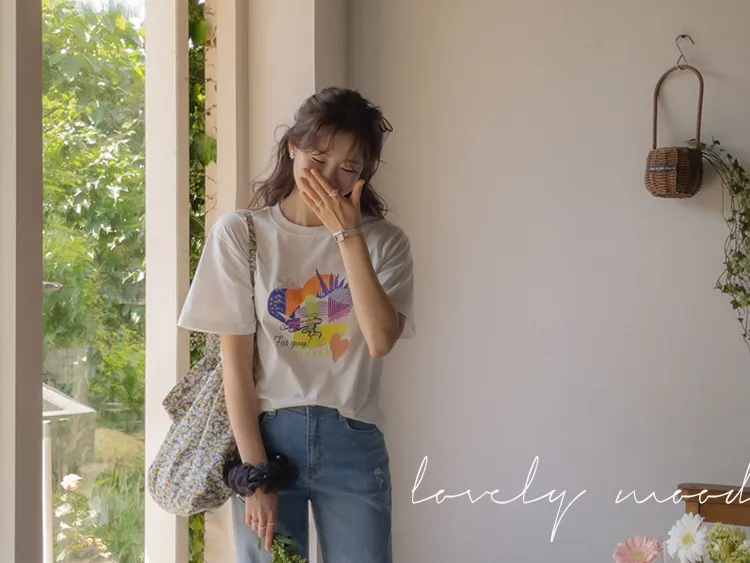 【獨特的心形印花!短袖T♥】【單獨穿著或與各種外套疊搭都不錯~】【標準版型舒適,輪廓寬敞】【推薦作為夏季日常短袖T卹】