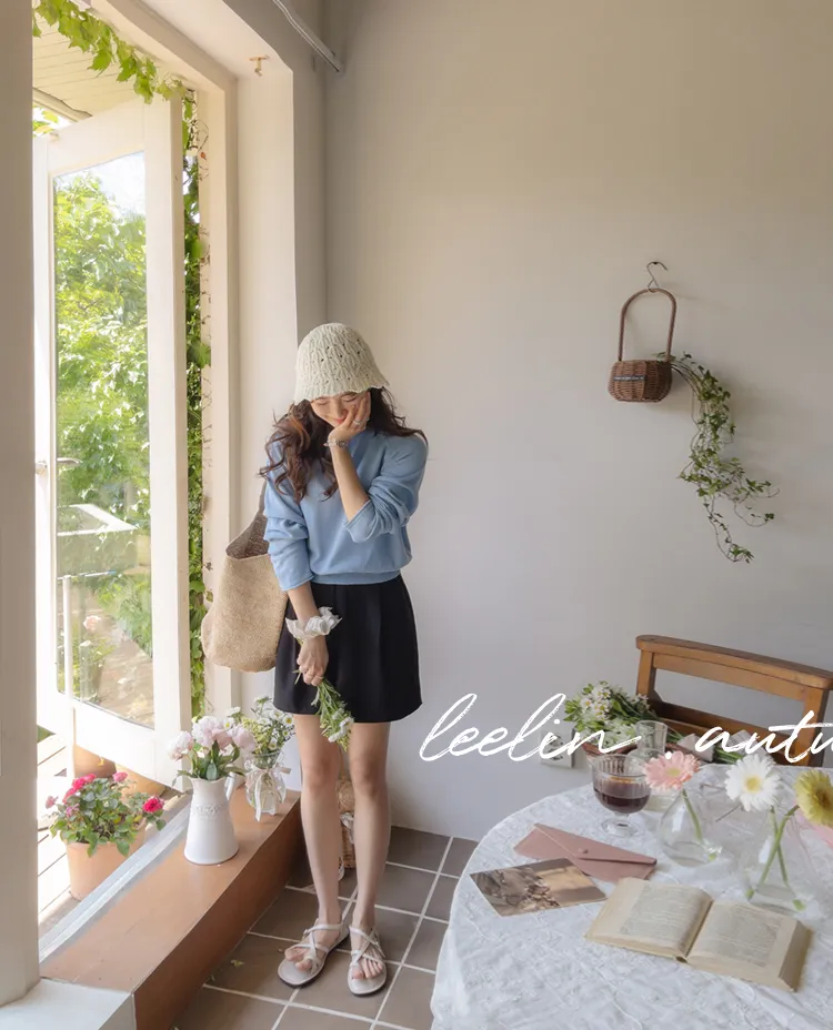 【心情細膩的亞麻針織♡】【連肩線+下擺修長版型】【寬鬆版型穿起來舒適又好看】【日常穿搭單品,穿著舒適舒服!