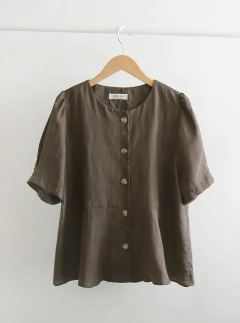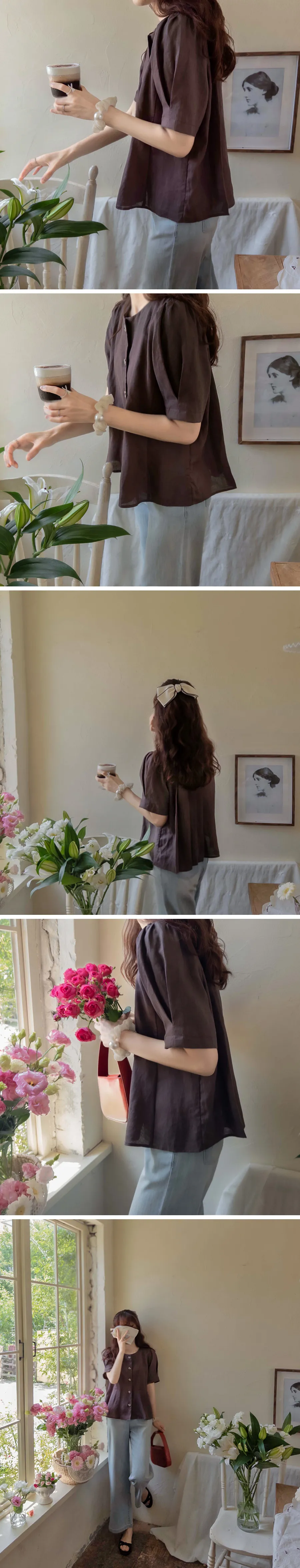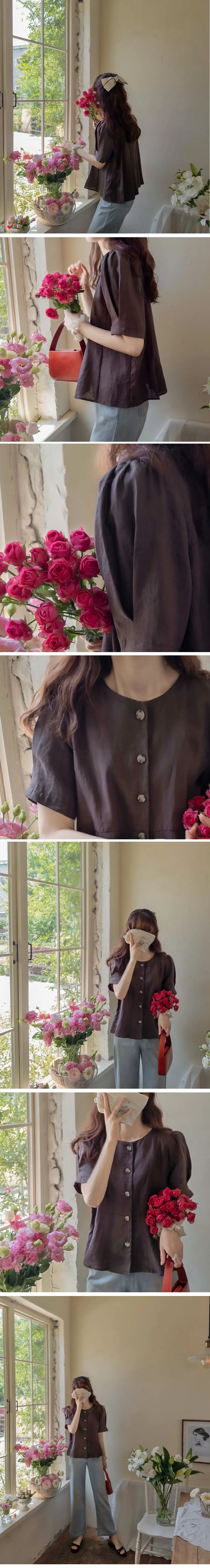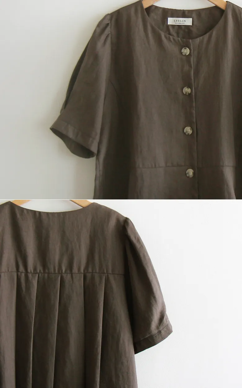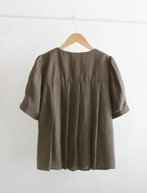 [涼爽的亞麻材質][可愛的設計,漂亮的線條][獨特背面有褶皺設計][袖子針摺漂亮線條][精緻的顏色,穿起來很時尚][品牌品質!