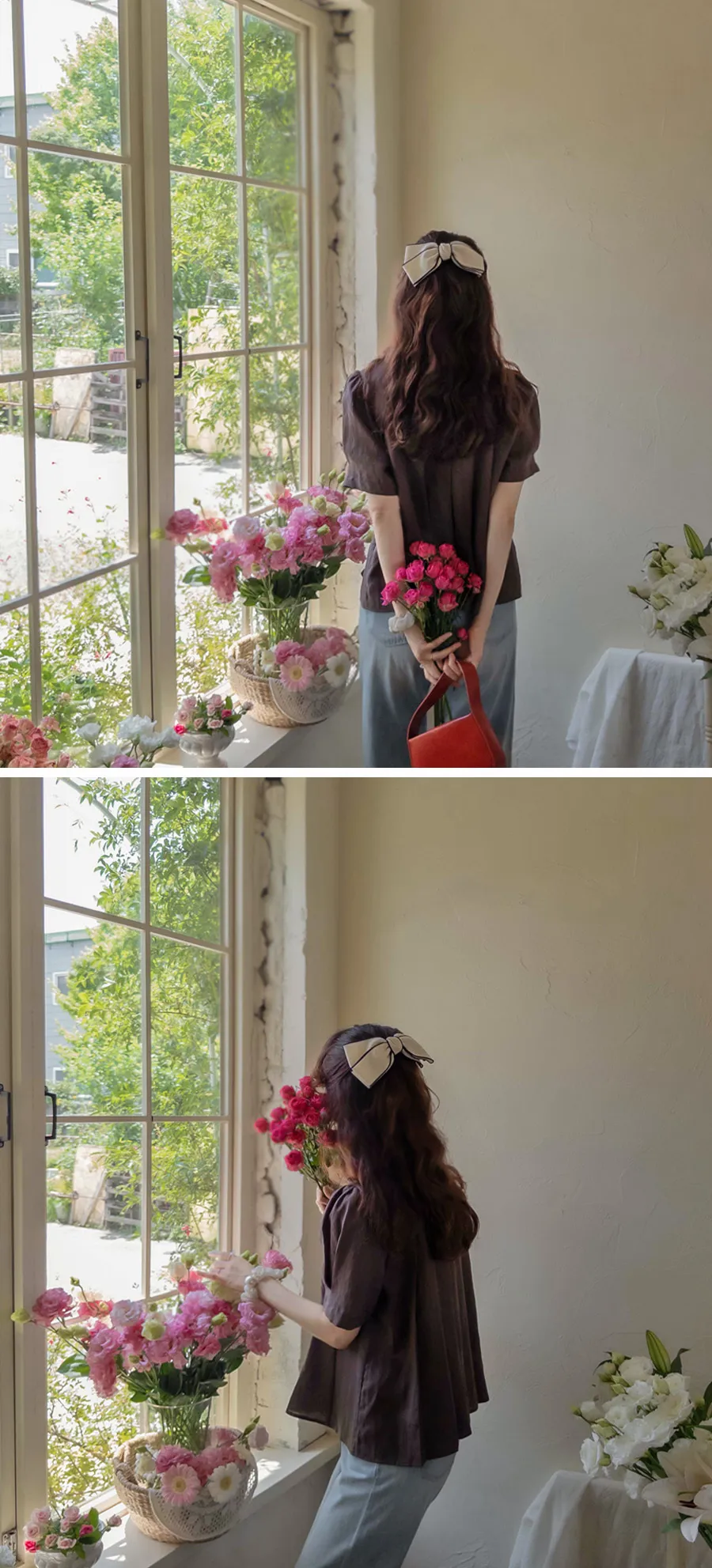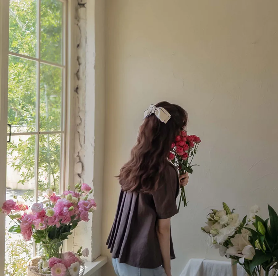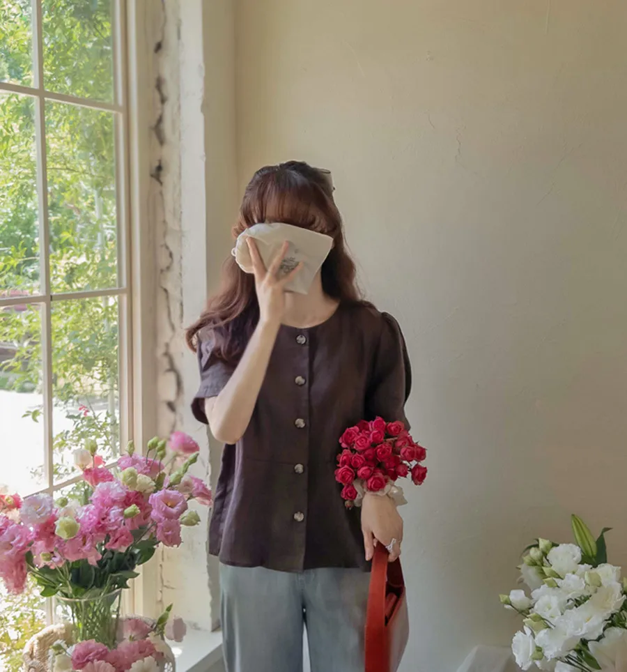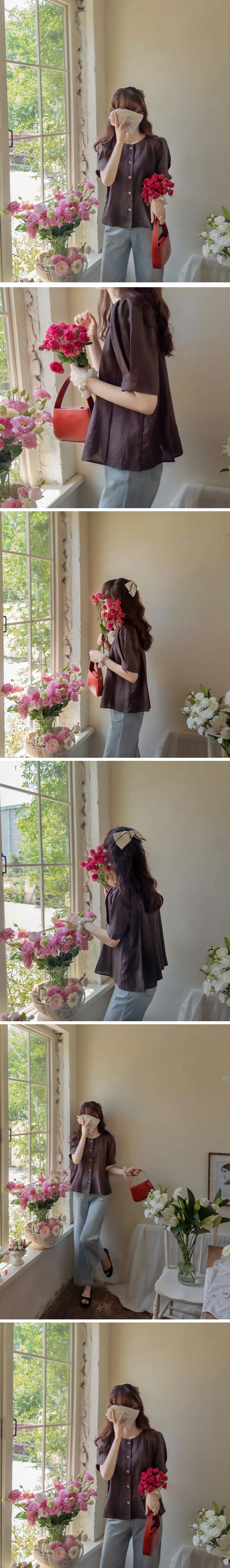 [涼爽的亞麻材質][可愛的設計,漂亮的線條][獨特背面有褶皺設計][袖子針摺漂亮線條][精緻的顏色,穿起來很時尚][品牌品質!