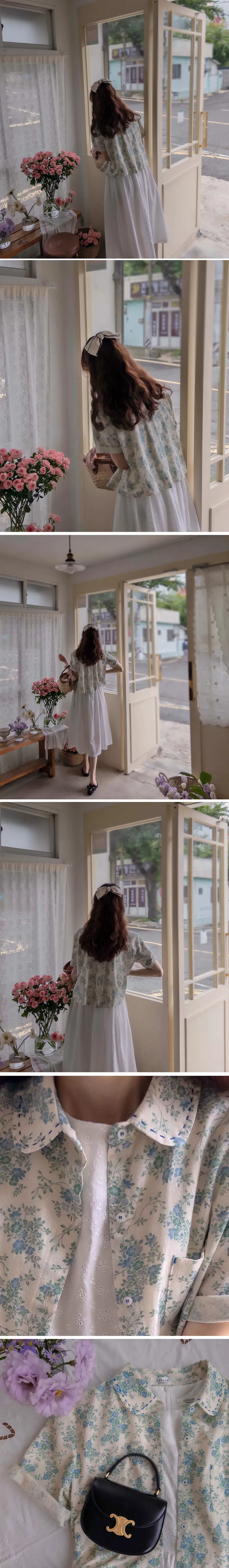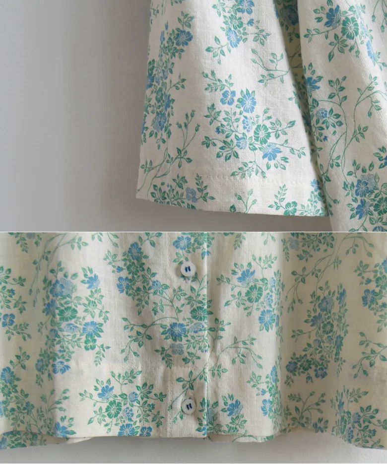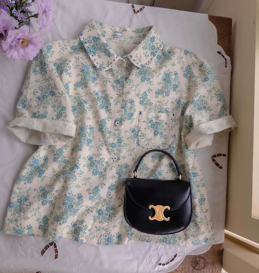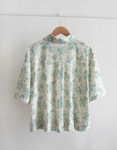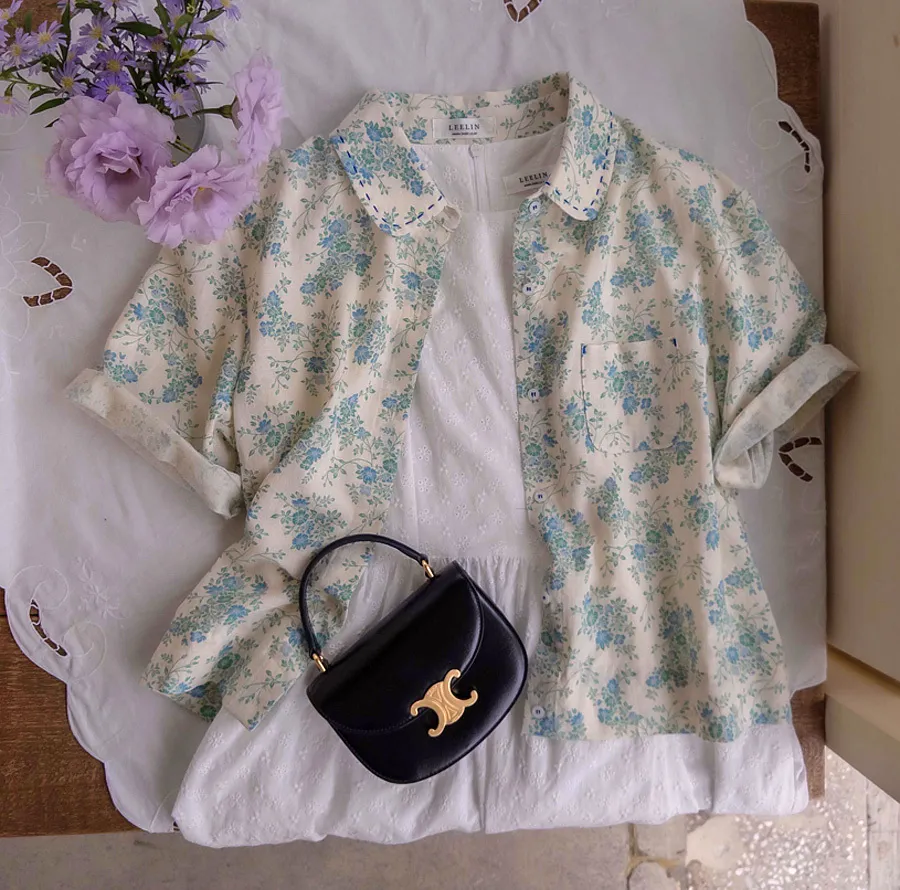 [夏天涼爽的面料][花朵夏季襯衫][亮點是可愛的縫線圓領][有吸引力的口袋設計][[推薦作為優雅的夏季襯衫,設計可愛]