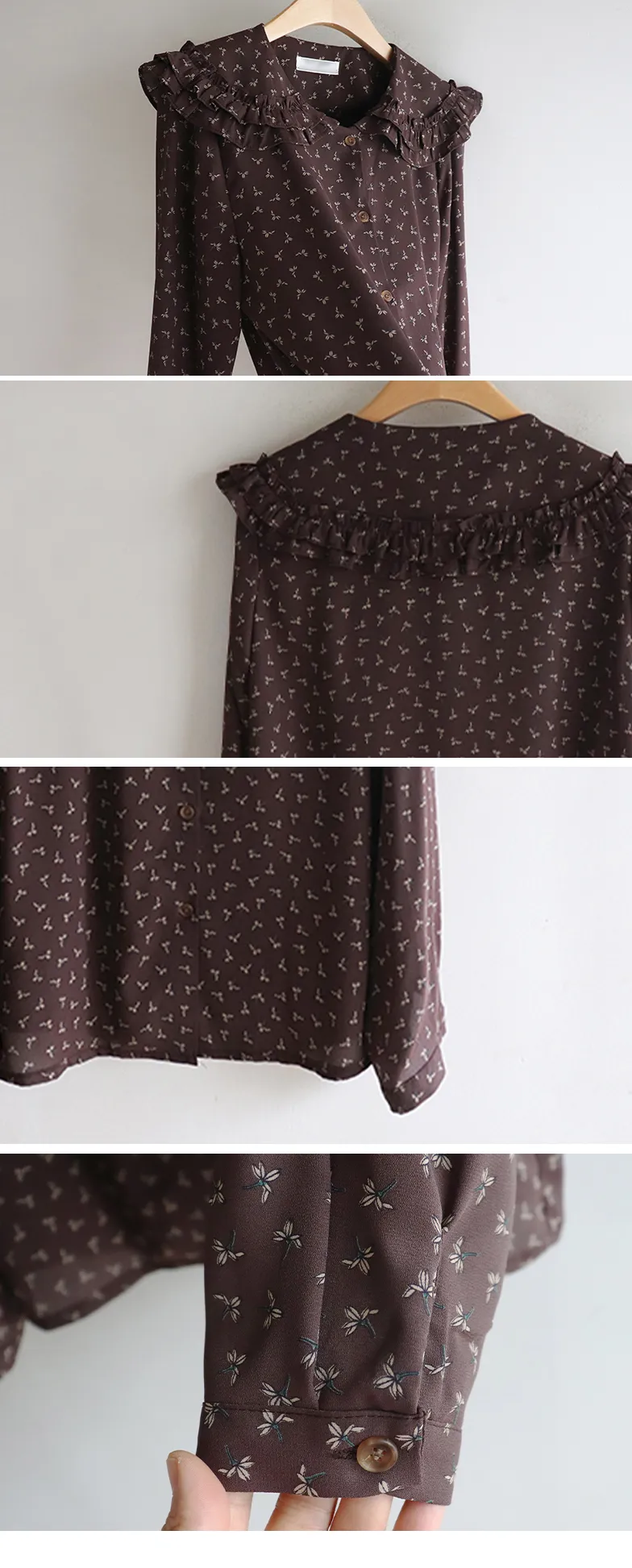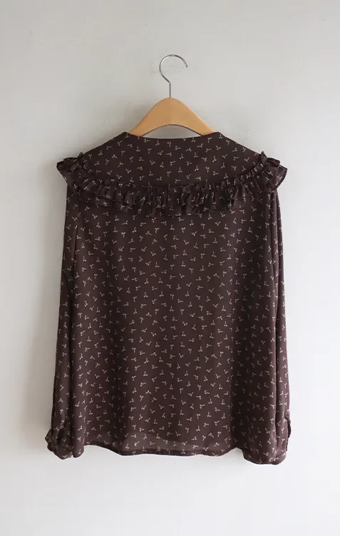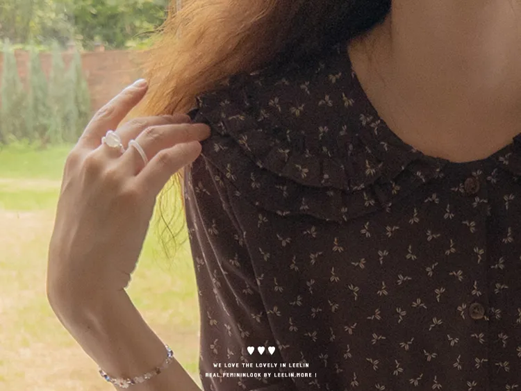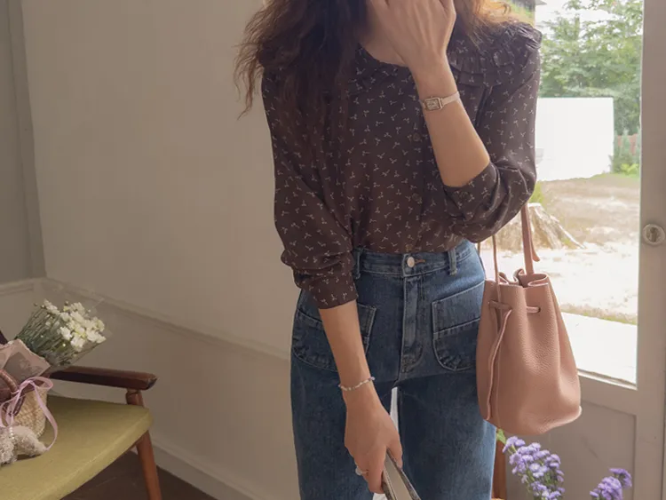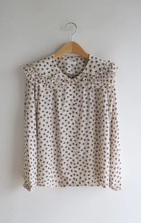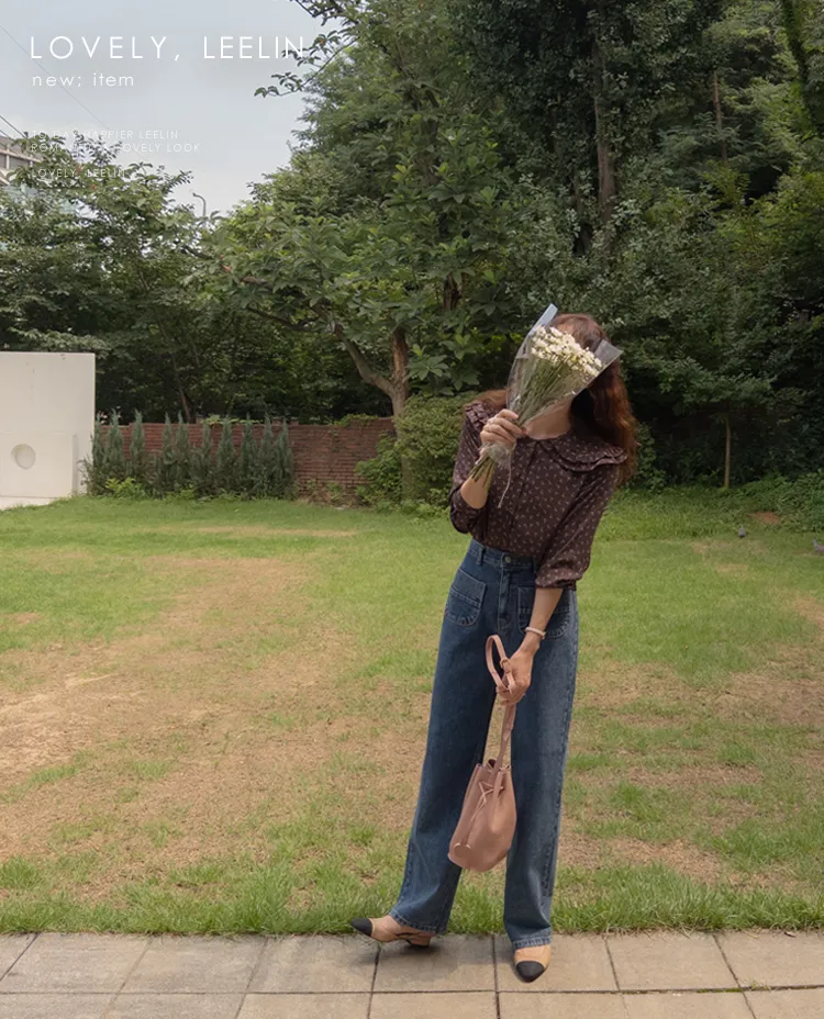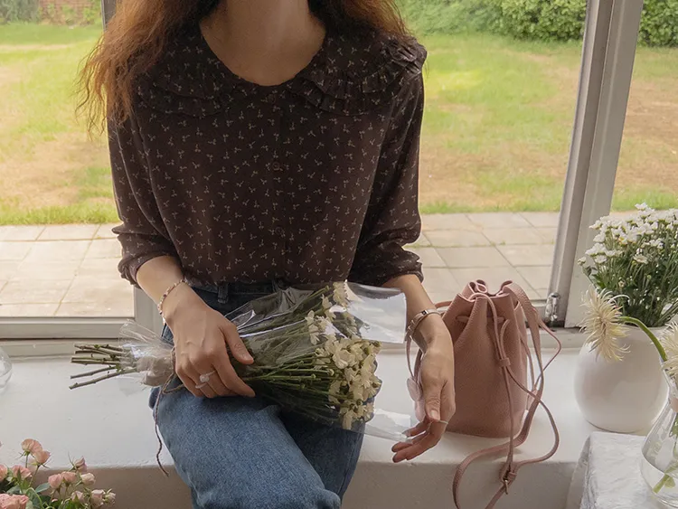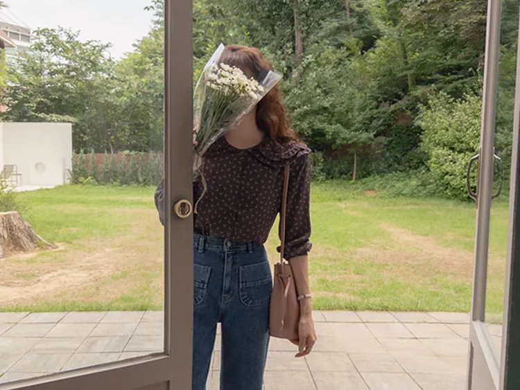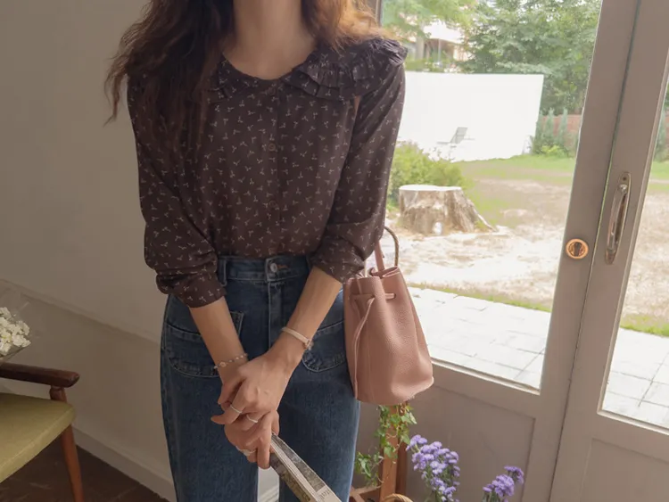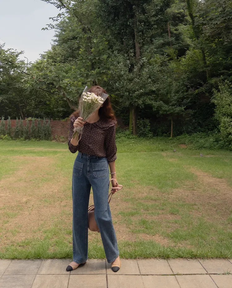 [雙褶邊領子細節充滿少女感][覆蓋肩線的披肩領設計,簡約的心情~][在季節之間也能穿搭的迷人花朵排扣上衣~可用性UP! ]