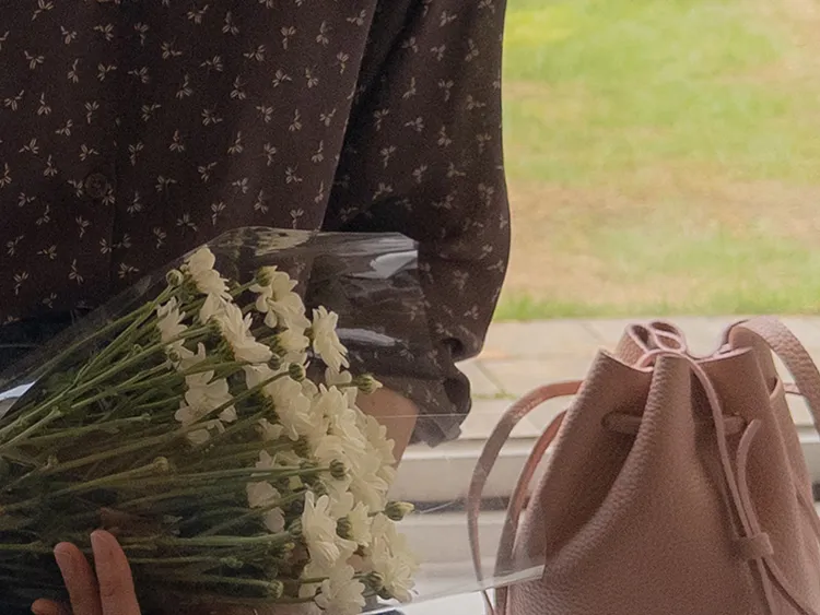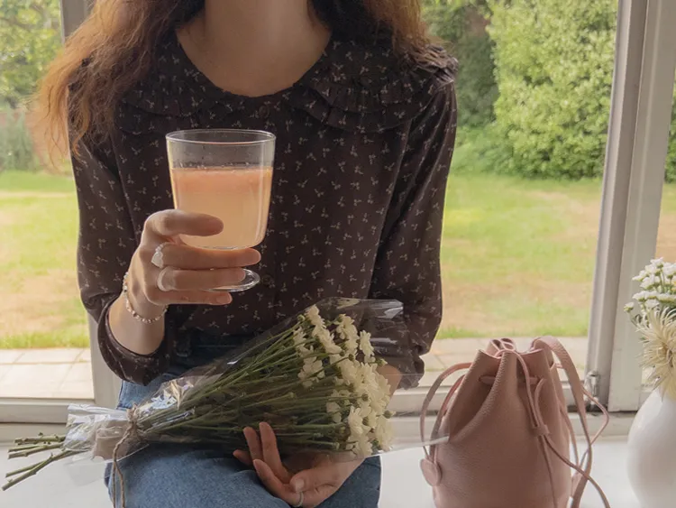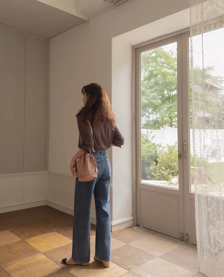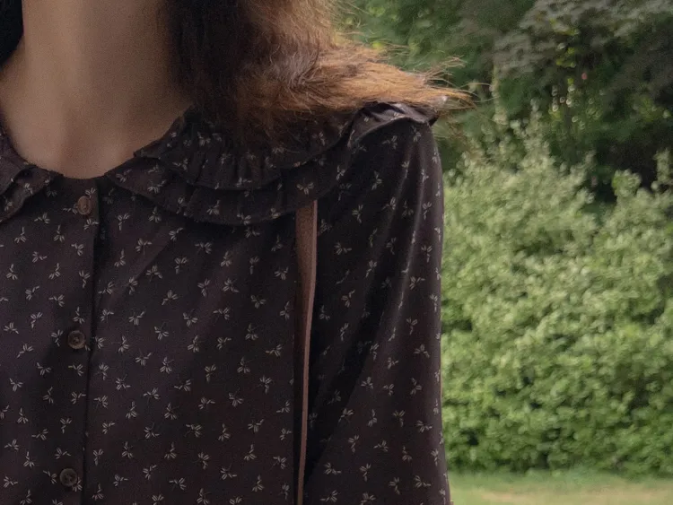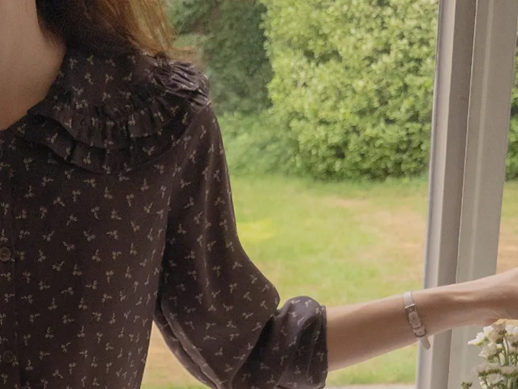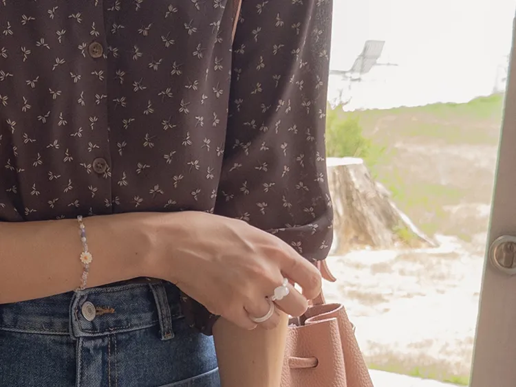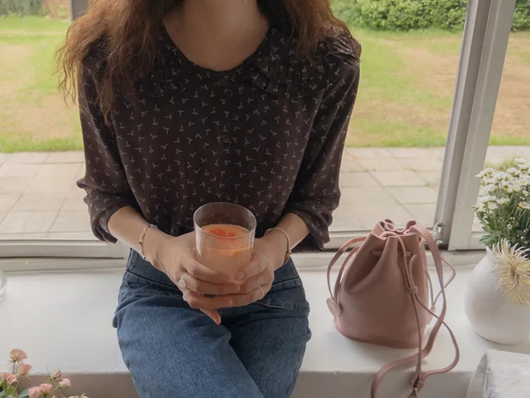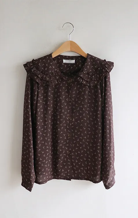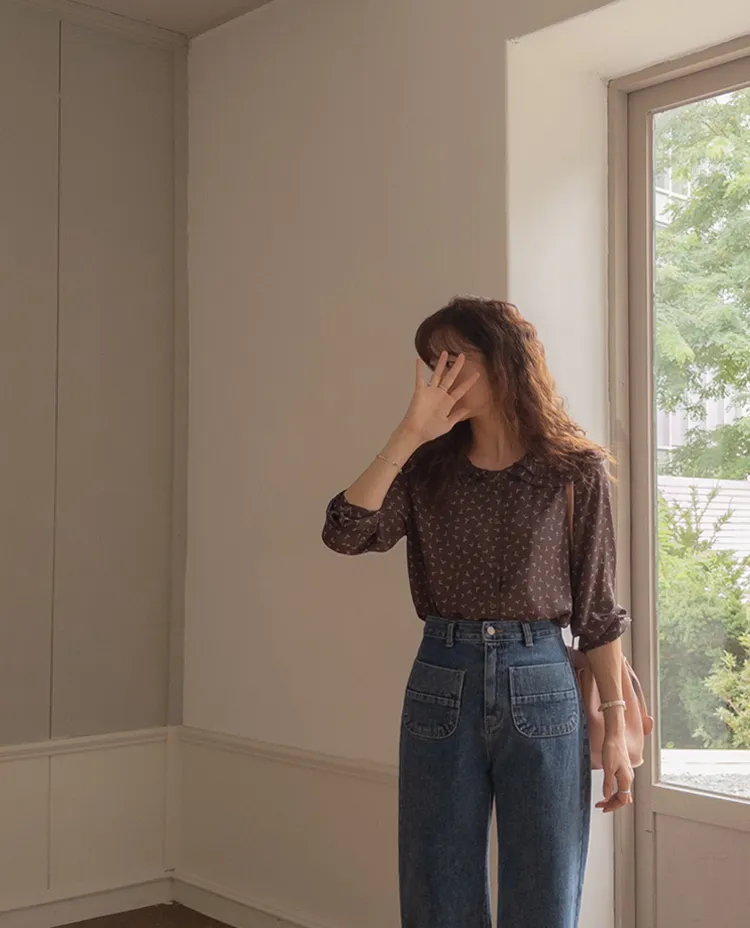[雙褶邊領子細節充滿少女感][覆蓋肩線的披肩領設計,簡約的心情~][在季節之間也能穿搭的迷人花朵排扣上衣~可用性UP! ]
