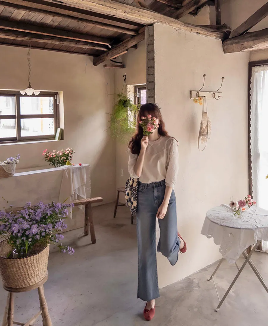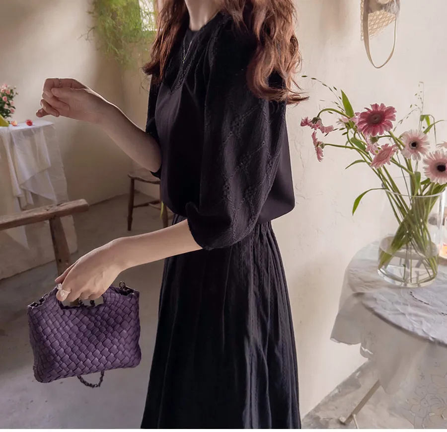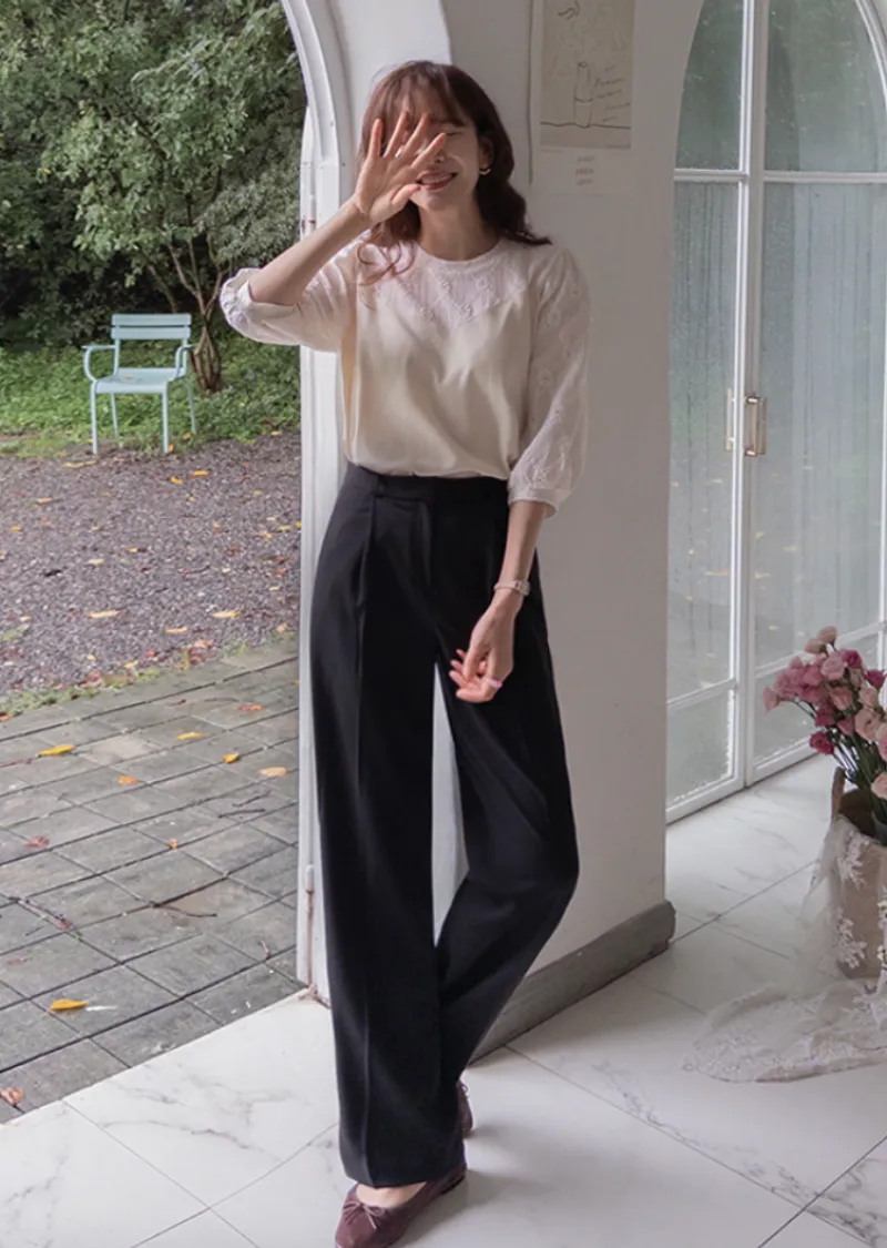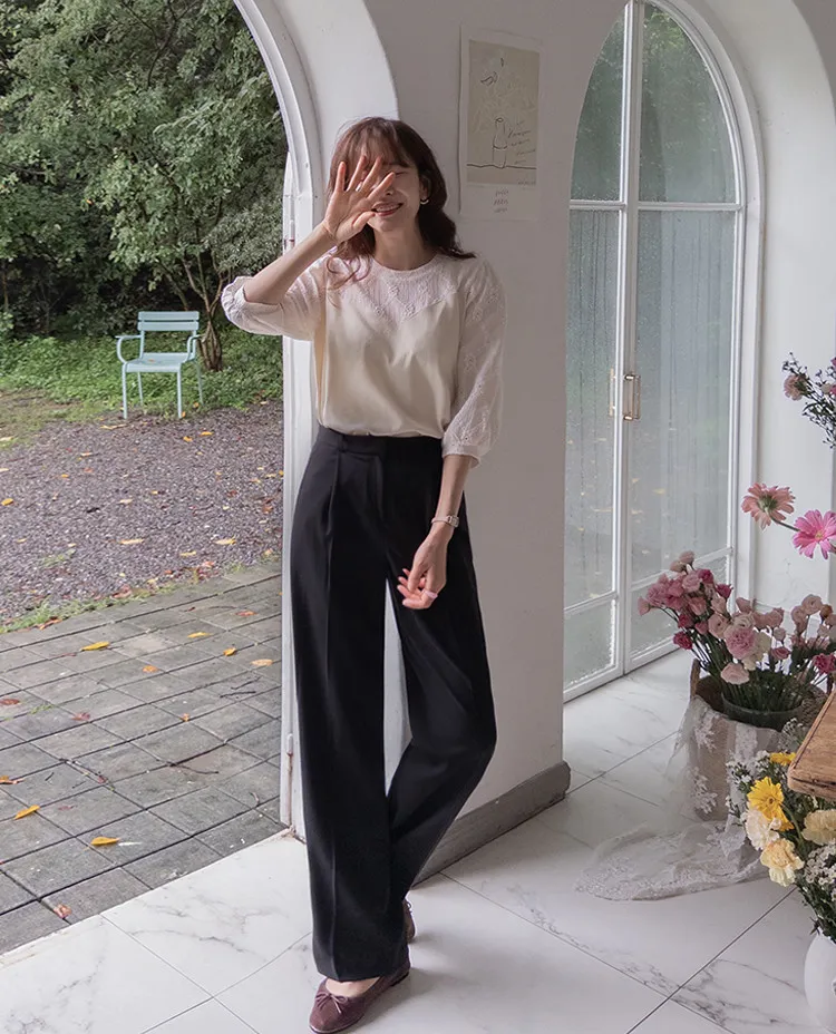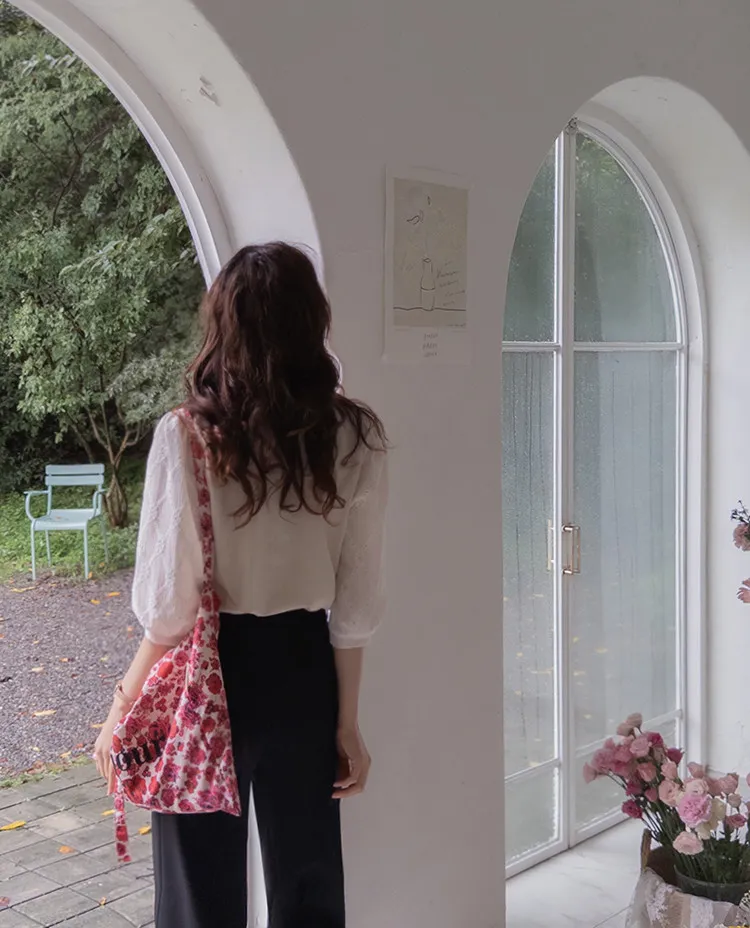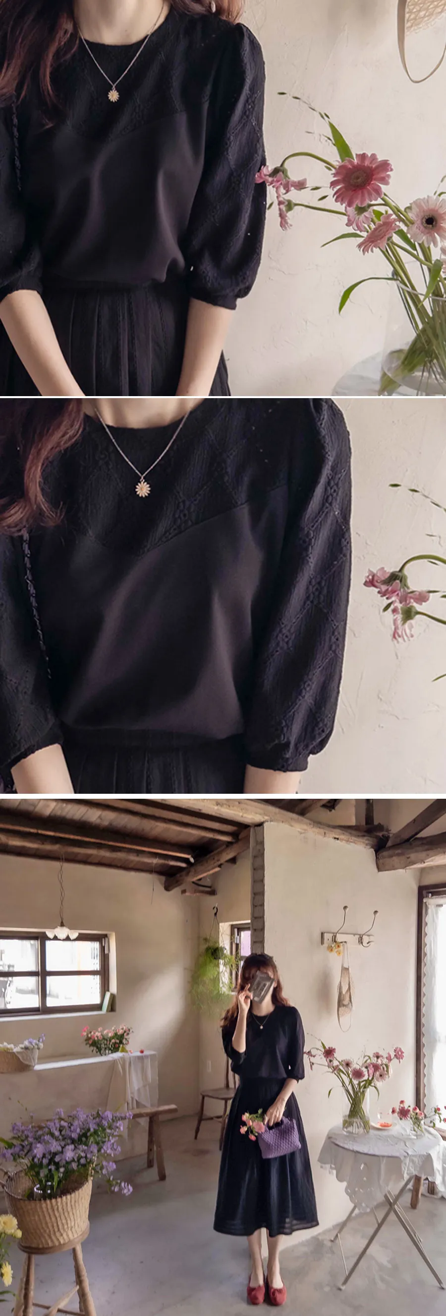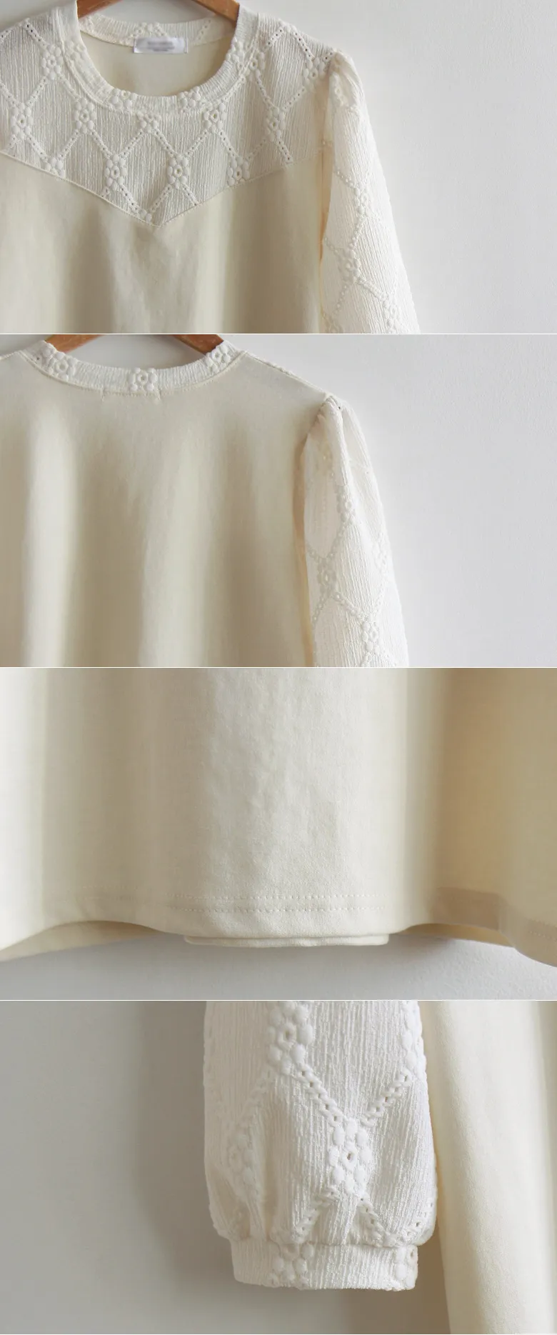 跨季][布料彈性強][袖子可愛的設計,立體花朵刺繡和蕾絲配色][鏤空也很漂亮][蕾絲袖子和衣身都有彈性][肩部剪裁設計]