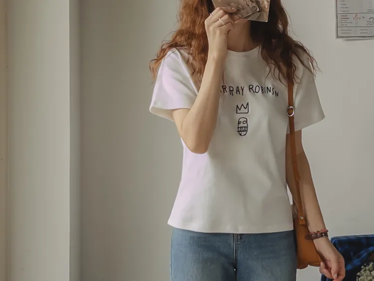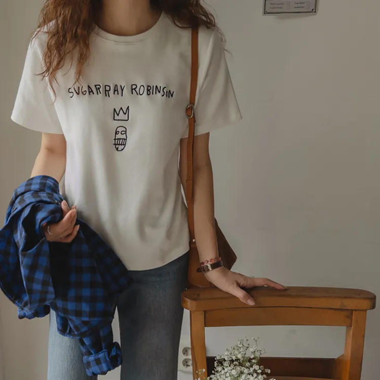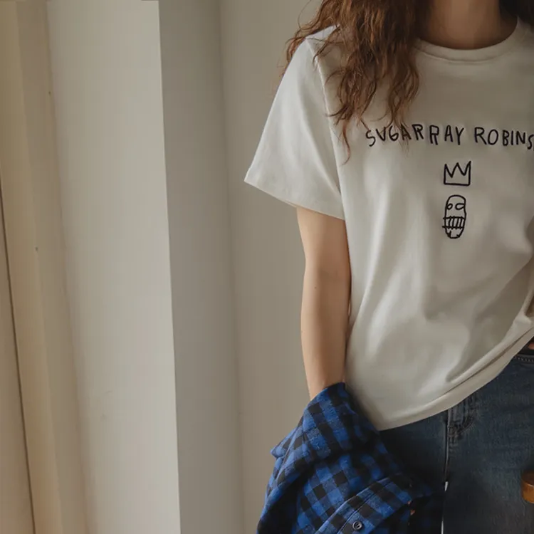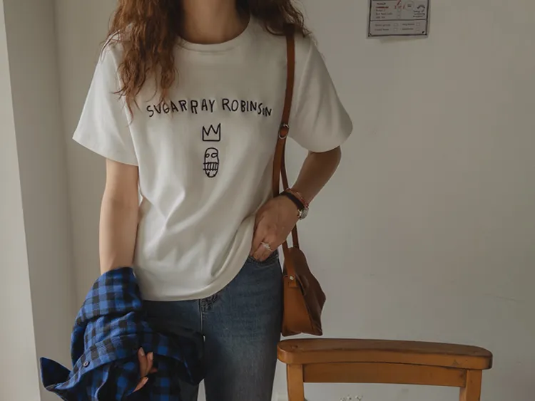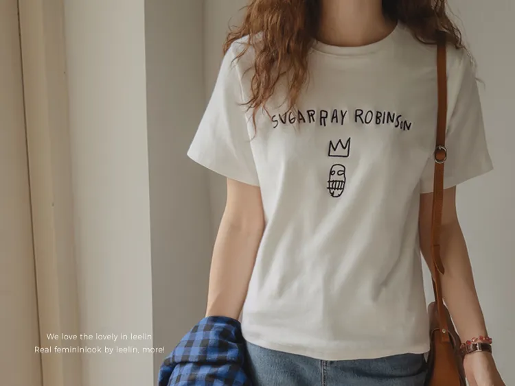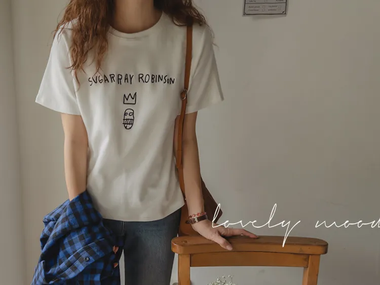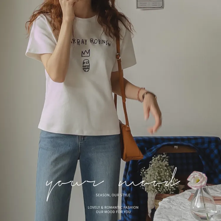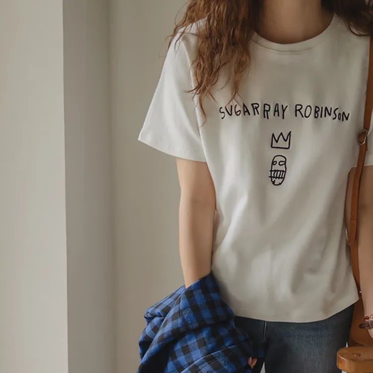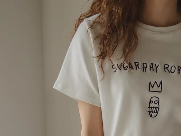 塗鴉風皇冠字母刺繡柔軟短袖上衣