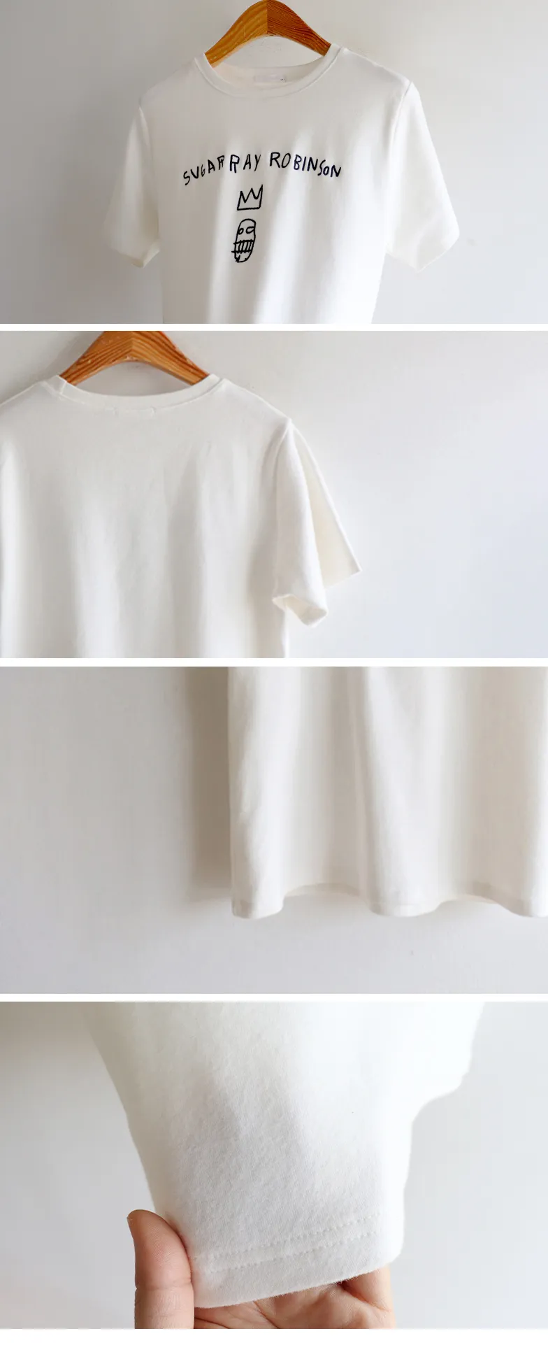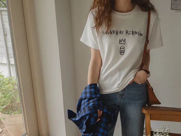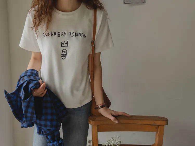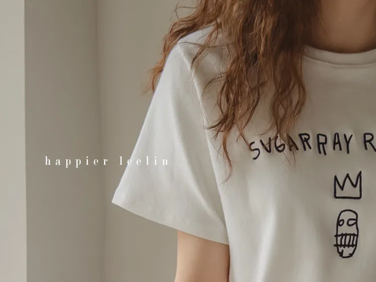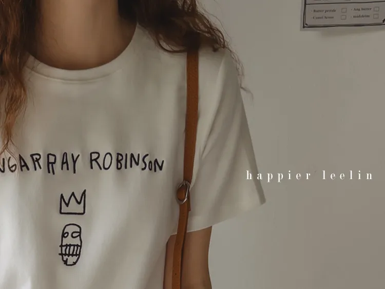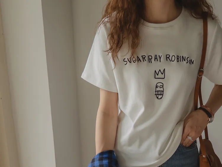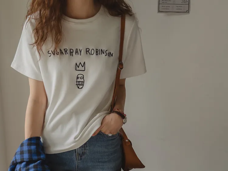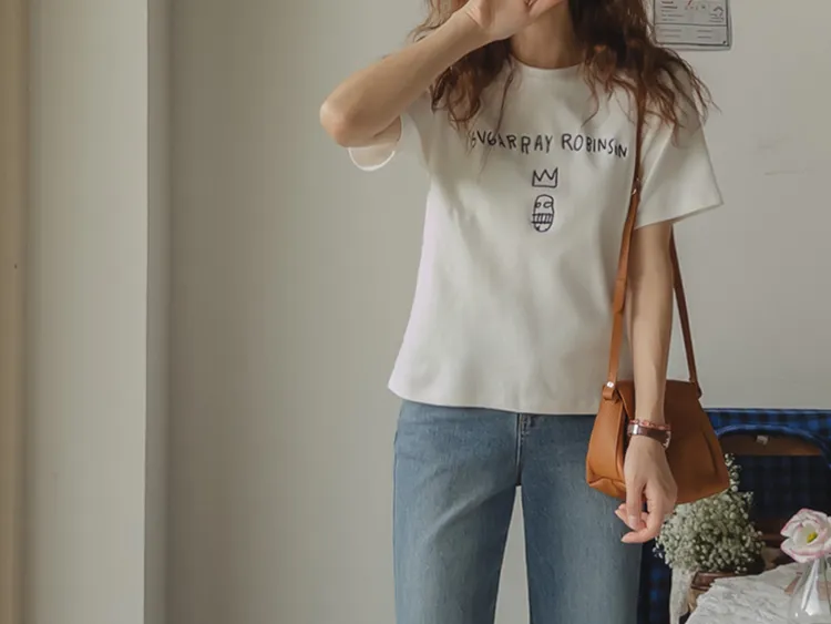 塗鴉風皇冠字母刺繡柔軟短袖上衣