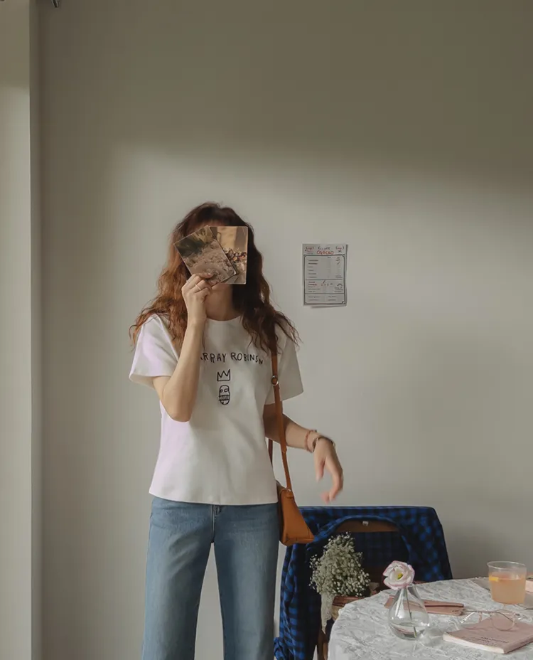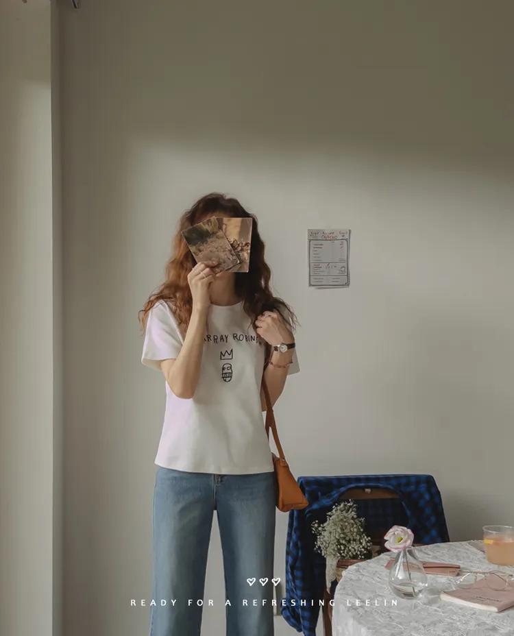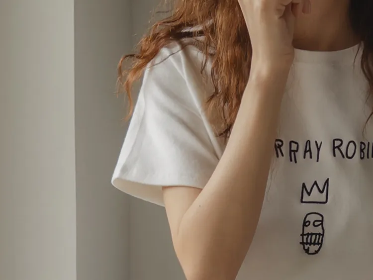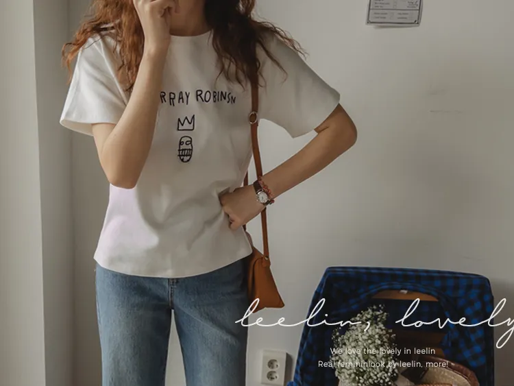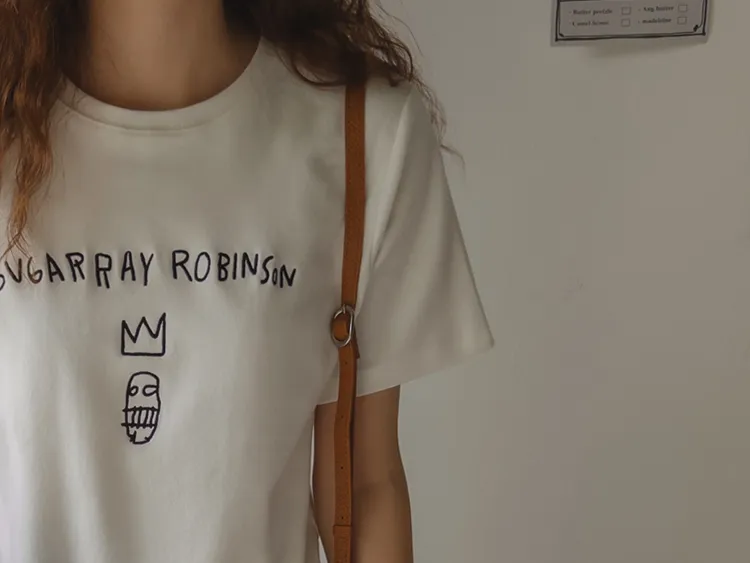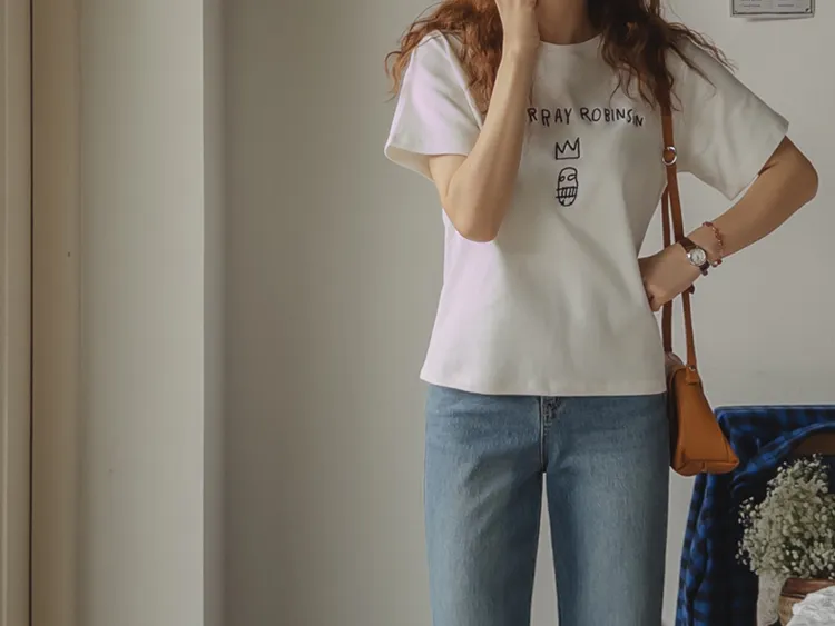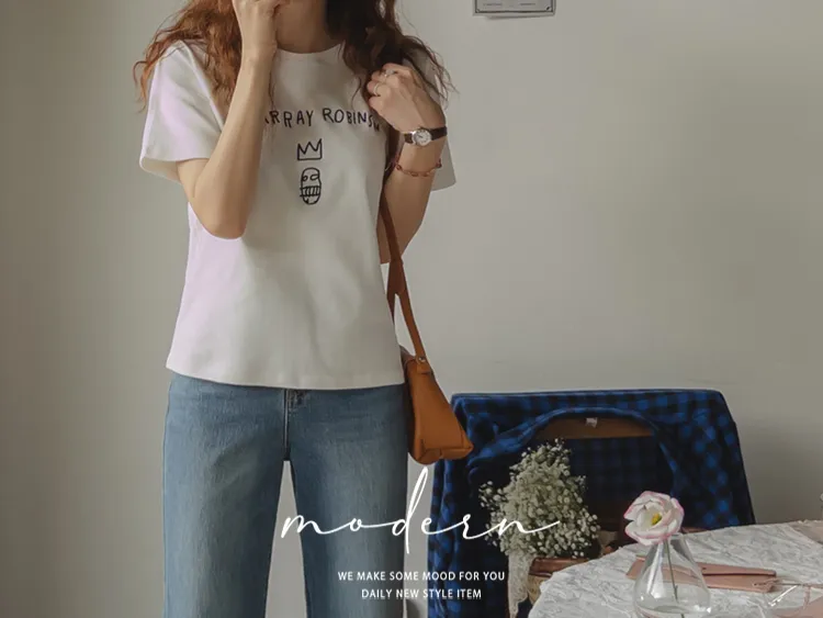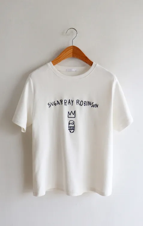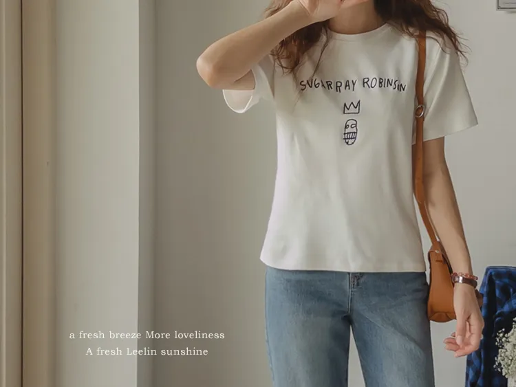 塗鴉風皇冠字母刺繡柔軟短袖上衣