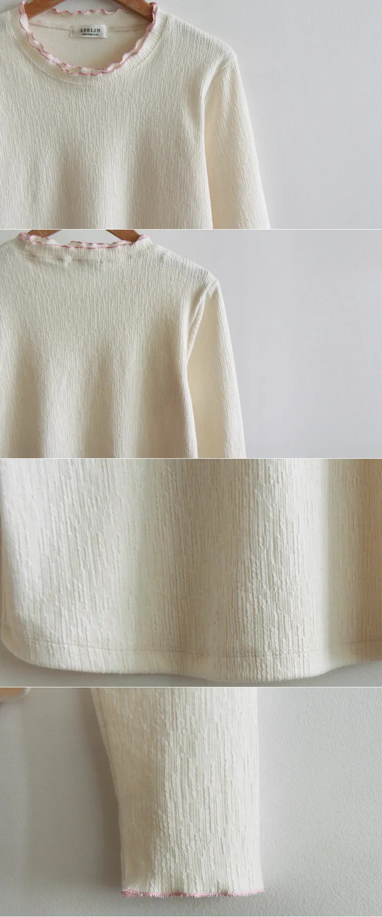 可愛點綴配色雙波浪褶邊領彈性上衣