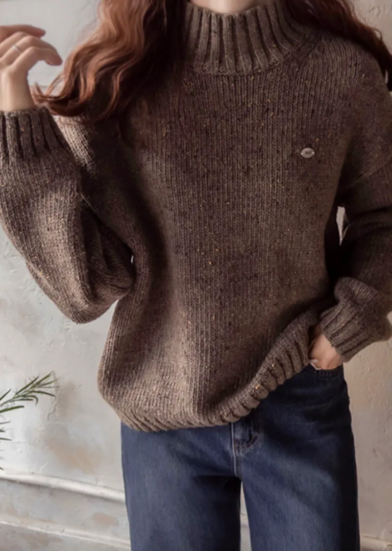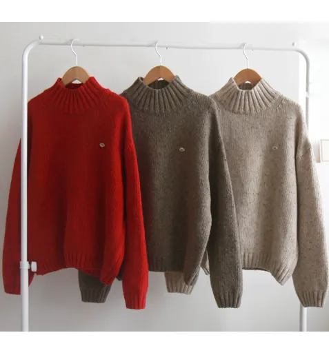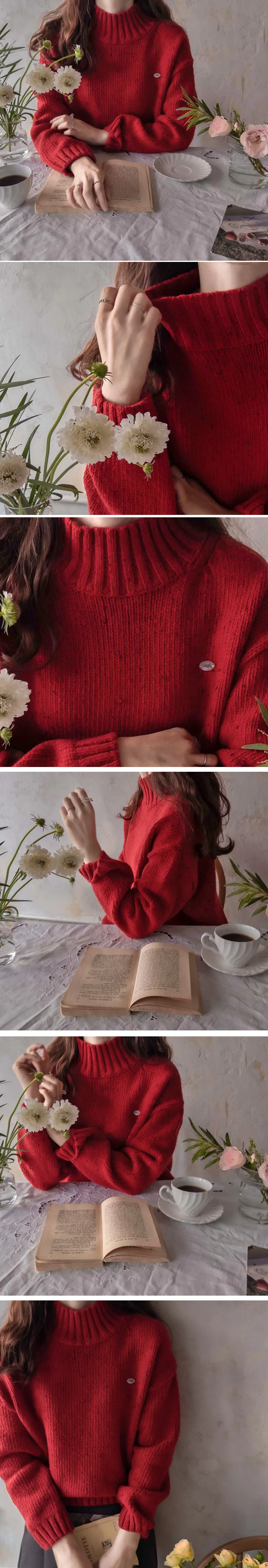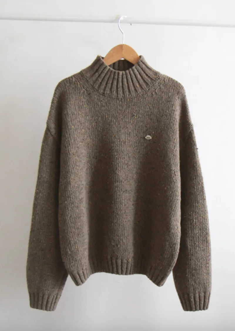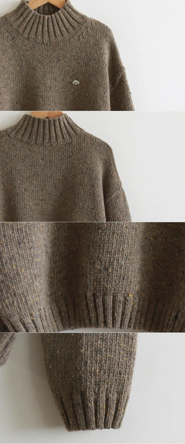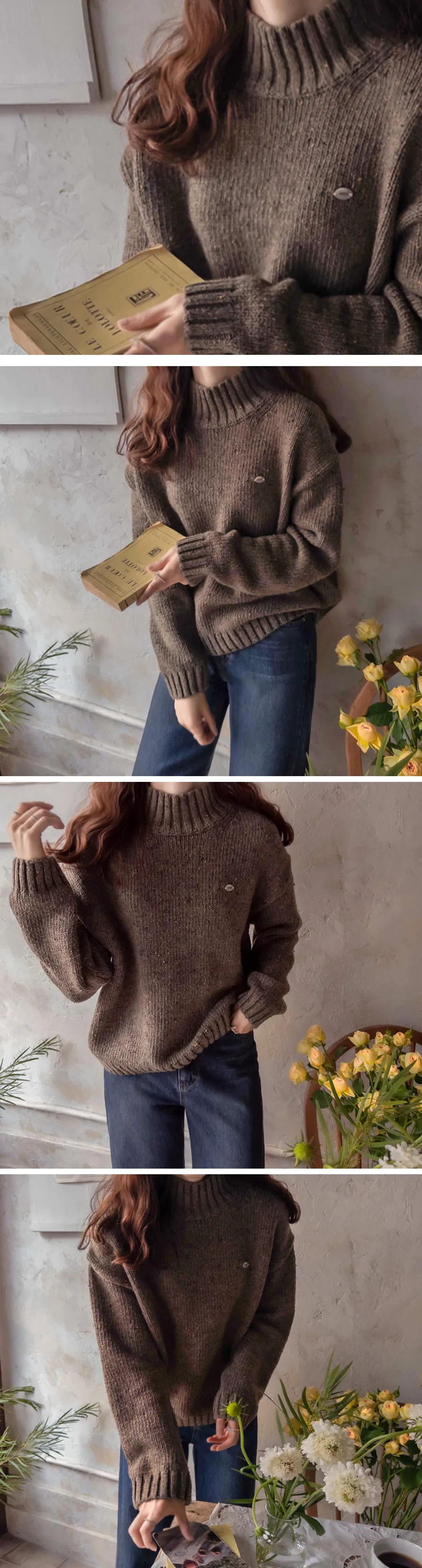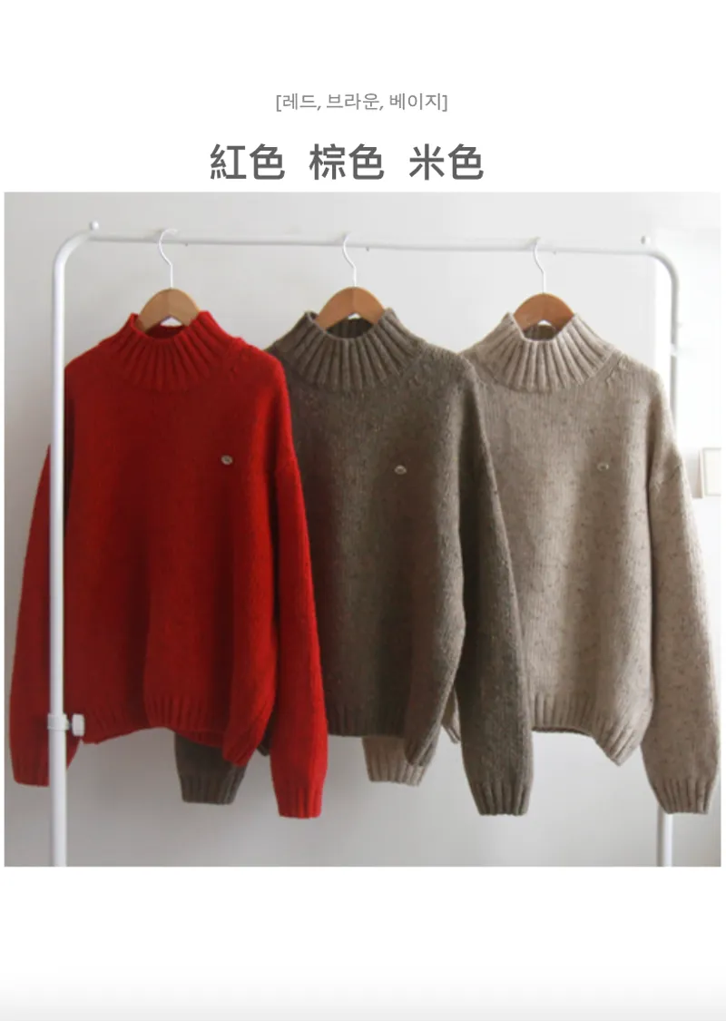 混色溫暖厚實點綴裝飾針織半高領上衣
