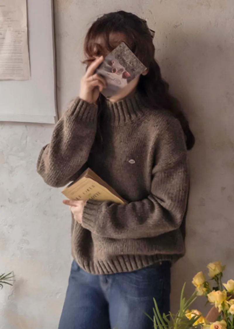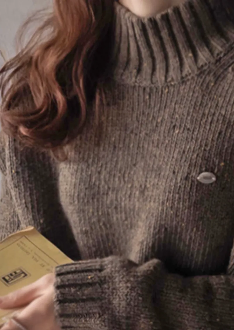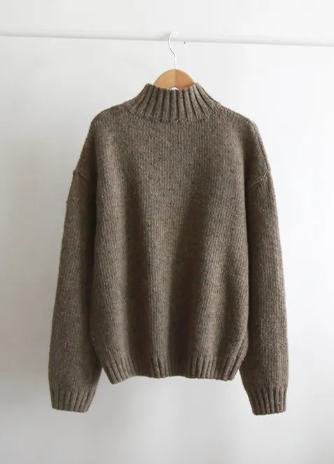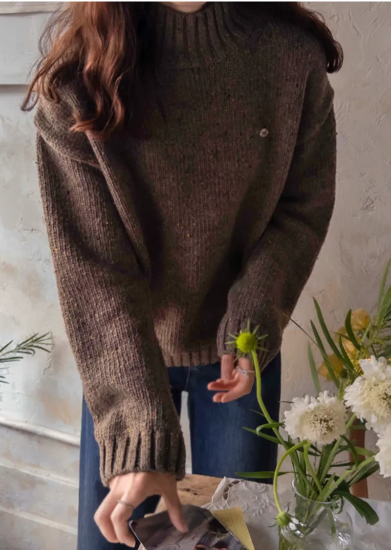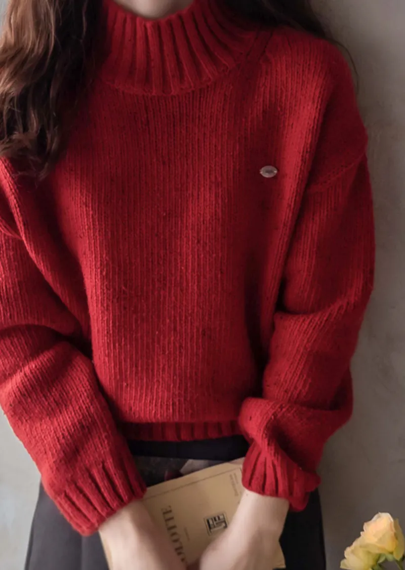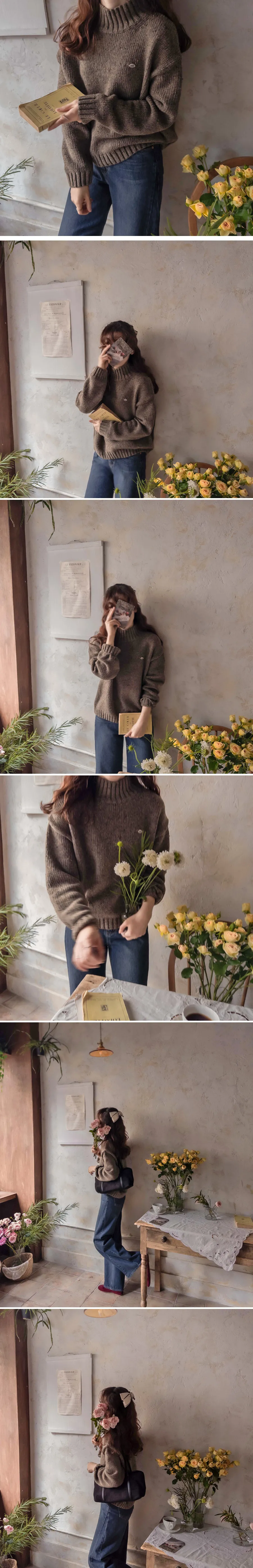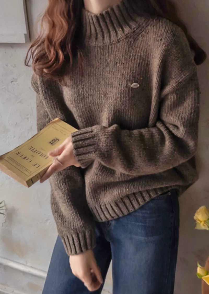 混色溫暖厚實點綴裝飾針織半高領上衣