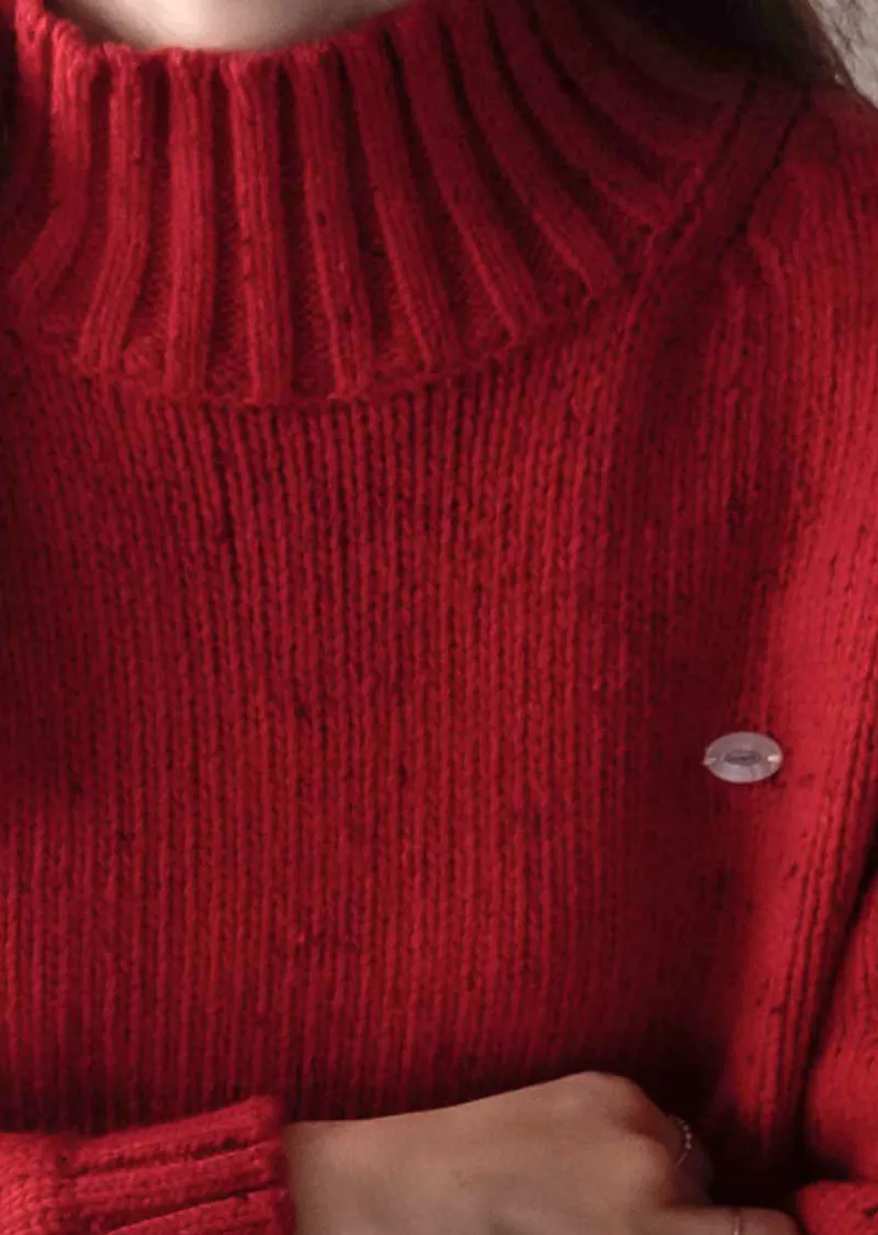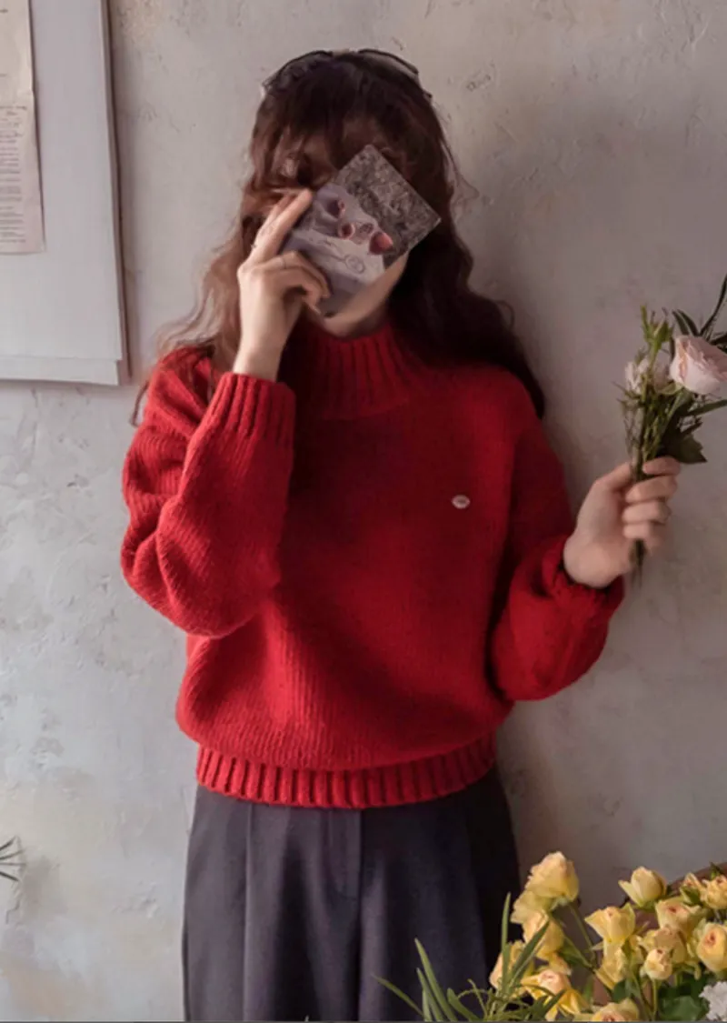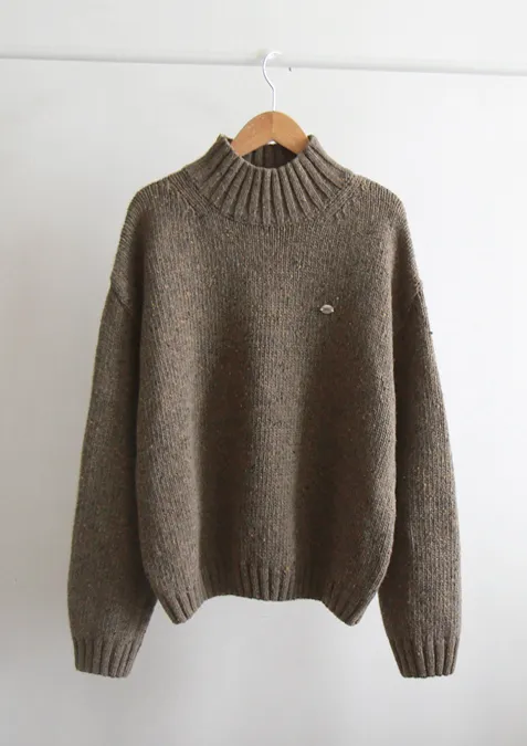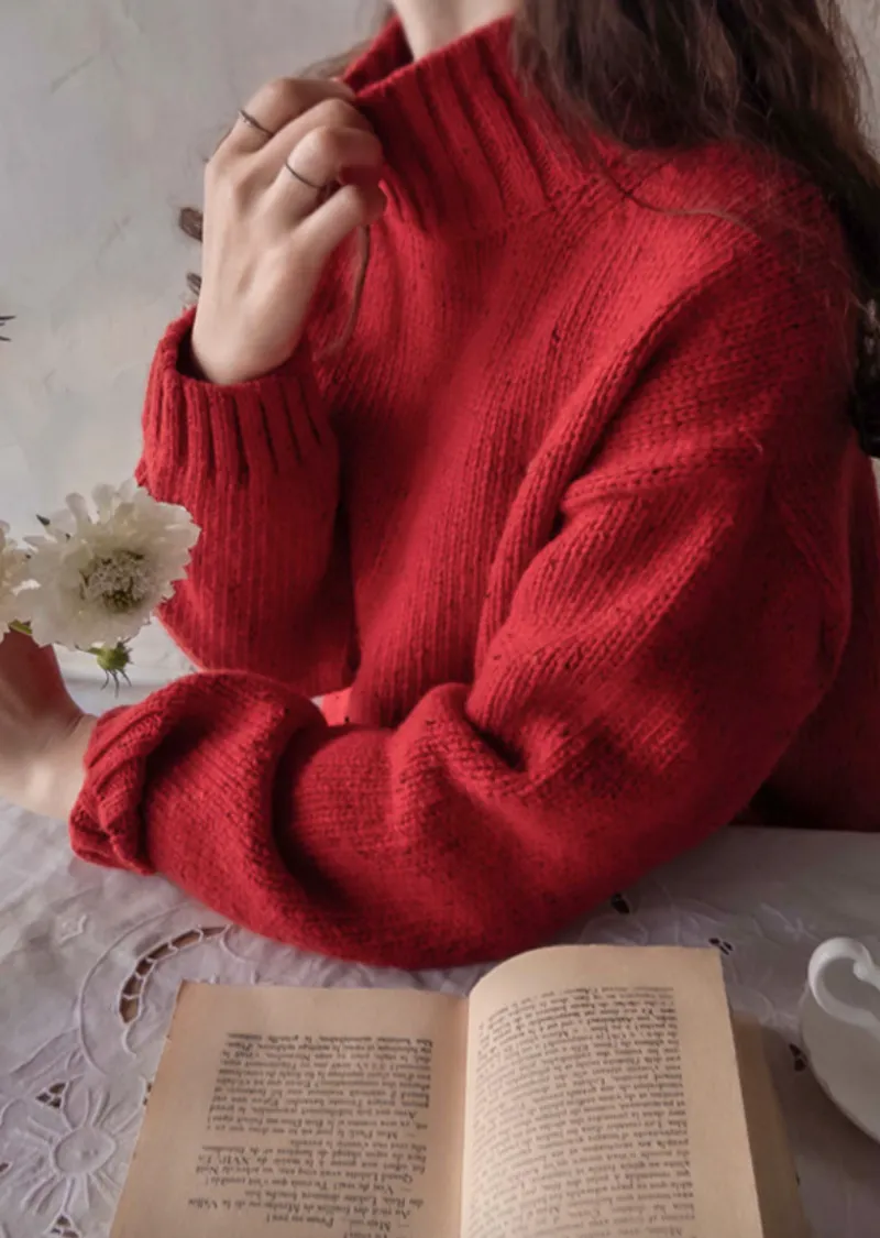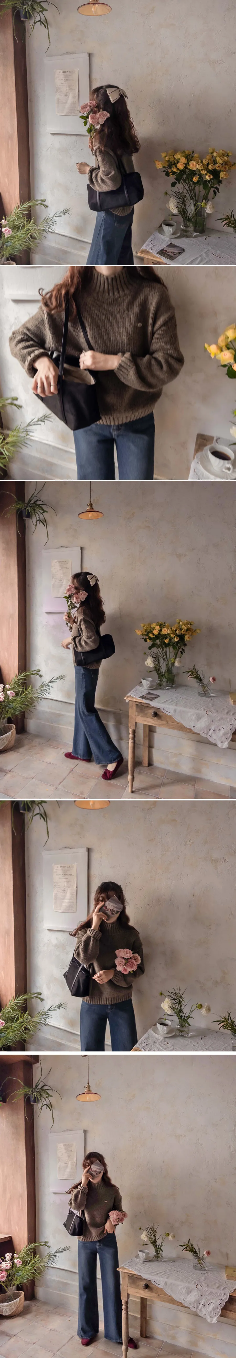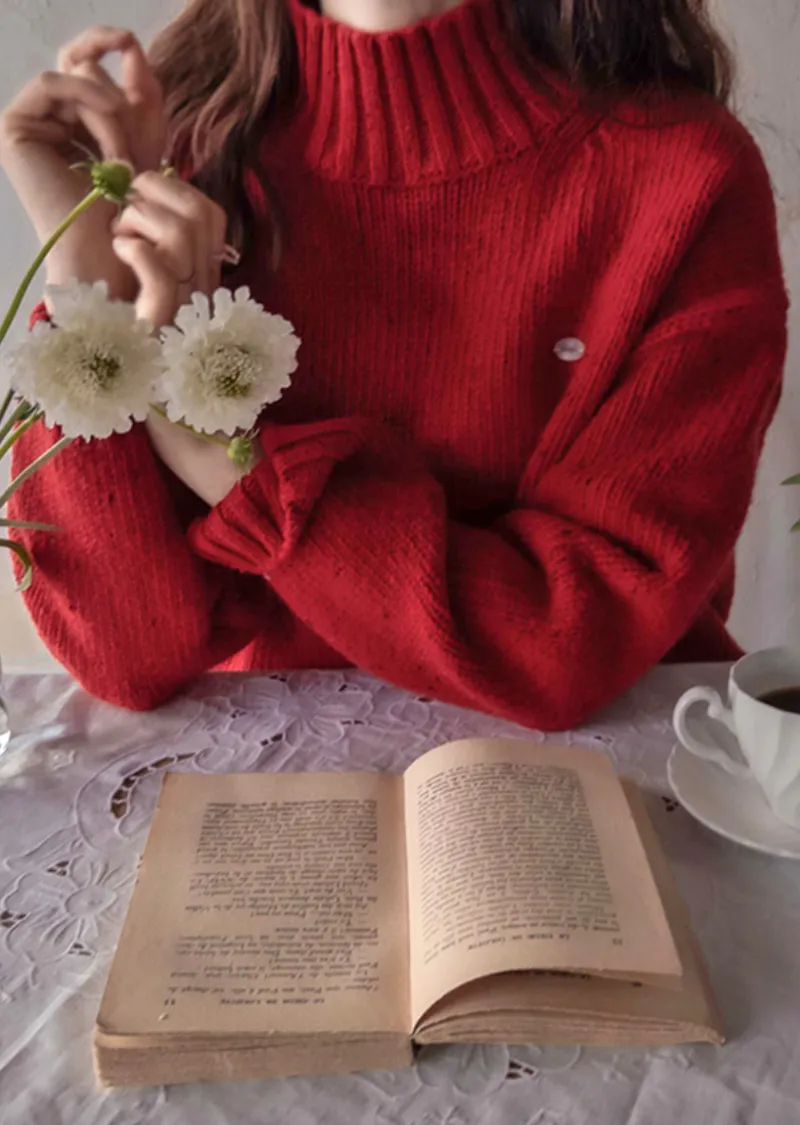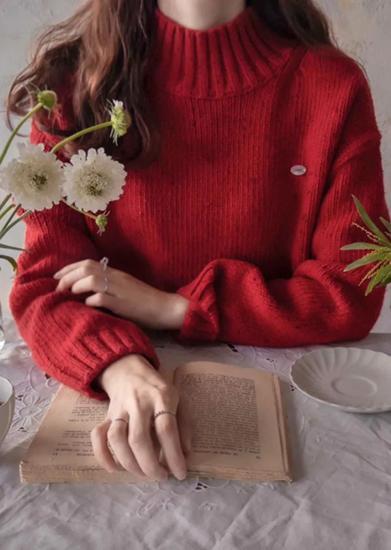 混色溫暖厚實點綴裝飾針織半高領上衣