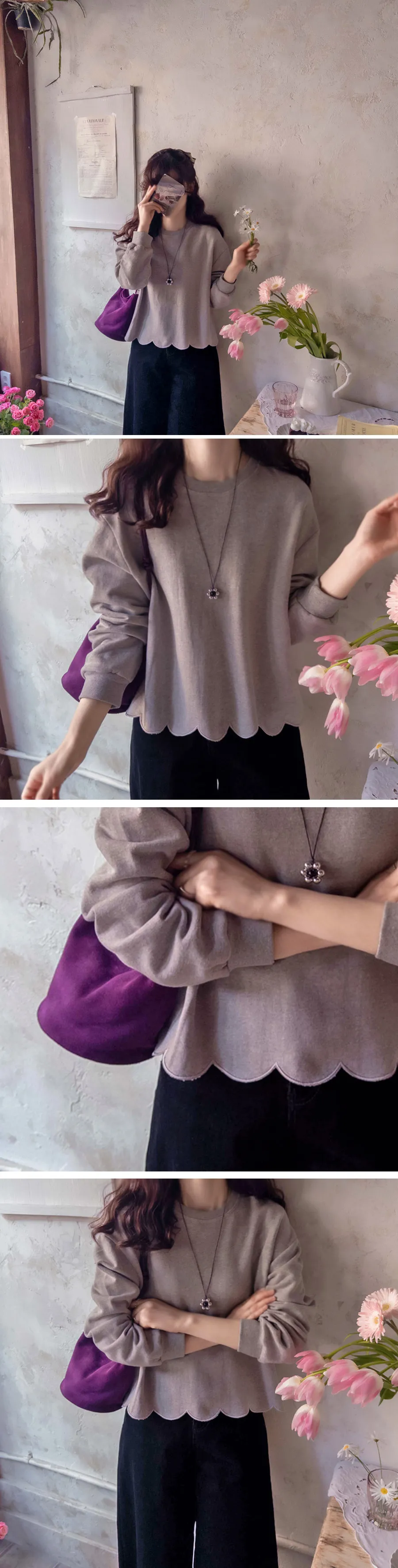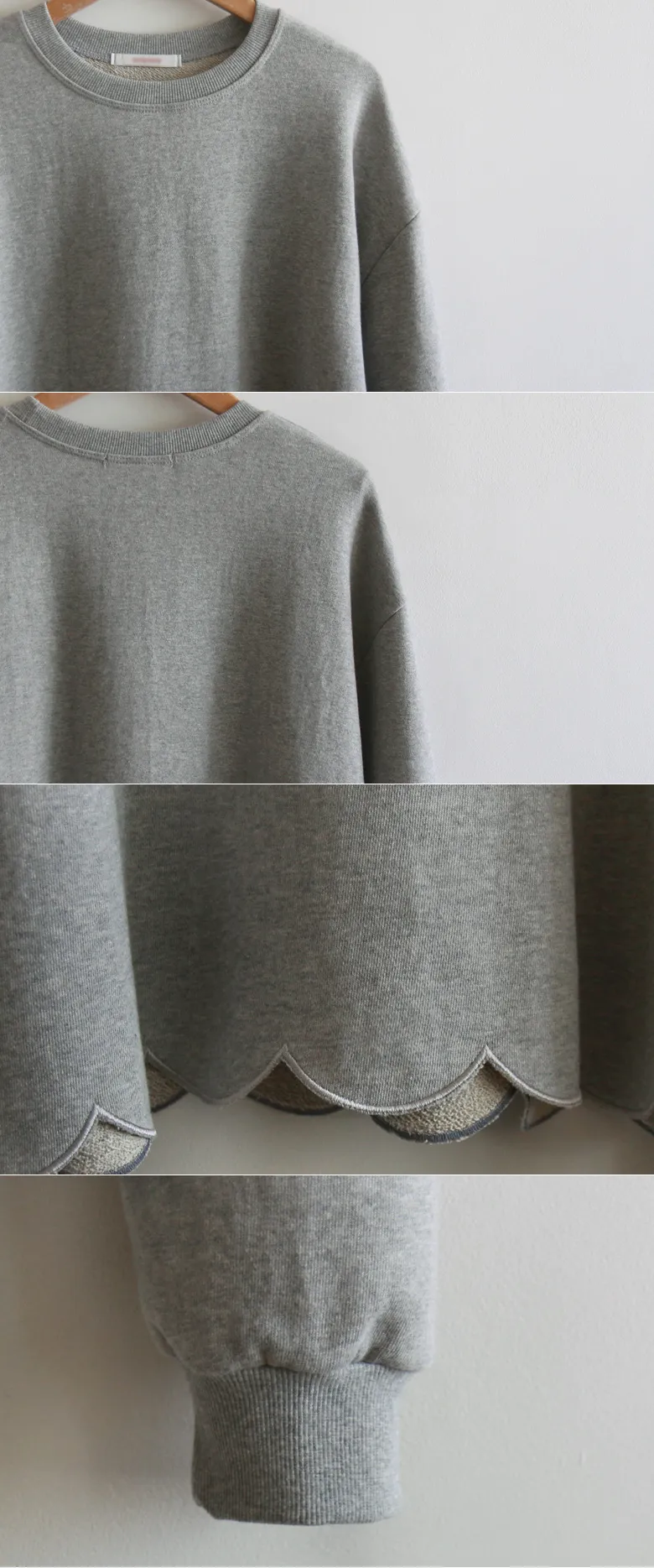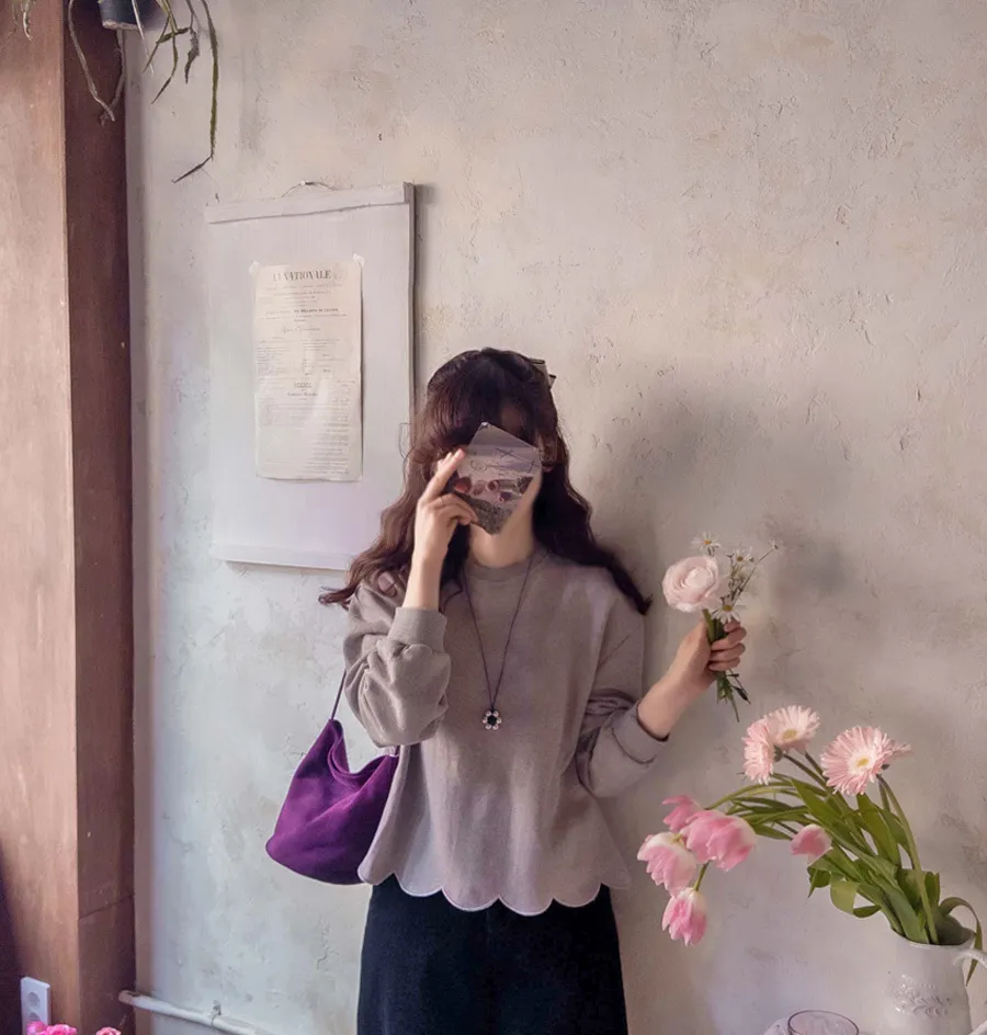 日常穿搭可愛波浪下擺刺繡邊上衣