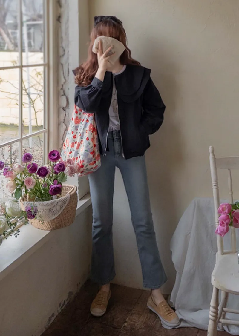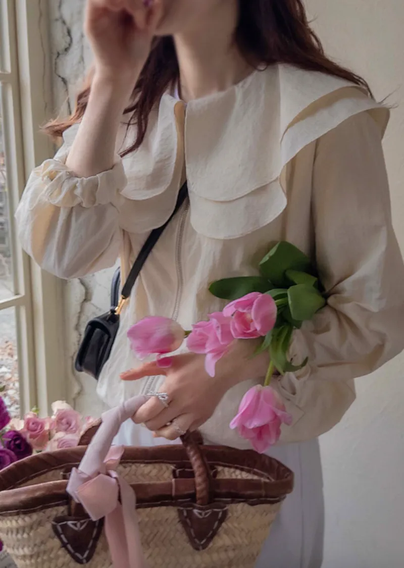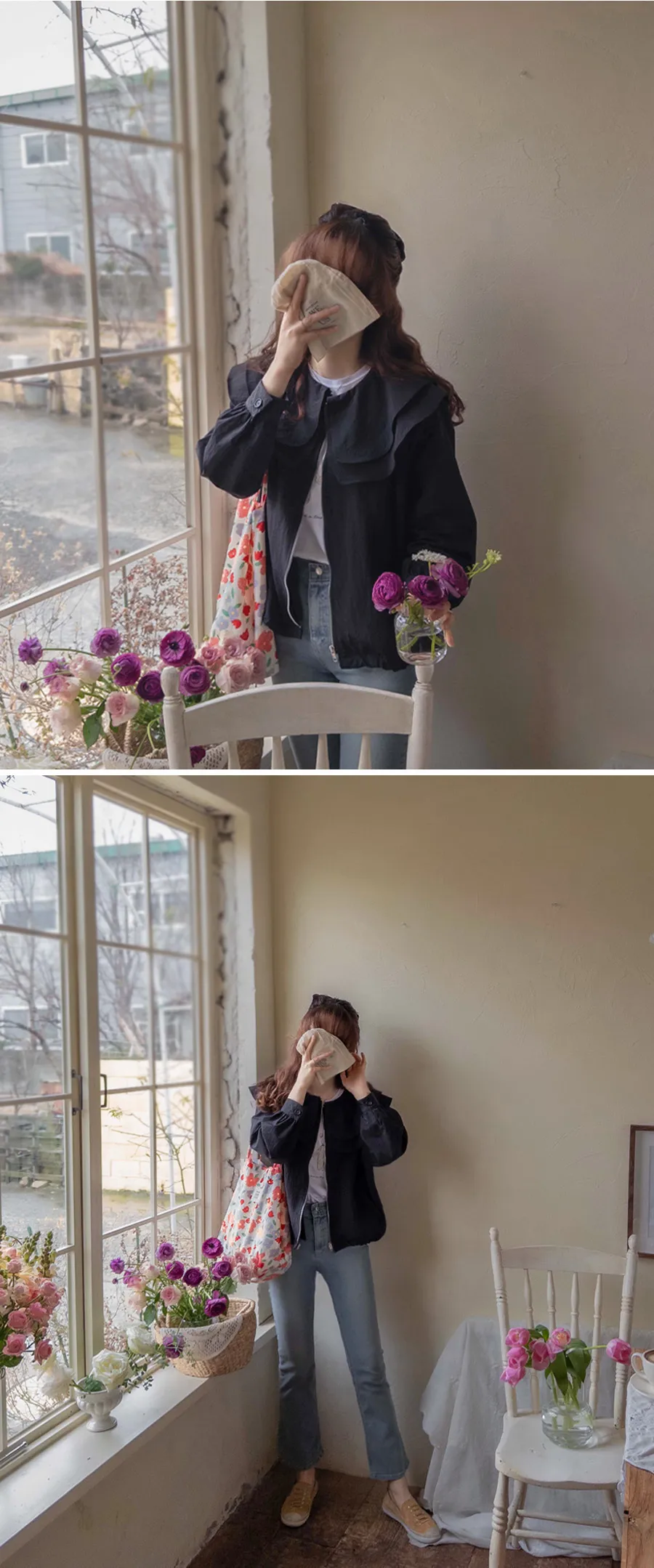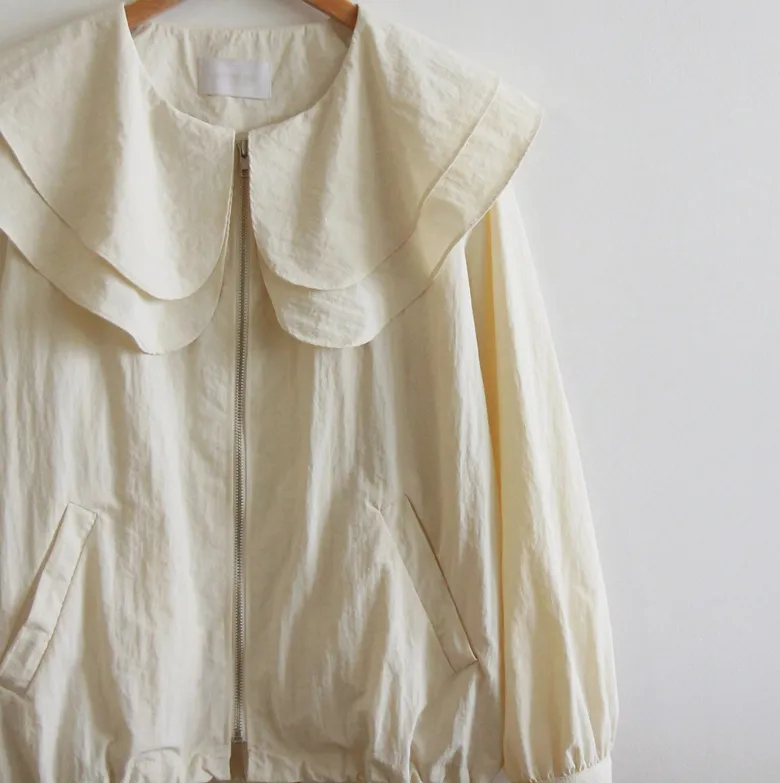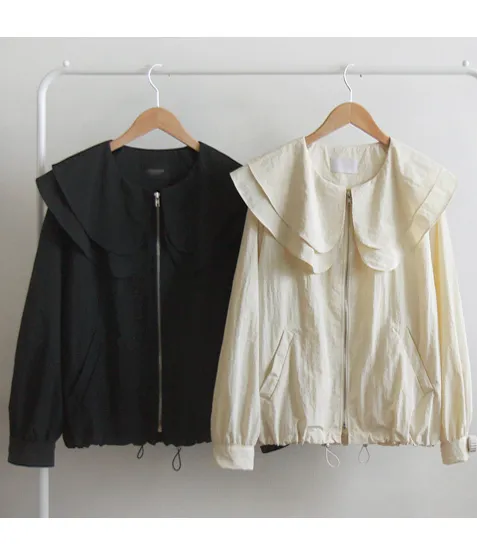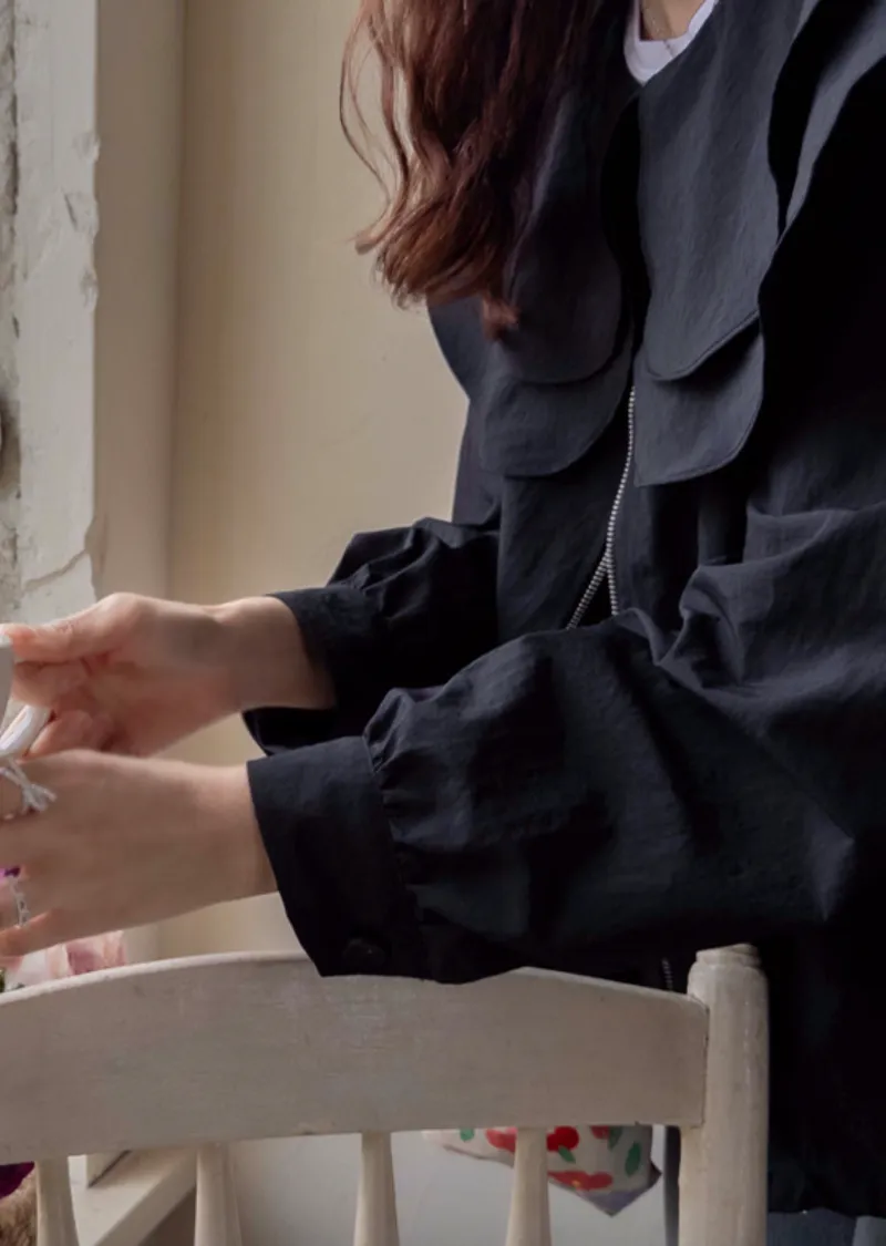 [下擺可以用帶子調整,打造可愛的穿著效果] [輕盈的春季外套] [時尚剪裁和舒適穿著的外套] [圓潤的線條營造出可愛優雅的感覺]