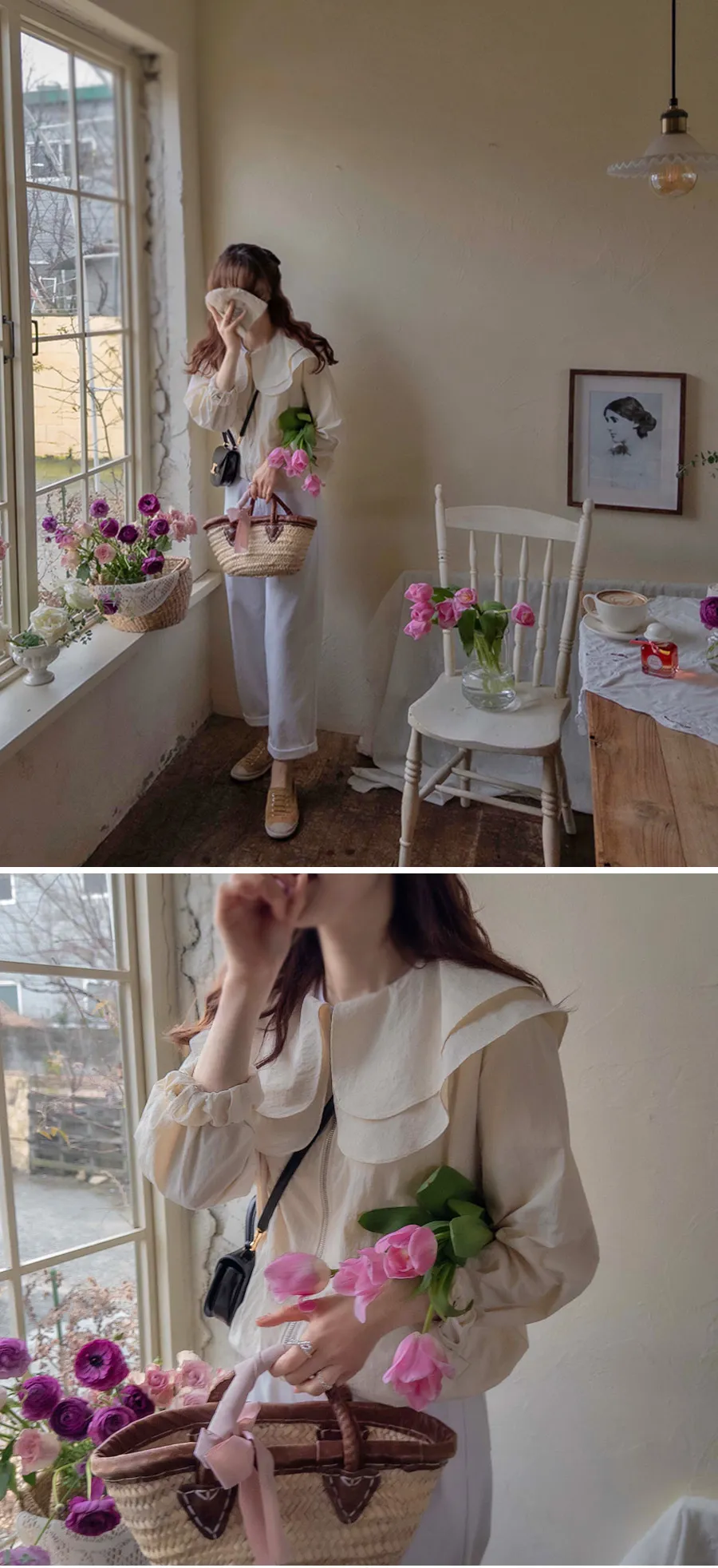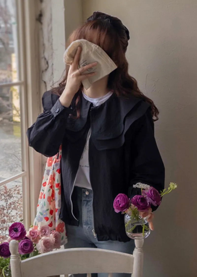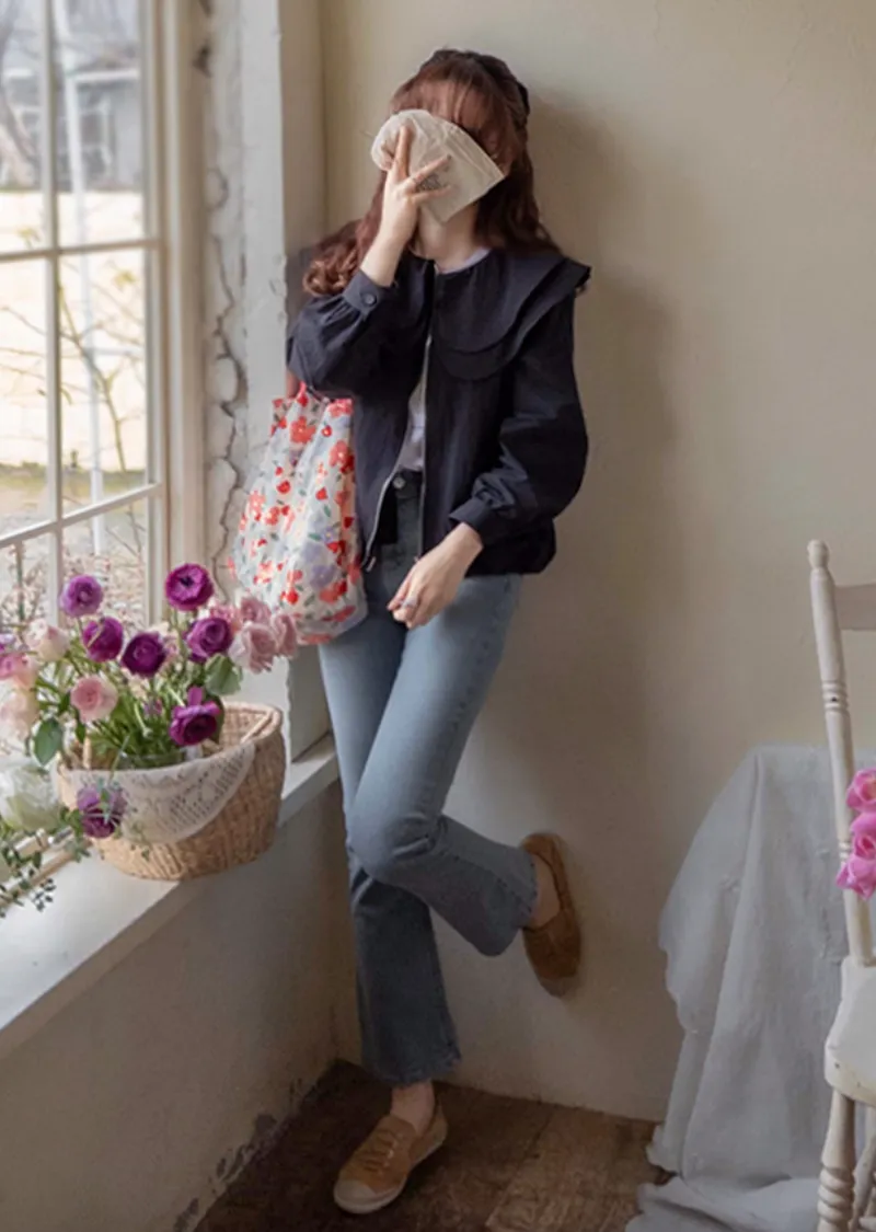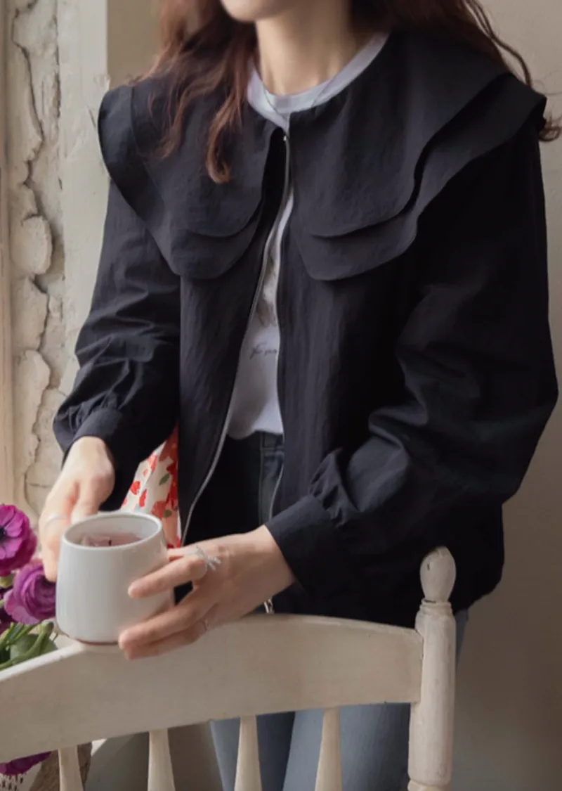 [下擺可以用帶子調整,打造可愛的穿著效果] [輕盈的春季外套] [時尚剪裁和舒適穿著的外套] [圓潤的線條營造出可愛優雅的感覺]