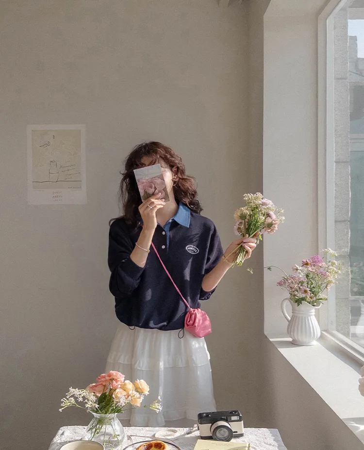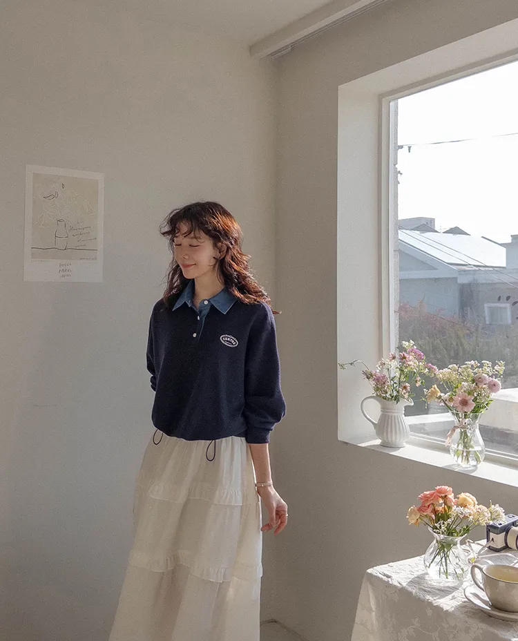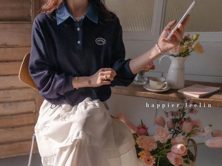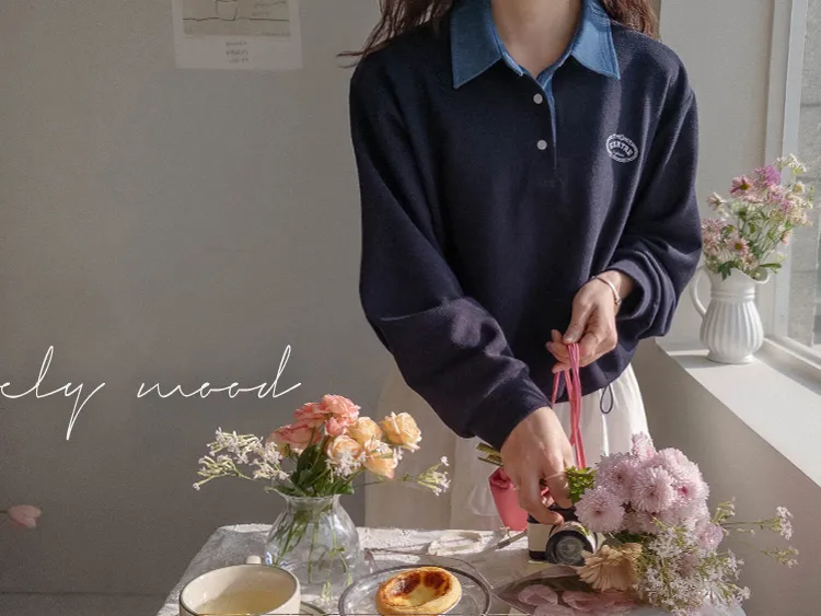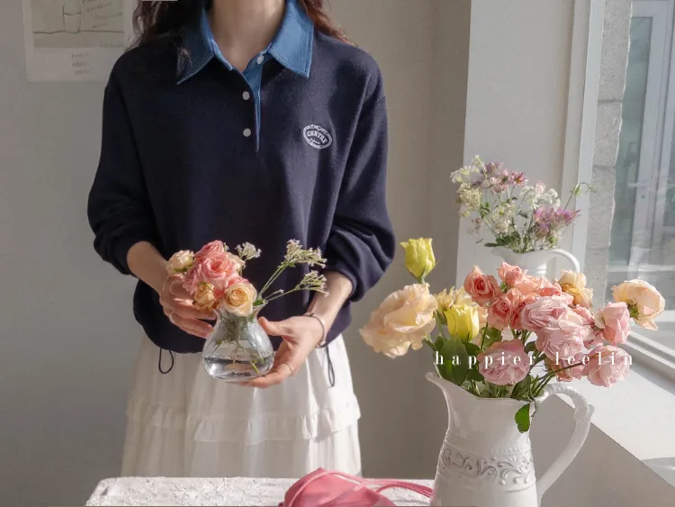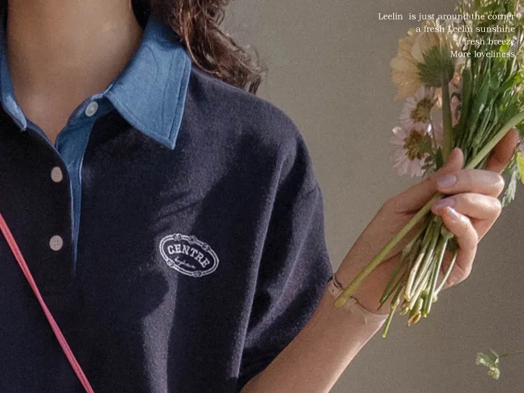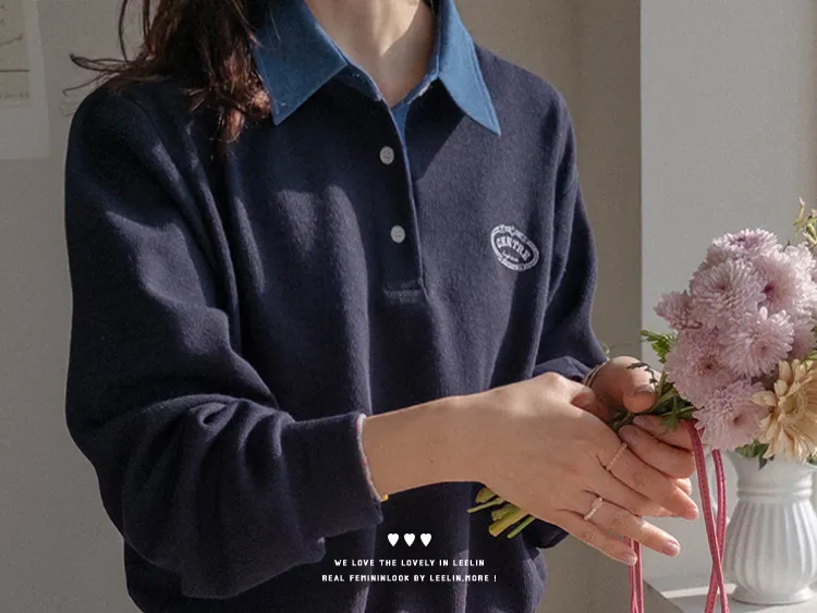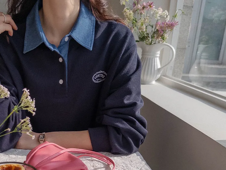 [配色領口的獨特上衣♥] [下擺設計不同] [舒適柔軟的材質] [奢華刺繡點綴]