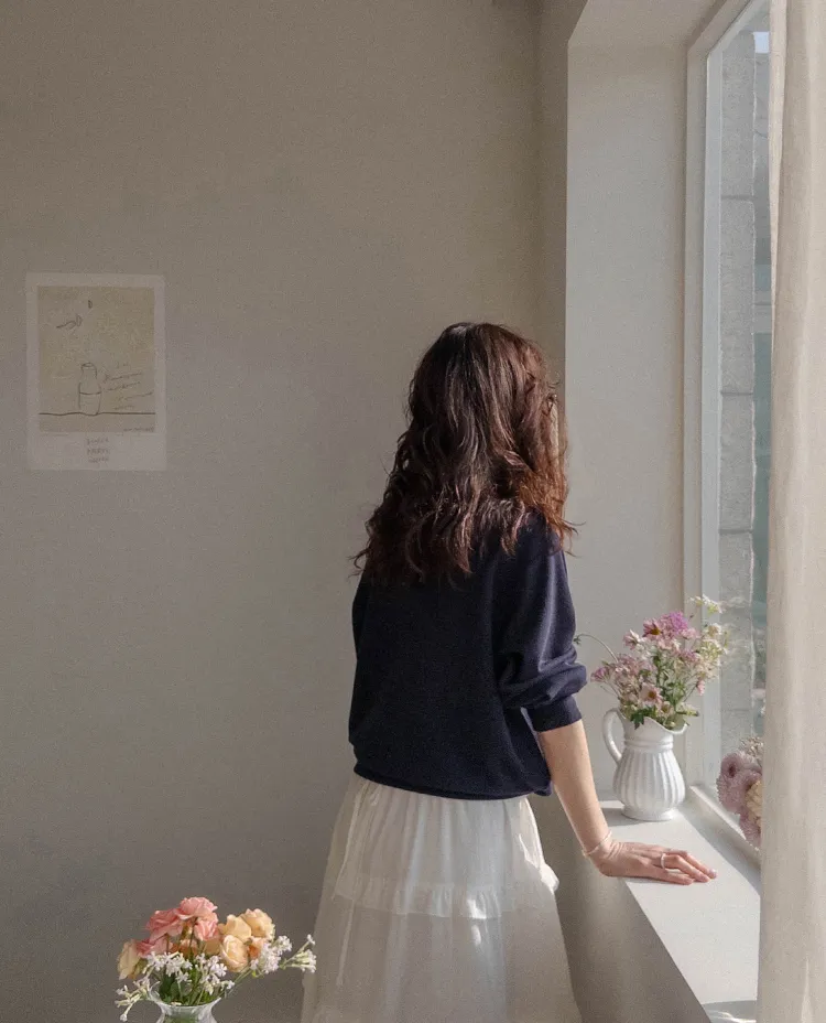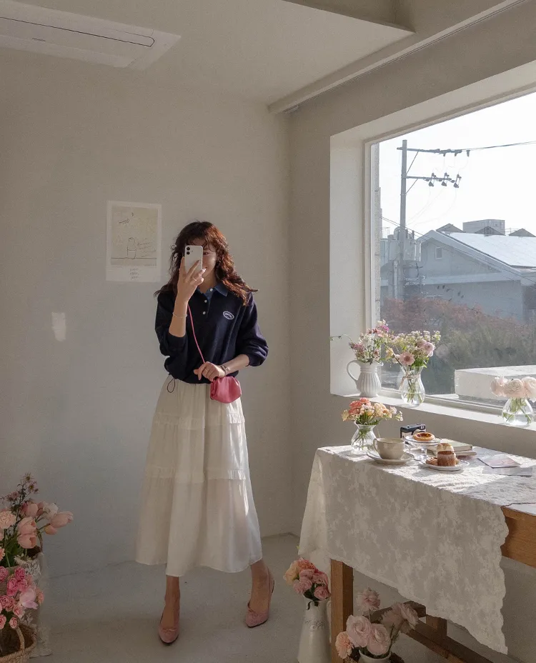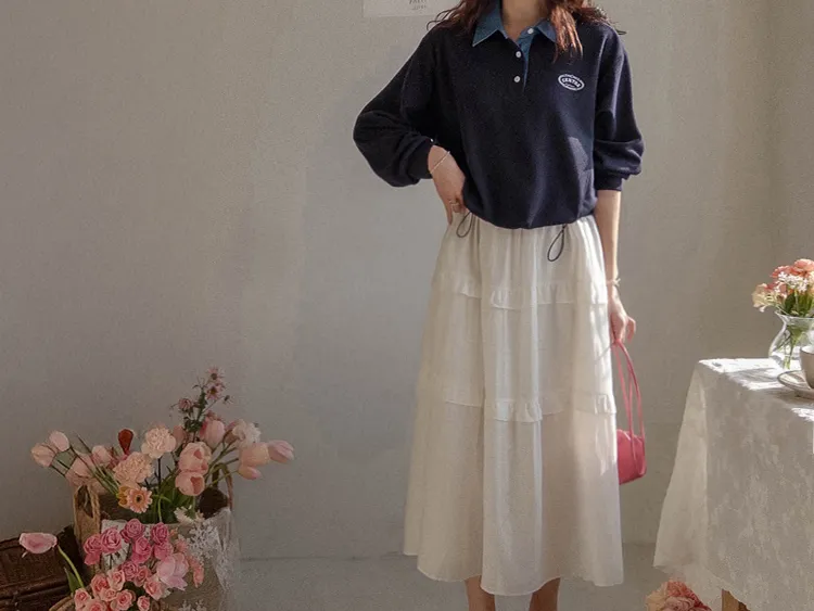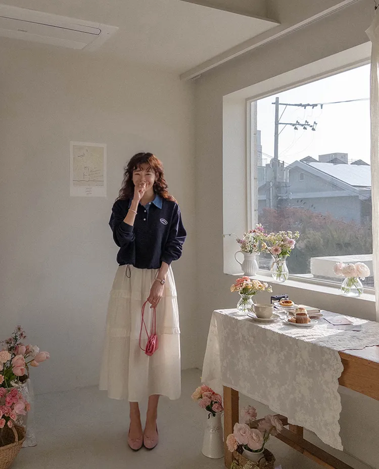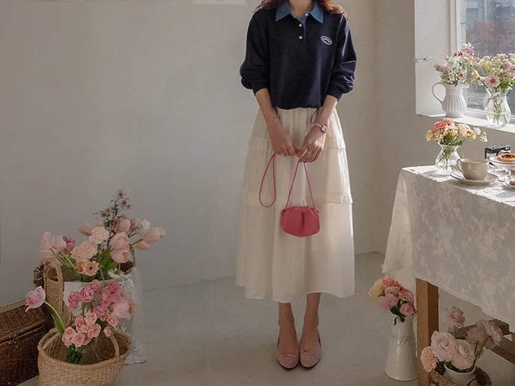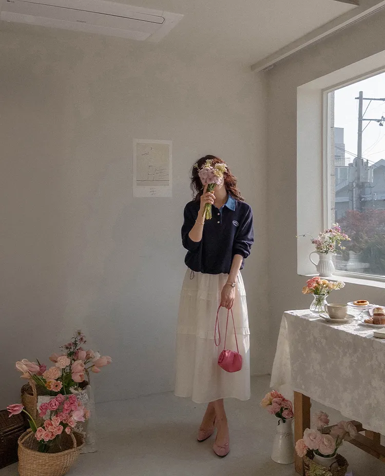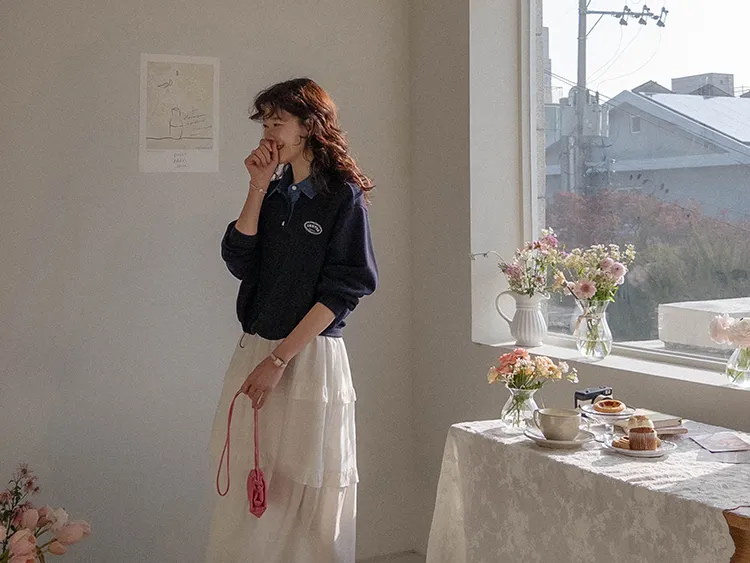 [配色領口的獨特上衣♥] [下擺設計不同] [舒適柔軟的材質] [奢華刺繡點綴]