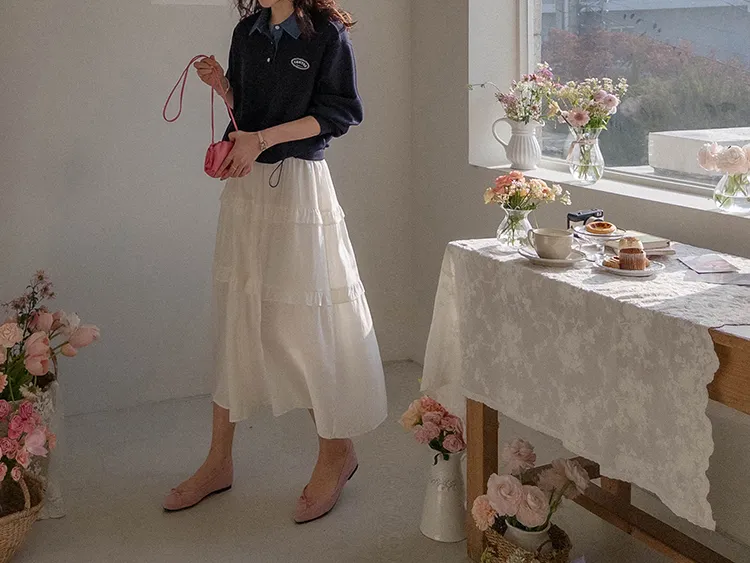 飄逸穿搭腰綁帶褶邊層次裙擺連身裙
