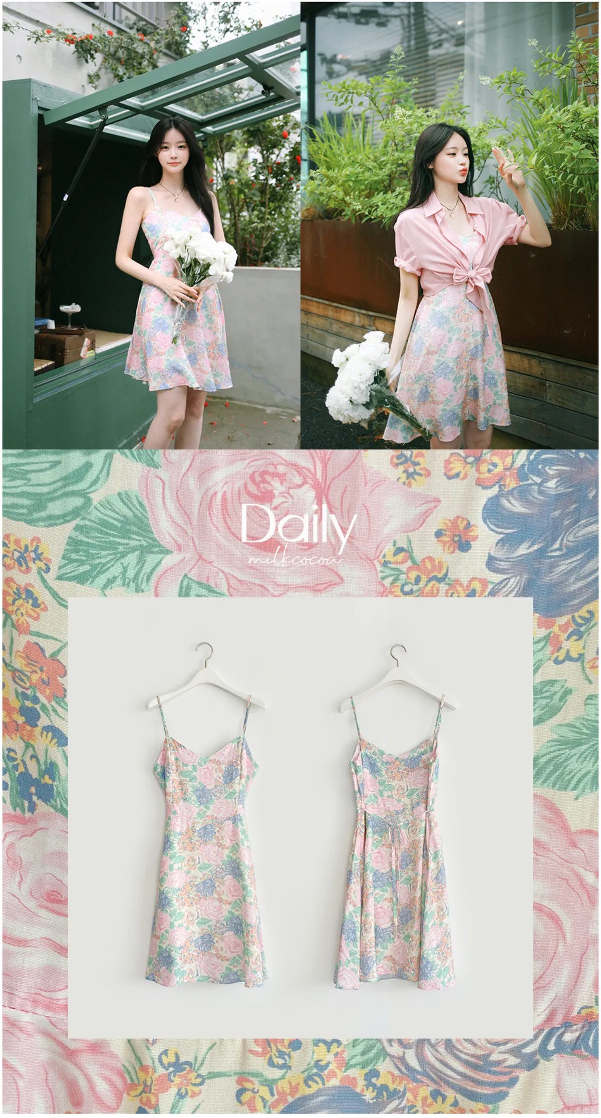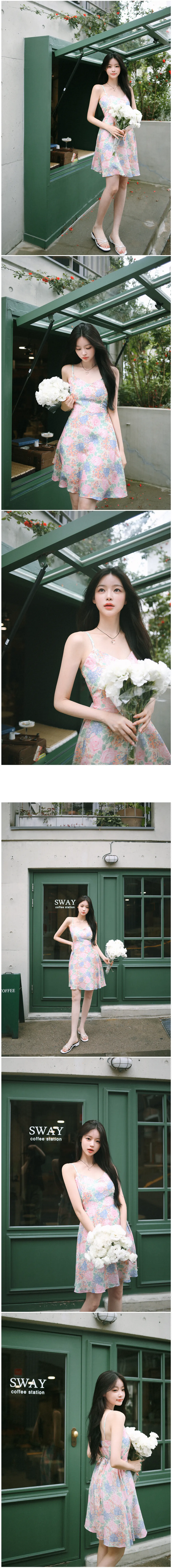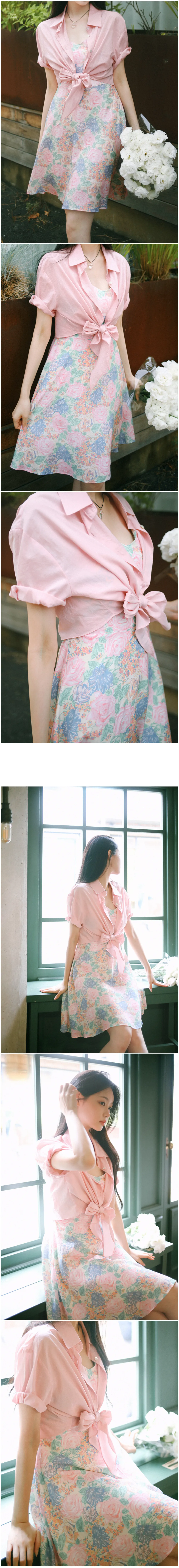 美麗花卉後綁帶連身裙
