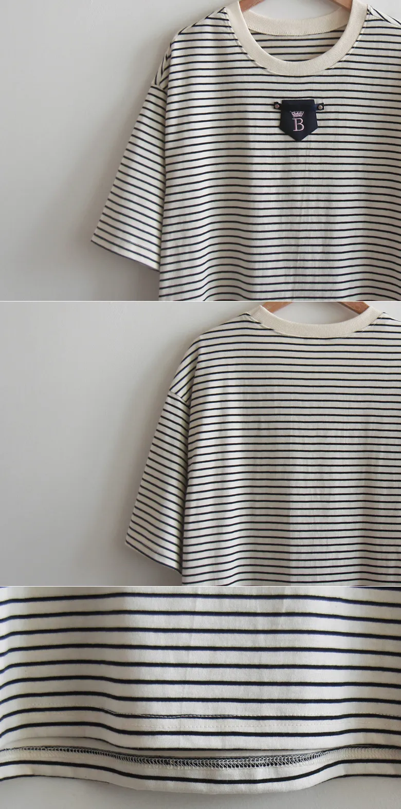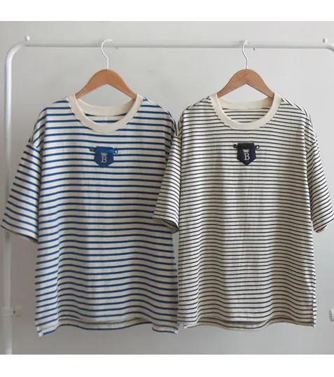 [採用舒適且有彈性的棉質製成] [獨特的刺繡字母設計] [條紋圖案為設計增添魅力] [時尚的版型,清新的單品,非常適合日常穿著] [季節色彩感] [也適合即將到來的季節]