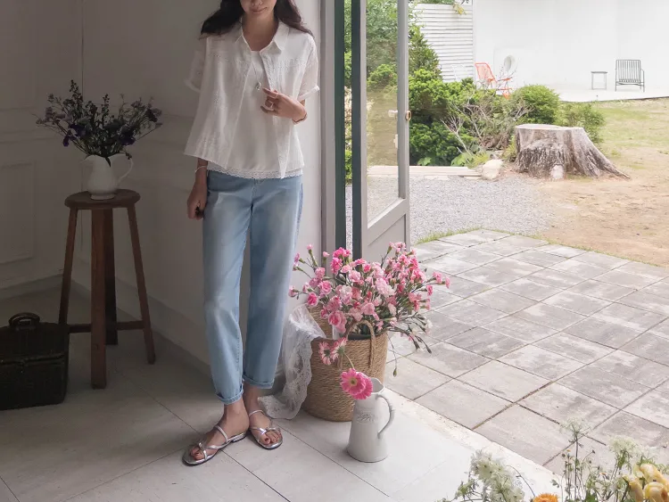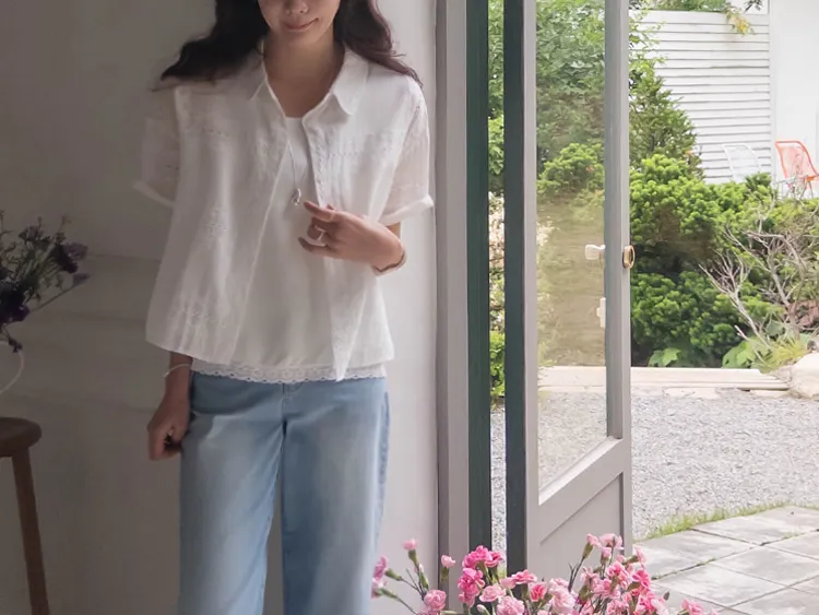 獨特蕾絲刺繡鏤空孔洞線條排扣上衣外套