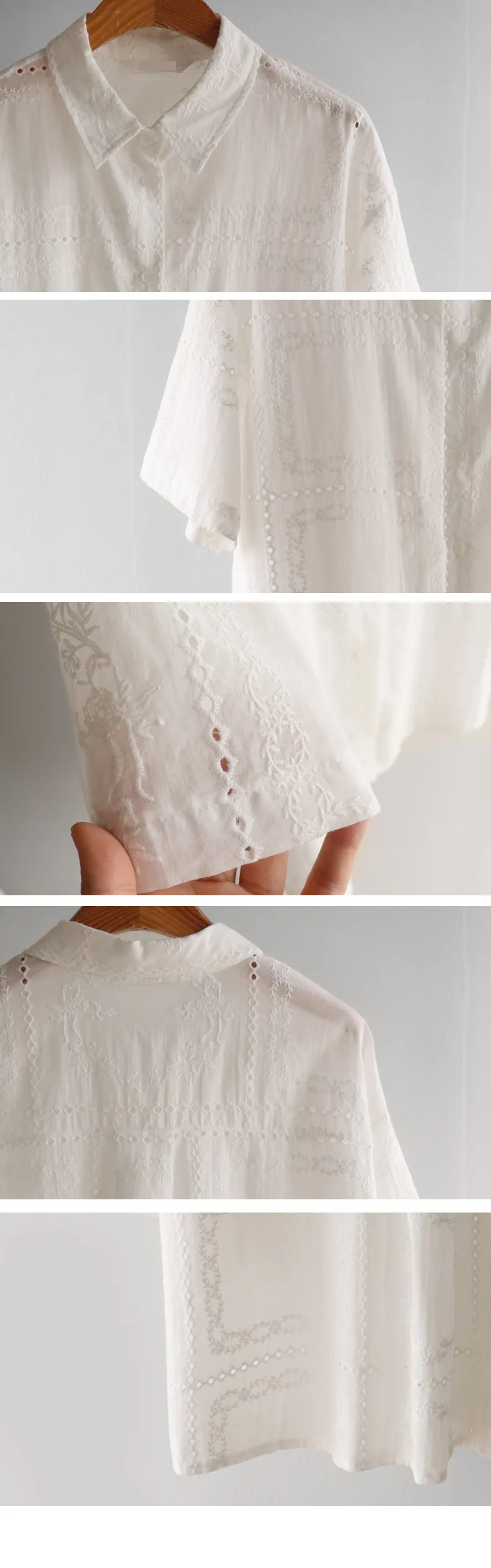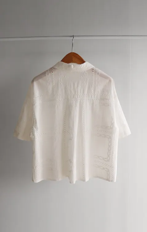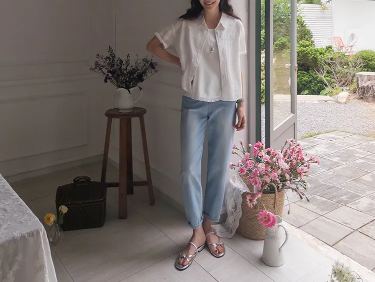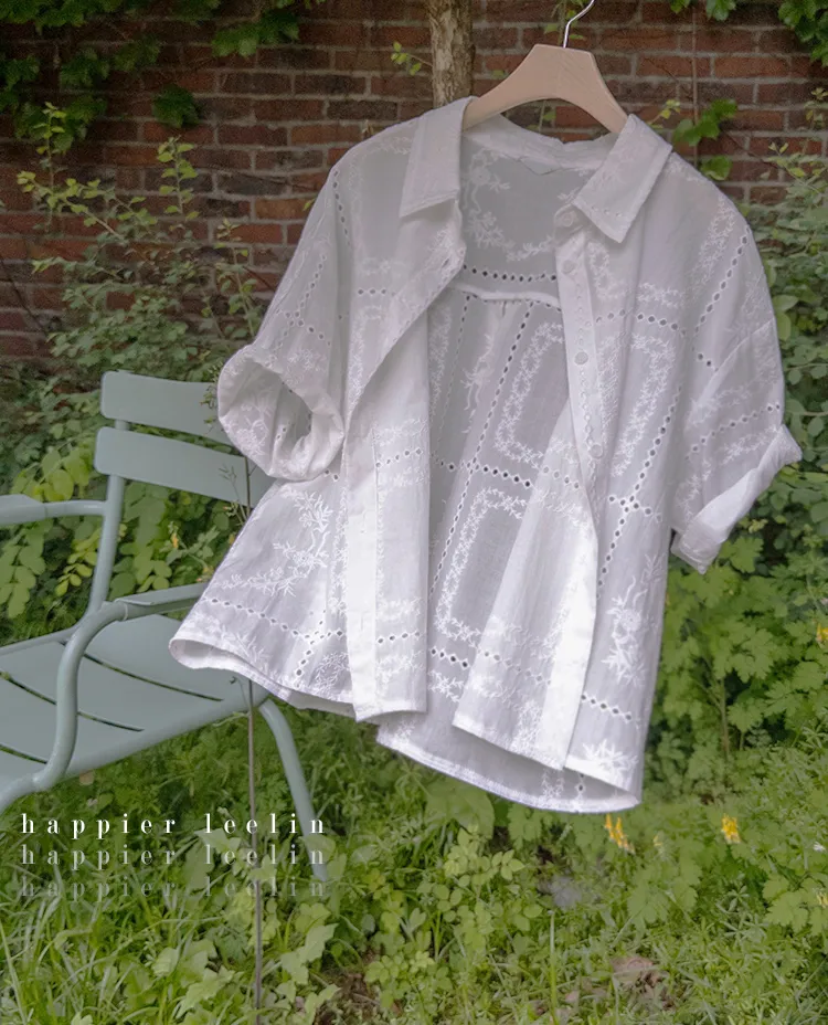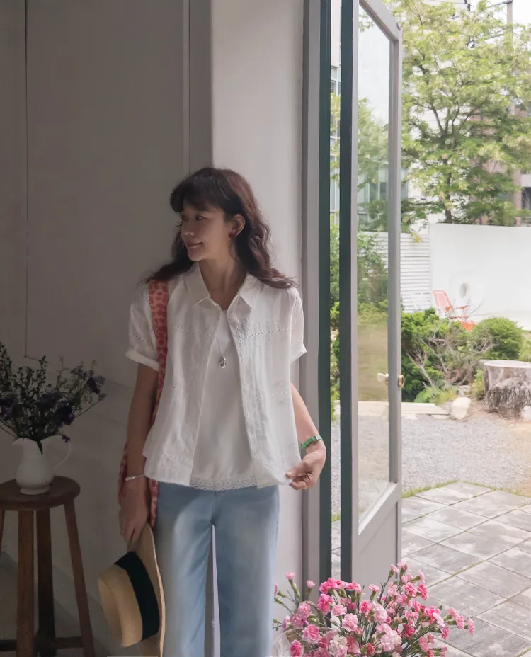 【浪漫短袖蕾絲鏤空孔洞♥】 【清涼~鏤空設計】 【質地乾爽,不黏膩,很舒服~】 【當外套穿搭也很漂亮♥】