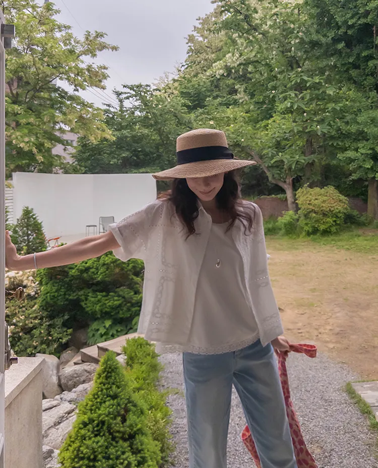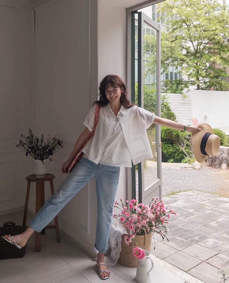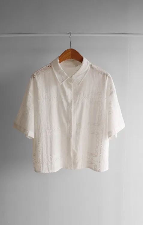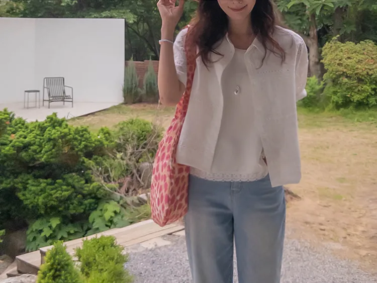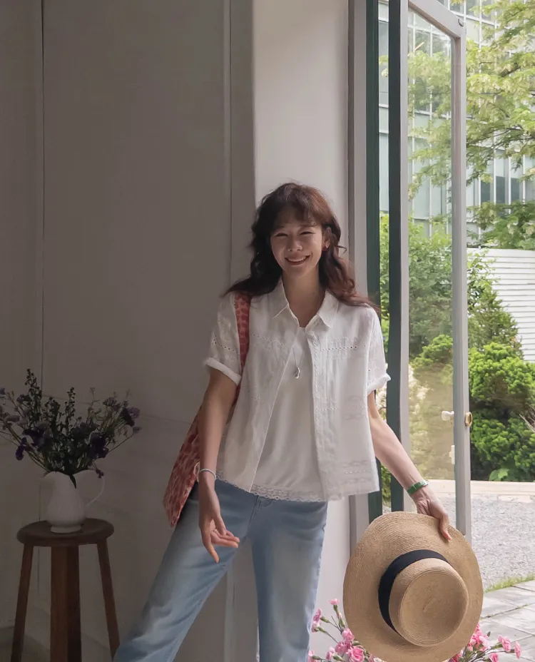 【浪漫短袖蕾絲鏤空孔洞♥】 【清涼~鏤空設計】 【質地乾爽,不黏膩,很舒服~】 【當外套穿搭也很漂亮♥】