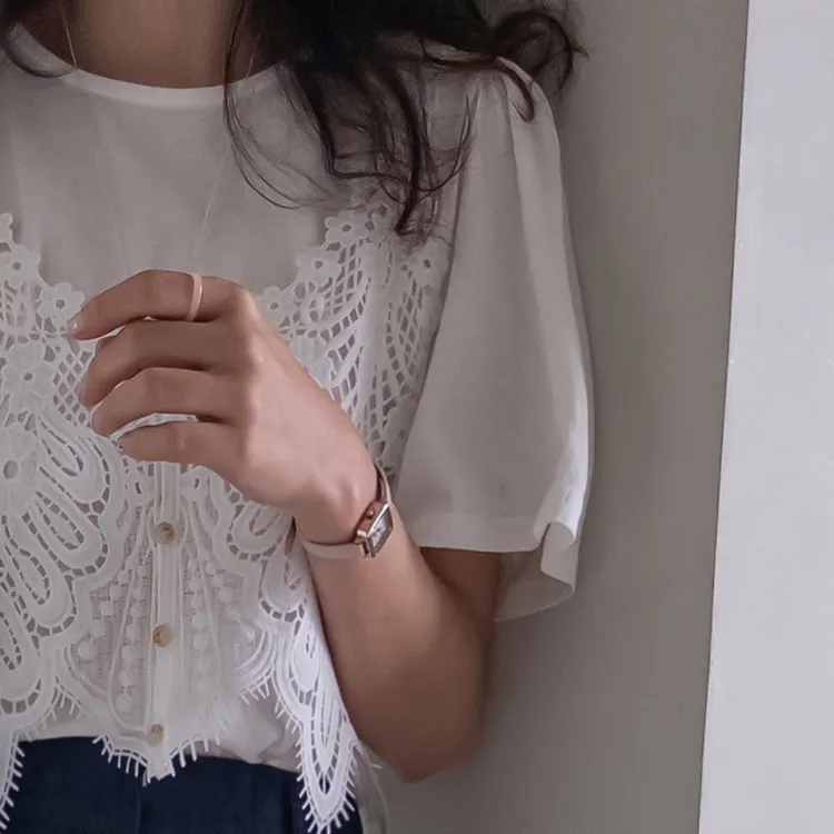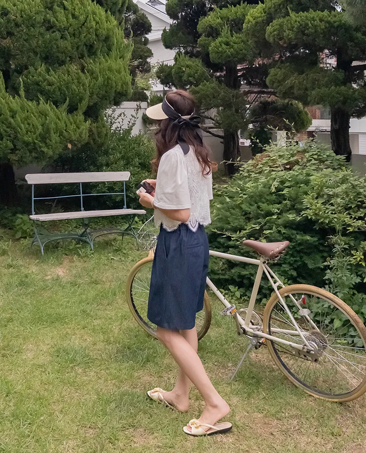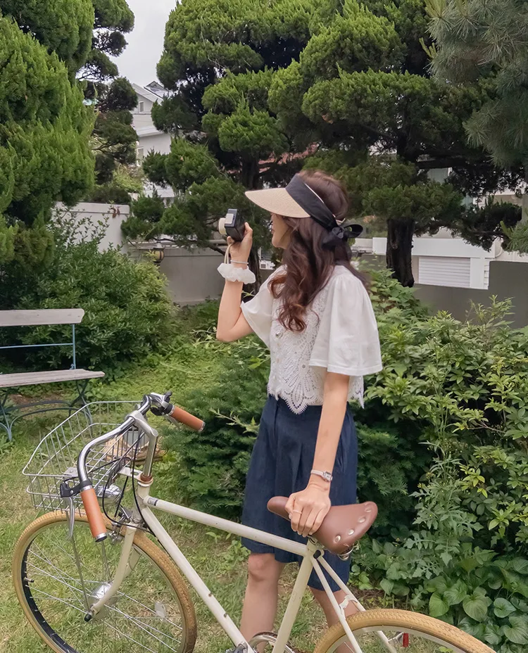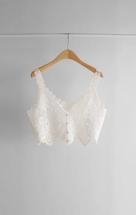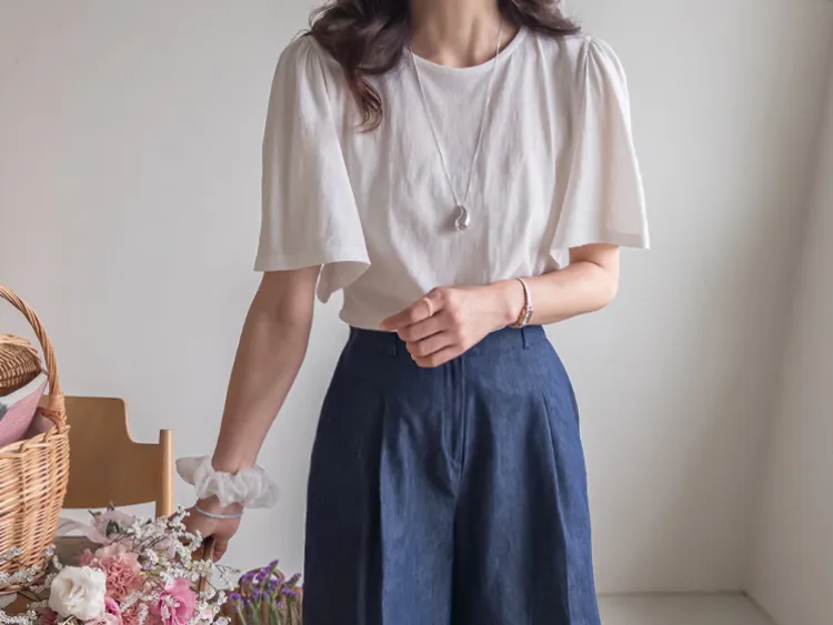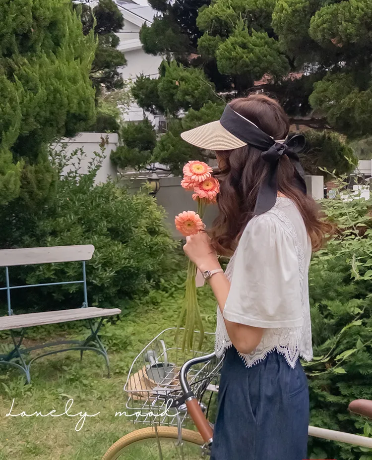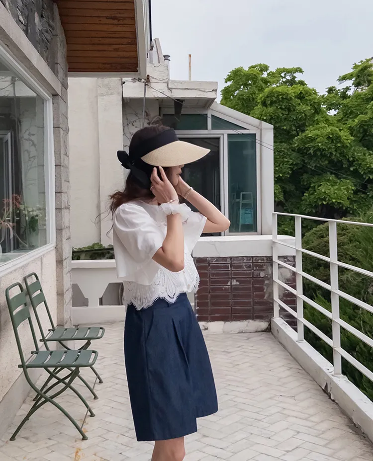 純色上衣和蝴蝶蕾絲背心的套裝