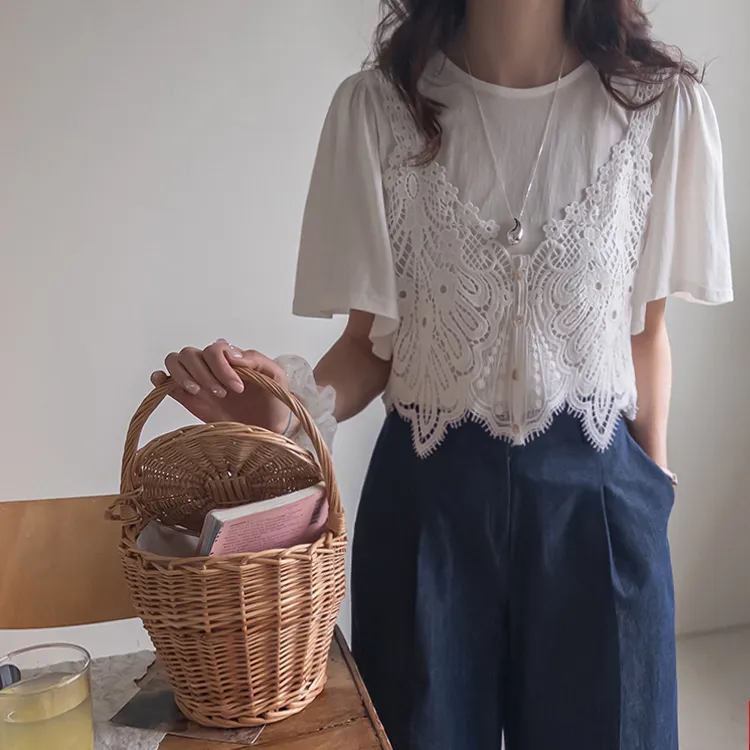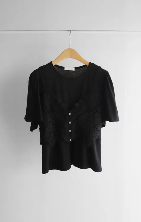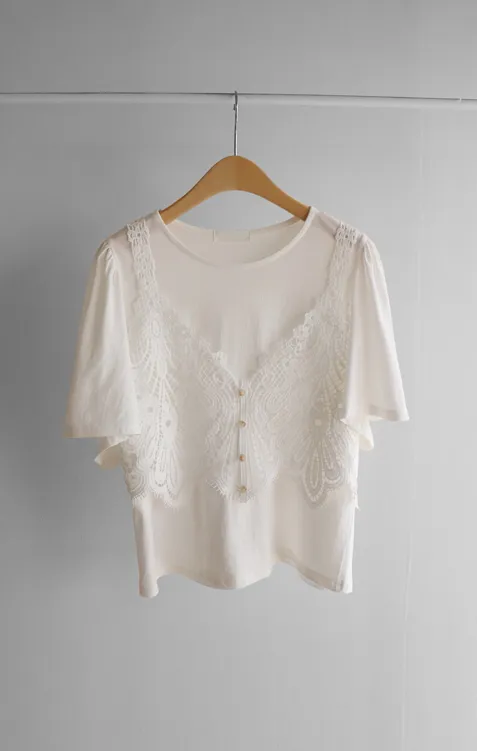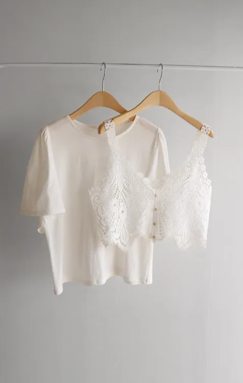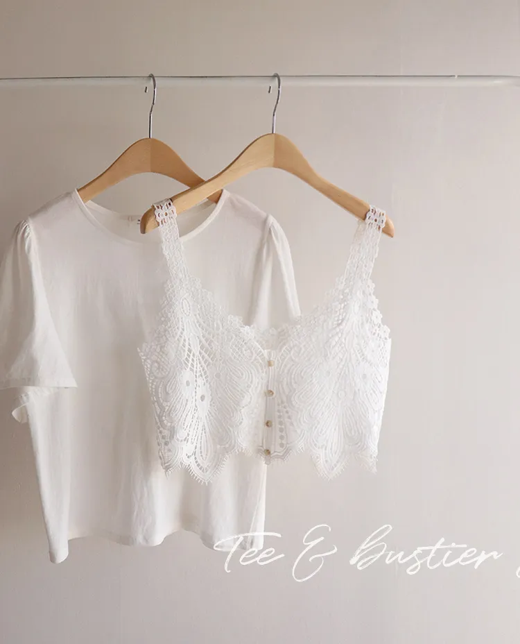【T卹+蝴蝶蕾絲背心套裝的組合! 】 【單獨搭配也很有趣*.*】 【蝴蝶狀蕾絲背心的亮點♥】 【豐盈立體的輪廓】