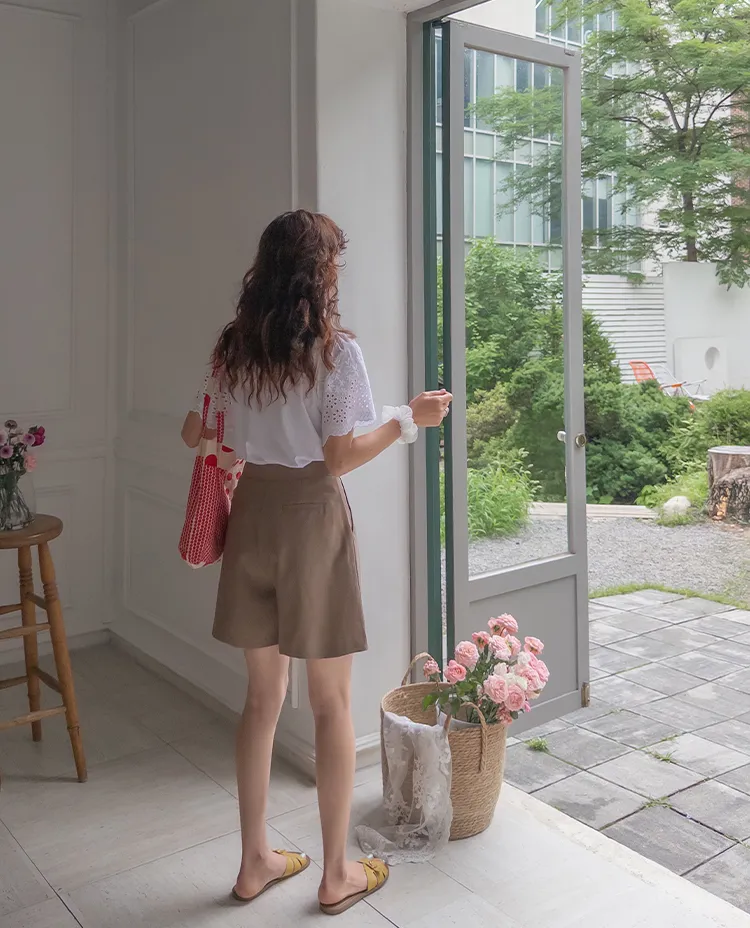 輕盈舒適獨特鈕扣設計休閒短褲