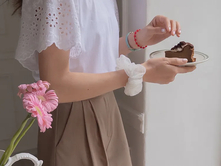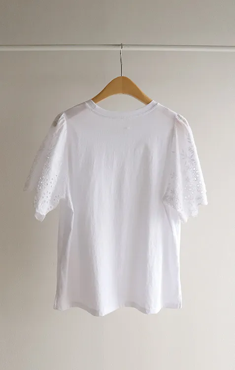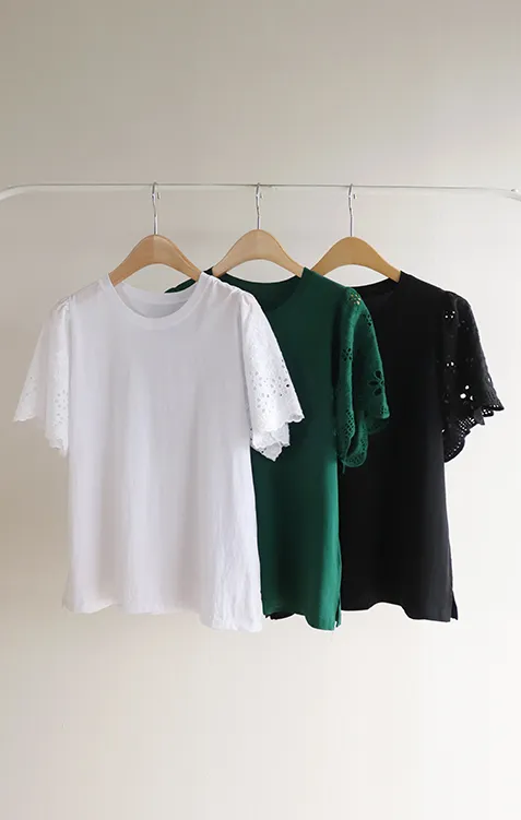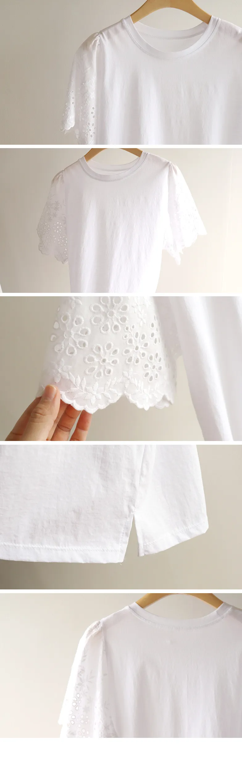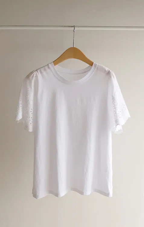 浪漫氣息波浪花朵刺繡鏤空孔洞袖上衣