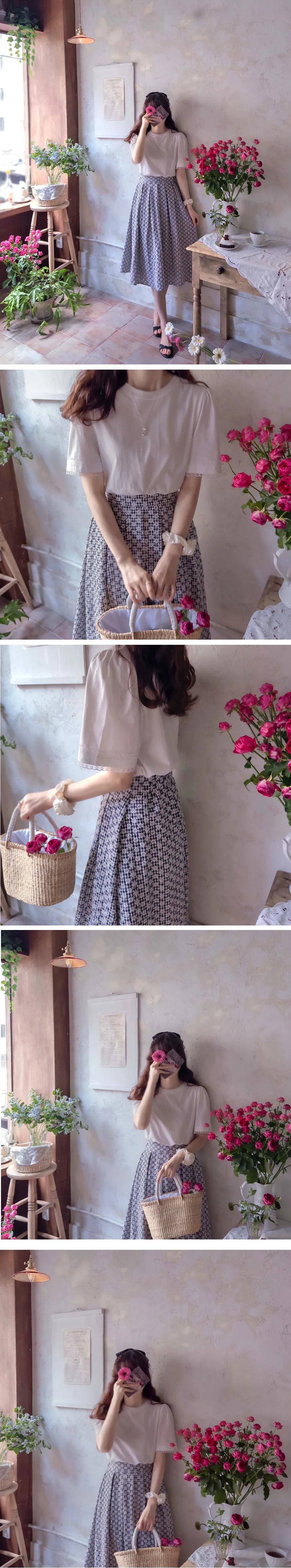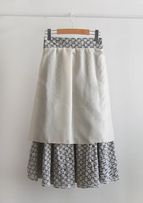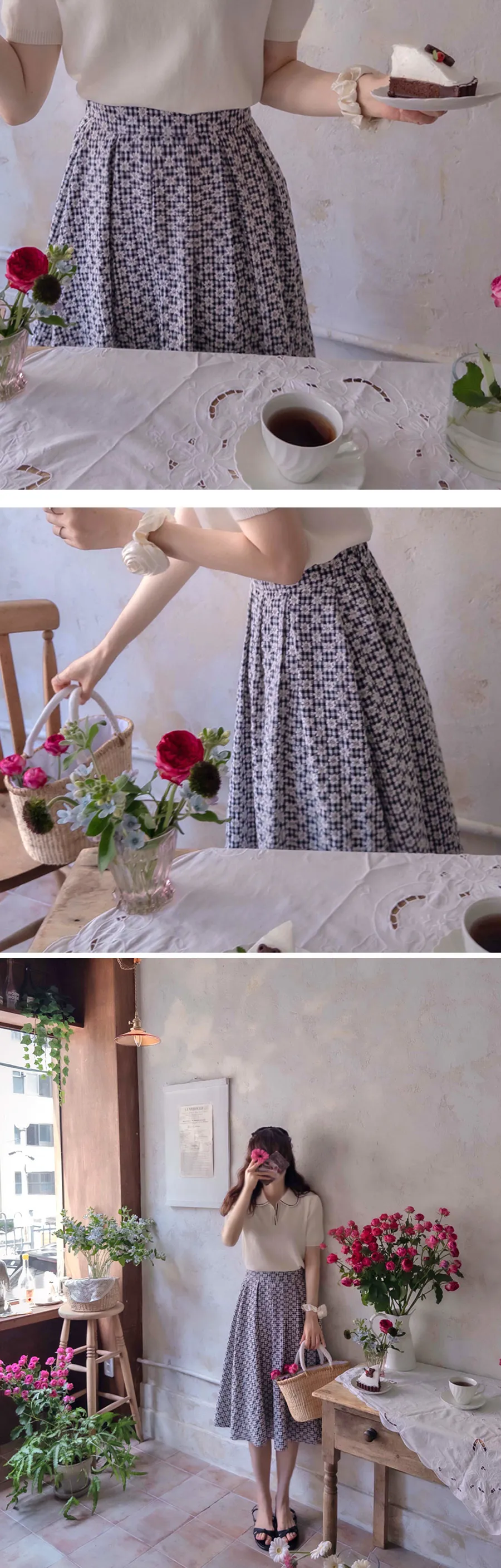 聚酯纖維內襯] [後腰彈性帶] [側拉鍊] [活潑的花朵刺繡裙] [時尚百褶裙] [活潑的格紋上花朵刺繡的可愛裙] [強烈推薦的迷你沖孔花朵刺繡的可愛裙]